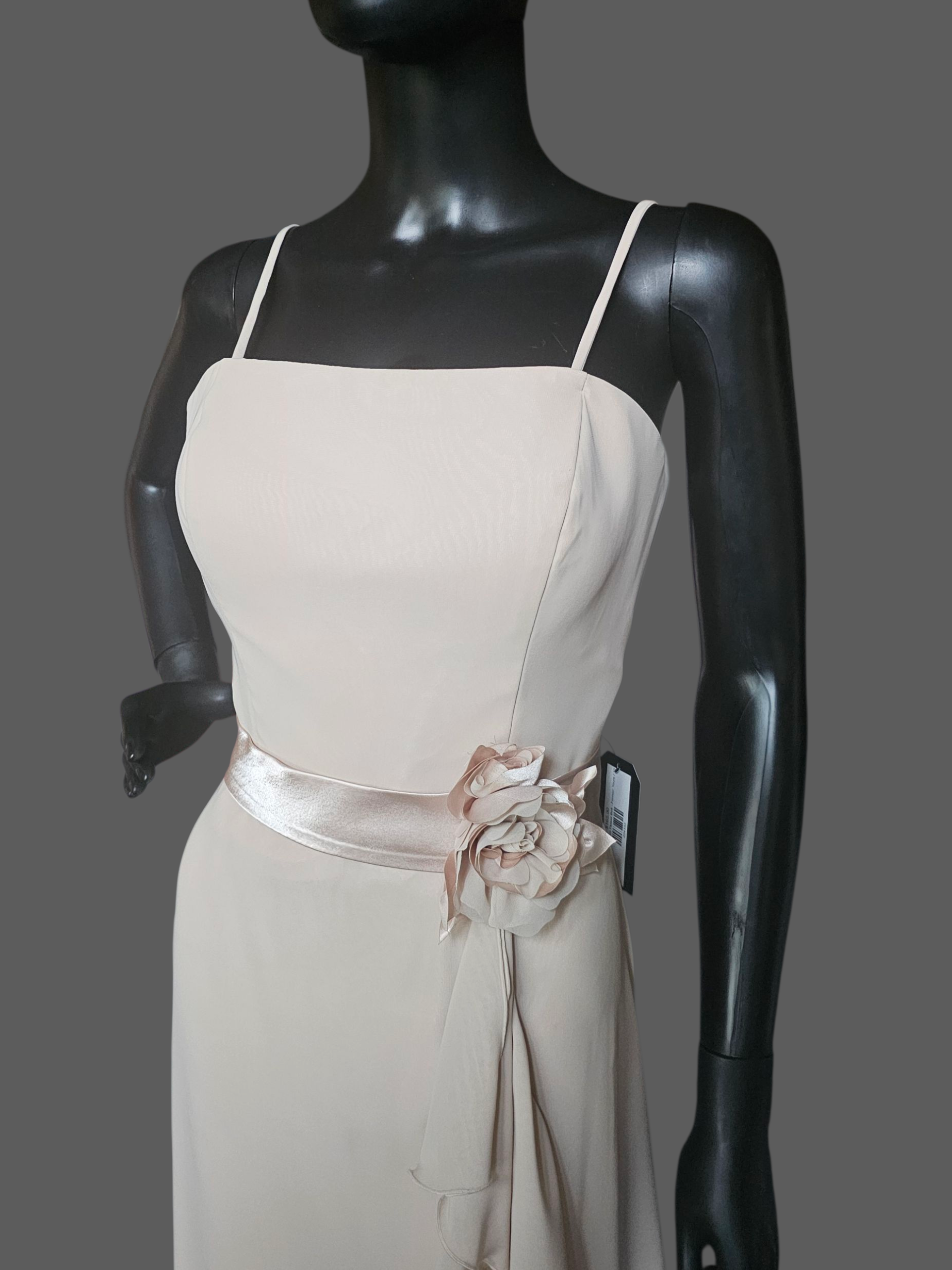 Cream Simple Chiffon Flower Belt Maxi Dress - Forever Yours