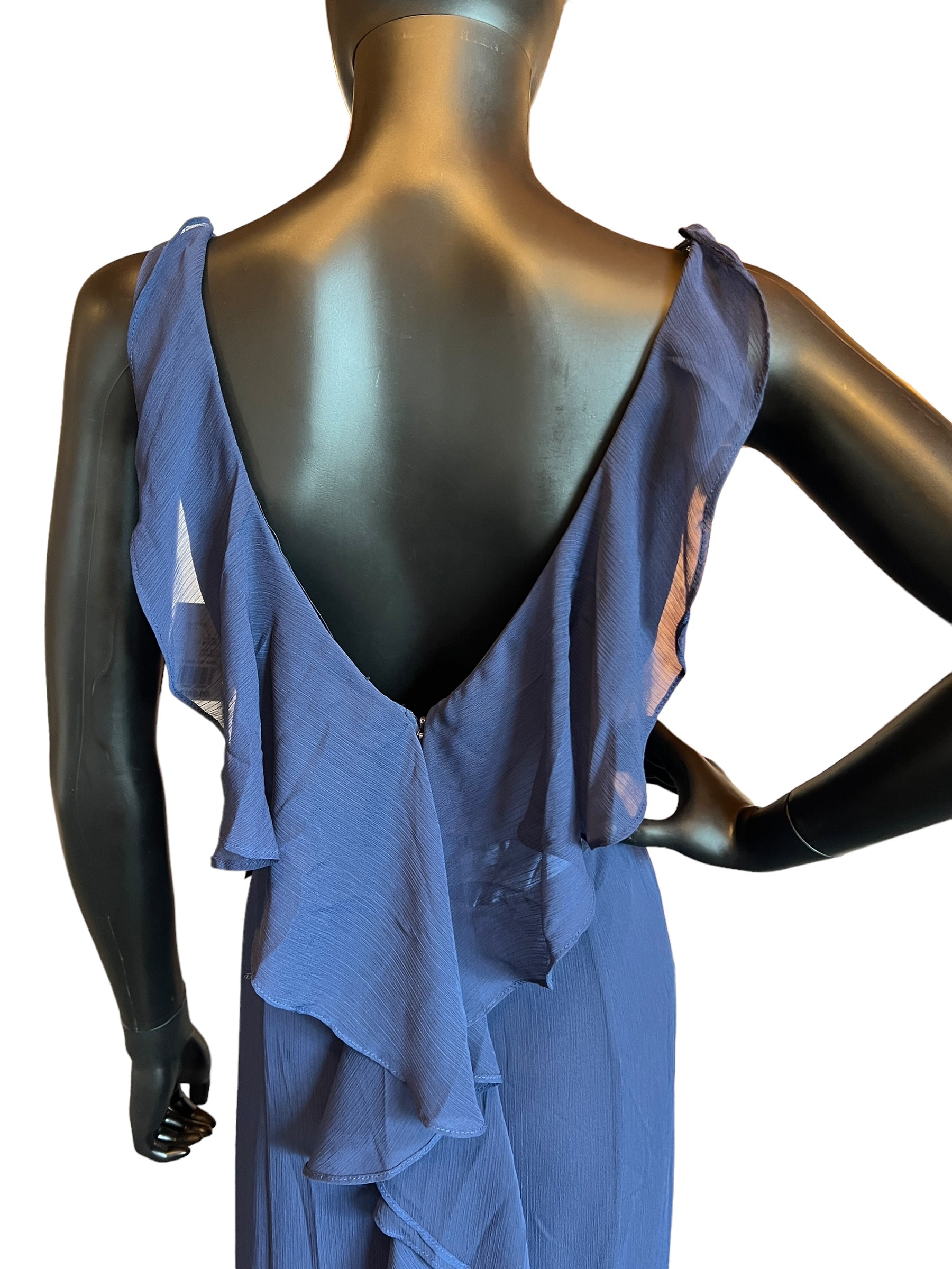Davids Bridal Navy Chiffon V-Neck Full Length Formal Gown