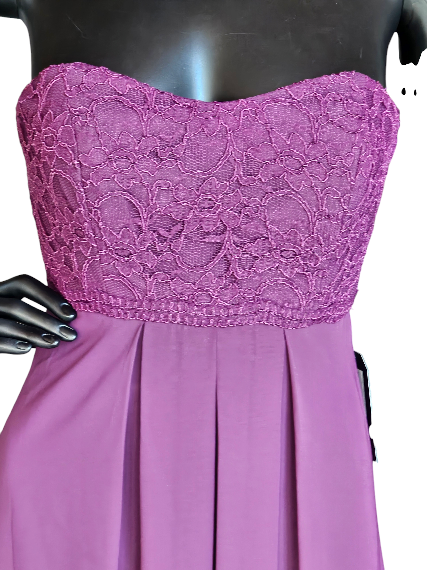 Eggplant Lace Empire Waist Full Length Formal Dress- Mori Lee