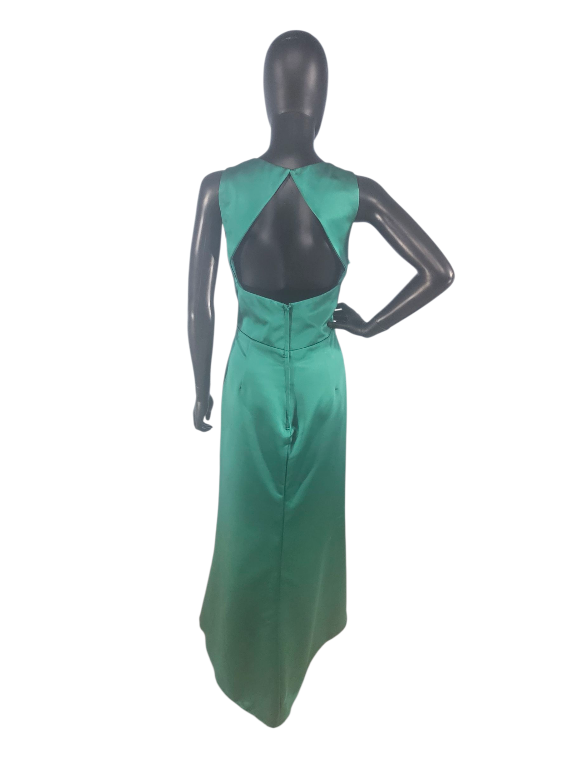 Emerald Satin V-Neck Fit/Flare Formal Dress - Da Vinci