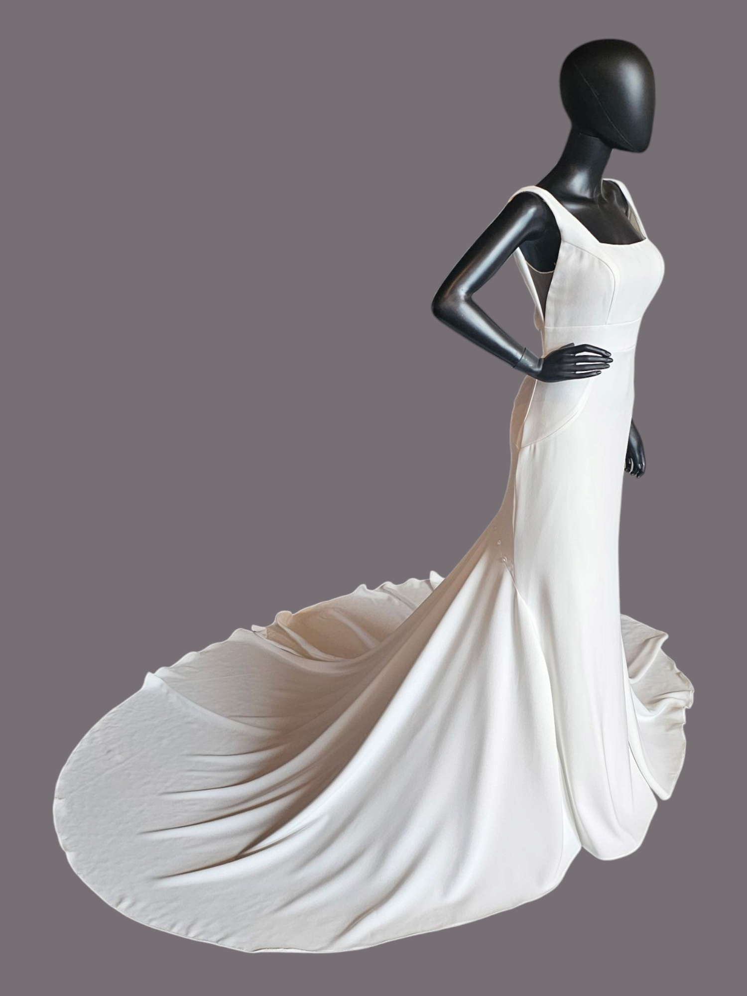 Ivory Crepe Fit/Flare Square Neck Wedding Gown - Mori Lee