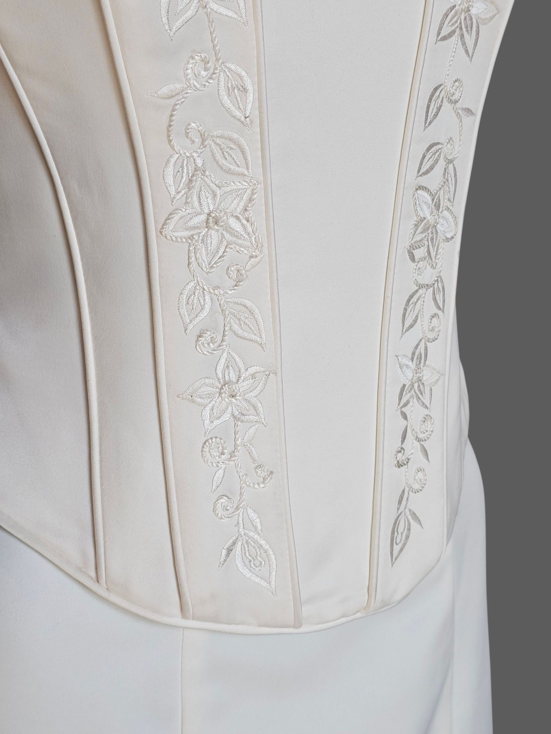 Fitted Cap Sleeve Basque Waist 3 Piece Wedding Gown - Detatchable Train