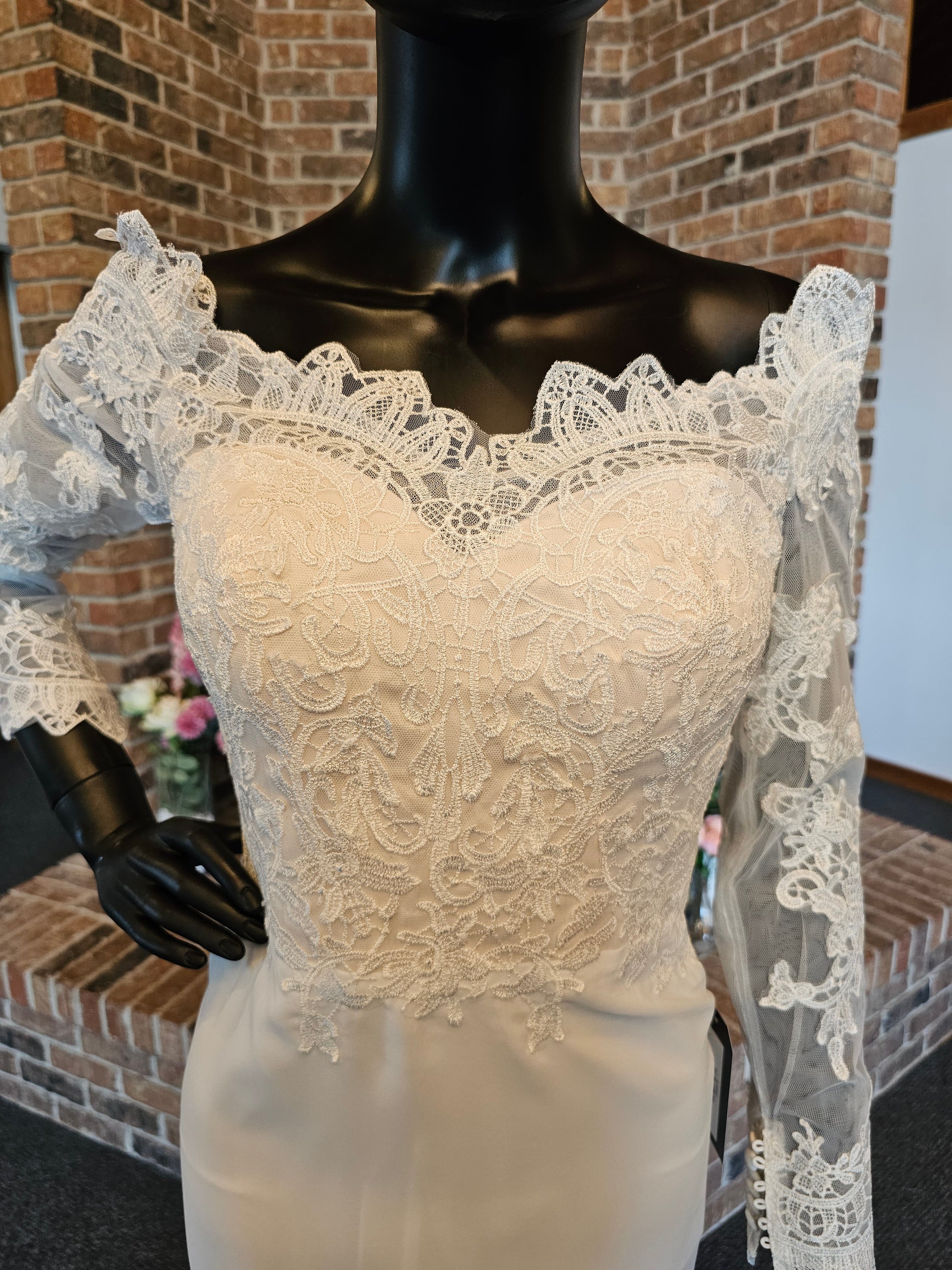 Fitted Lace Bodice Off Shoulder Wedding Gown