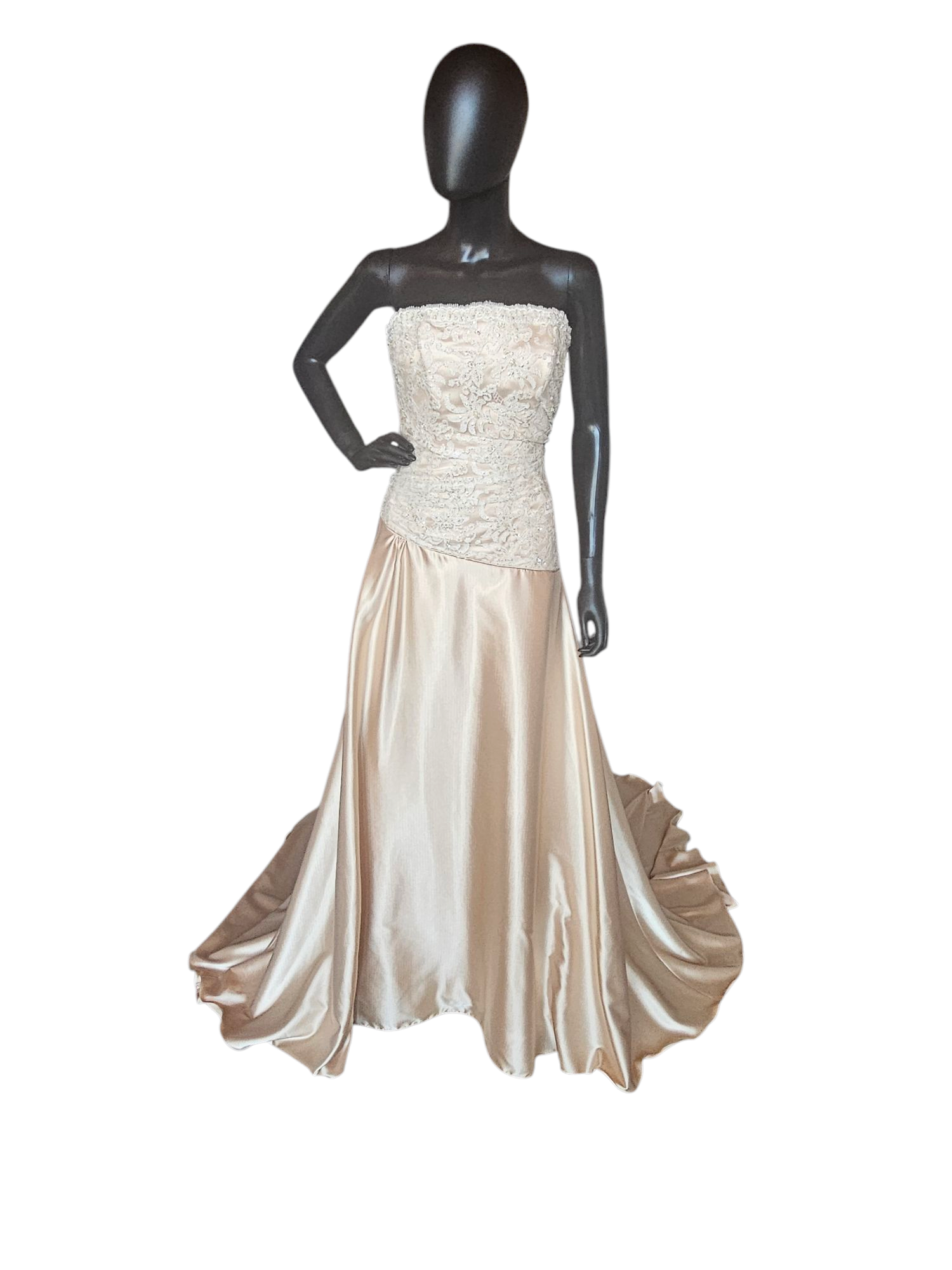 Gold Charmeuse Asymmetrical Wedding Gown - Maggie Sottero
