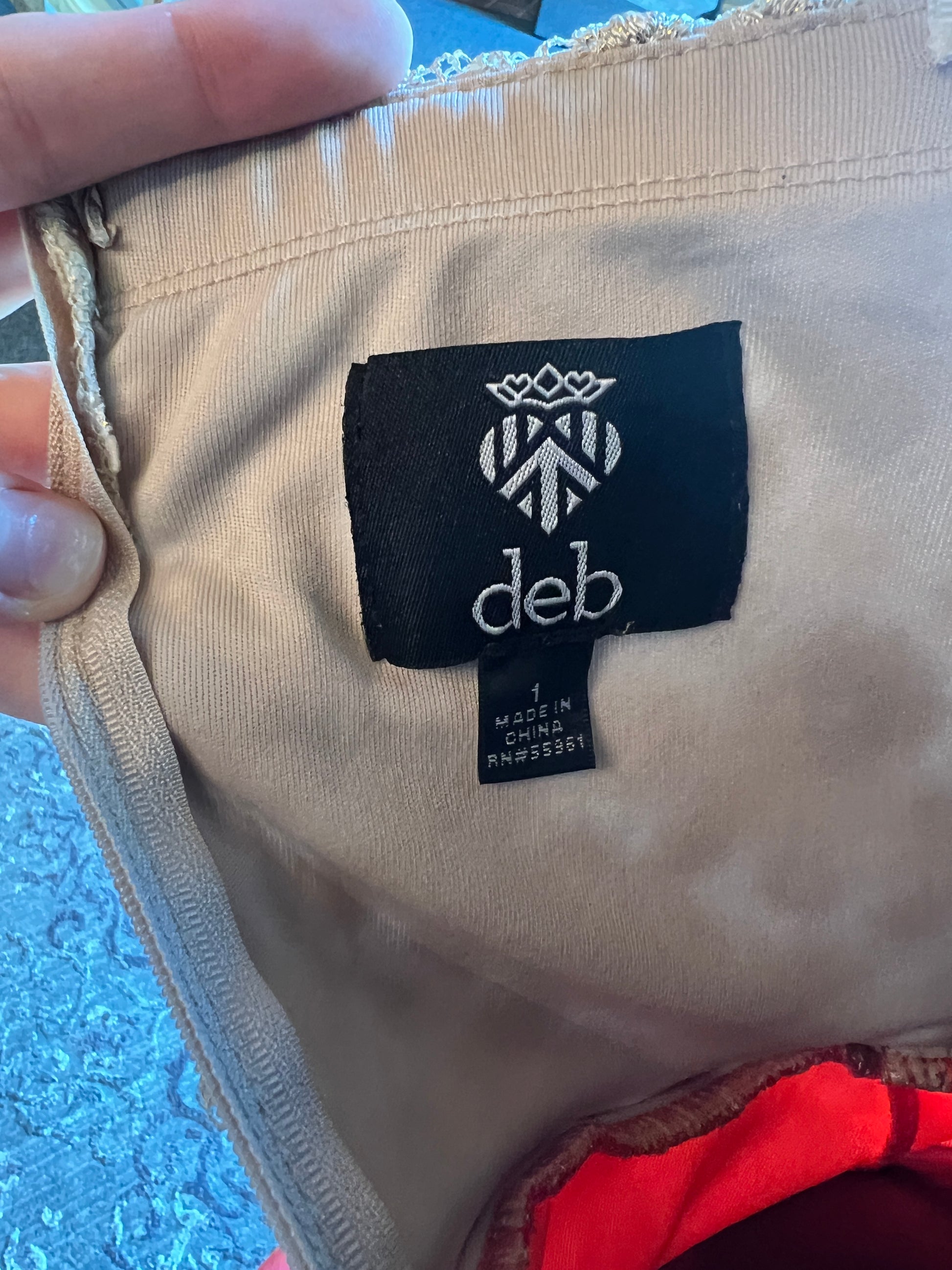This unique spring gown is the perfect dress for a garden party or everyday wear. The bodice is covered in gold crochet florals while the skirt is made of pleated peach chiffon. Beautiful and fun!