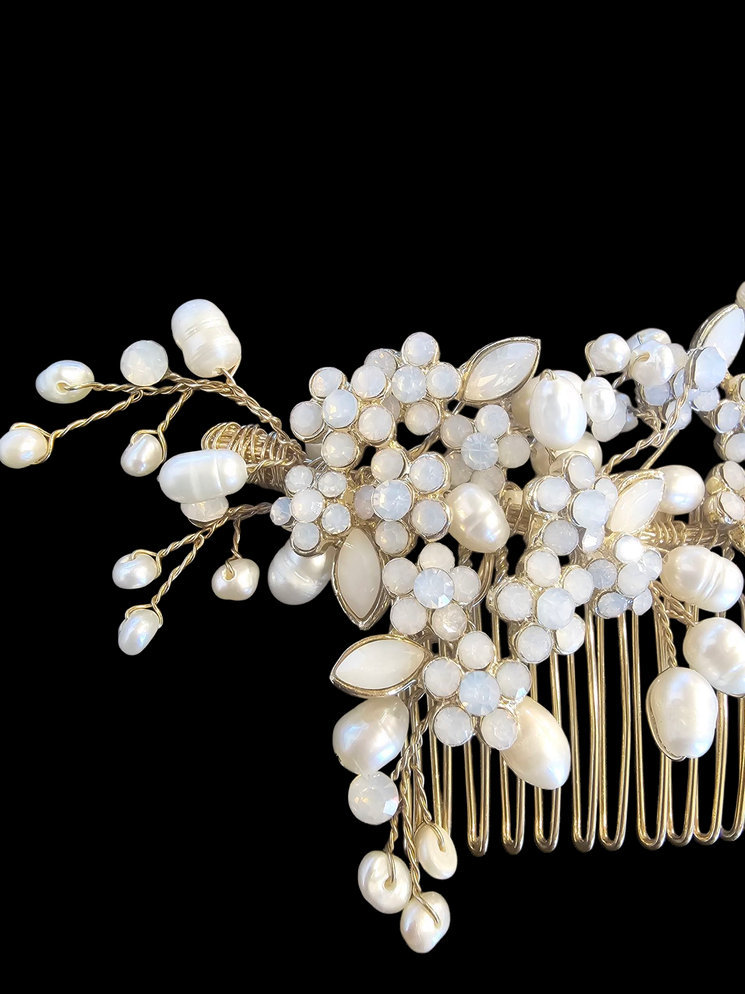 Gold Freshwater Pearl/Moonstone Hair Comb