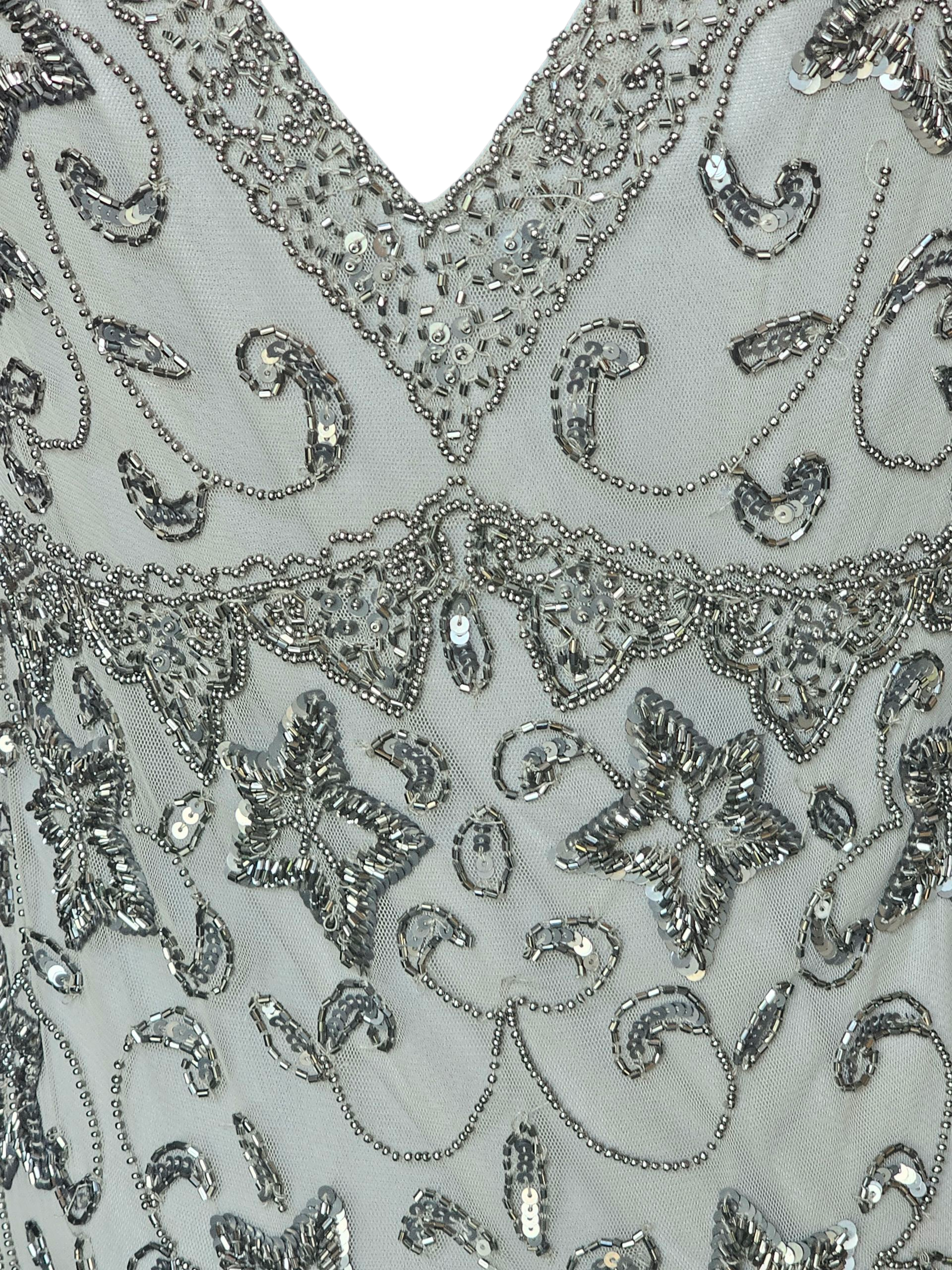 Sage Green/Metallic Beaded Drop Waist Party Dress - Pissaro Nights