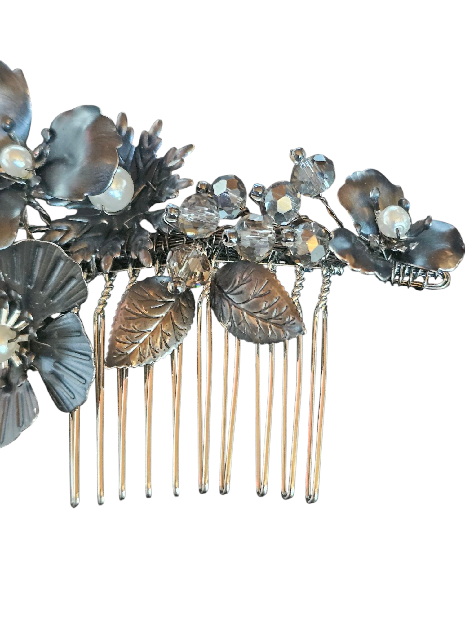 Gunmetal Floral/Pearl Hair Comb - Marionat