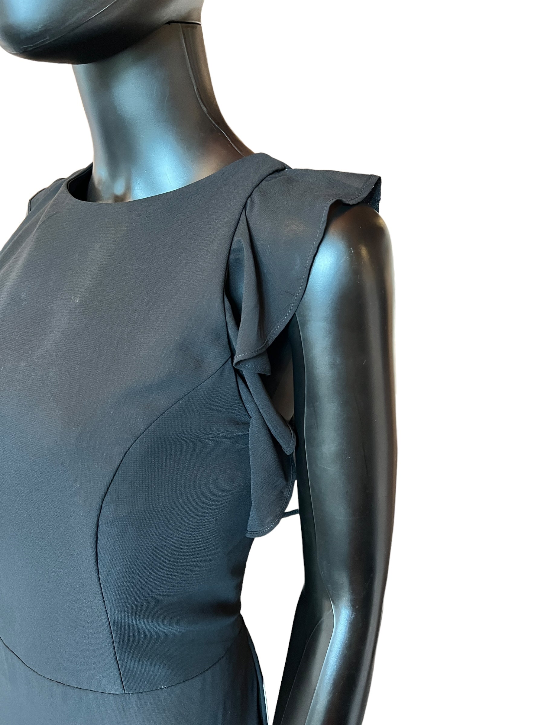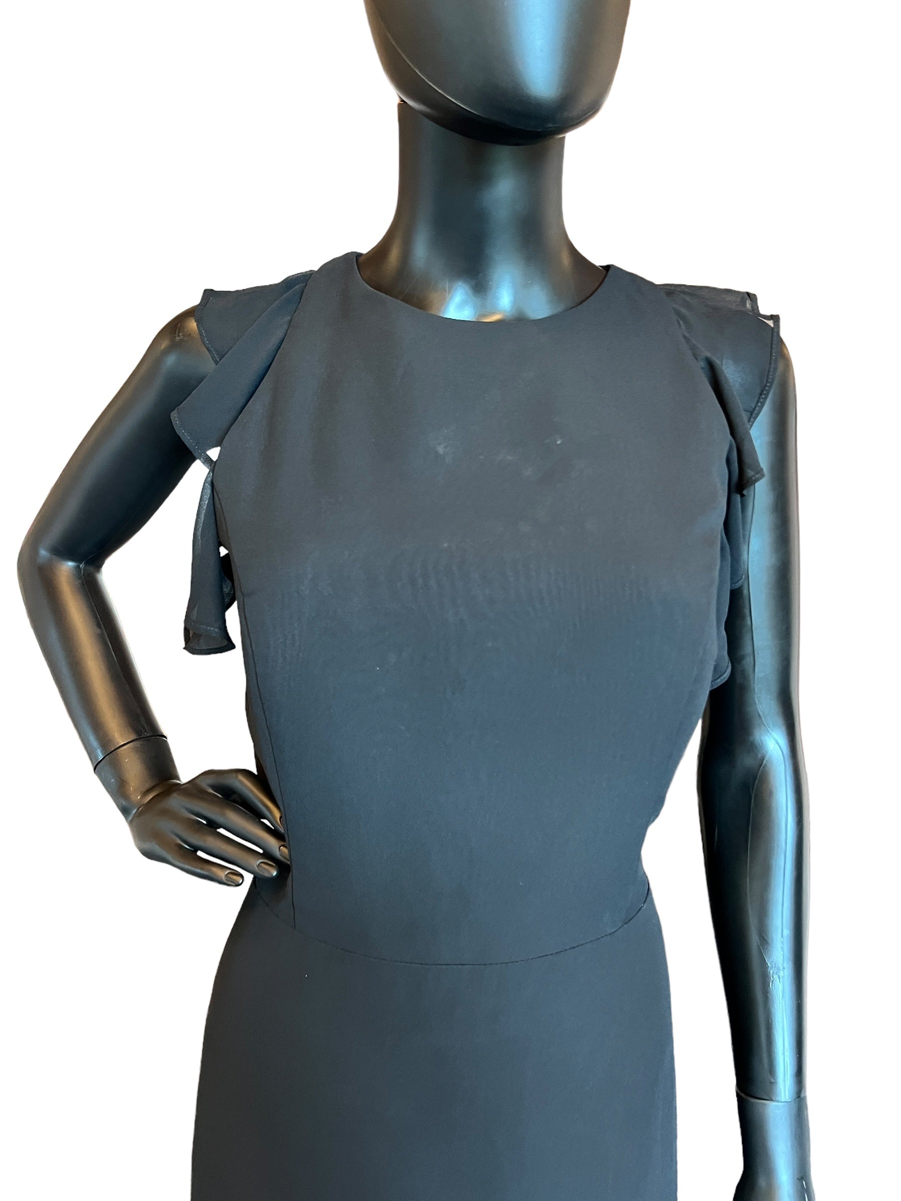 Hayley Paige Black Chiffon Flutter Maxi Formal Dress