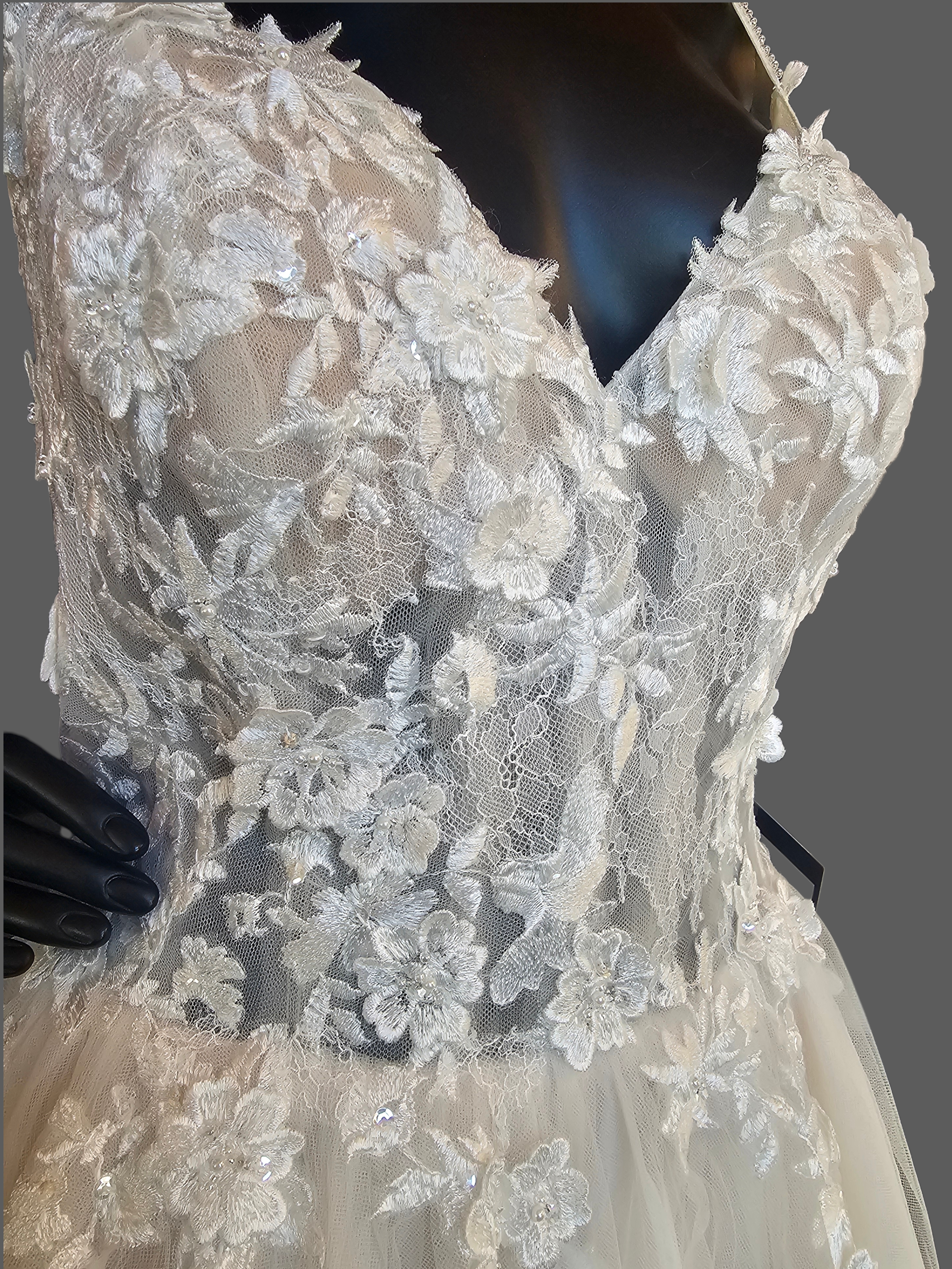 Ivory/Champagne 3D Floral Full Skirt Boho Lace Illusion Bodice Wedding Gown - Beloved