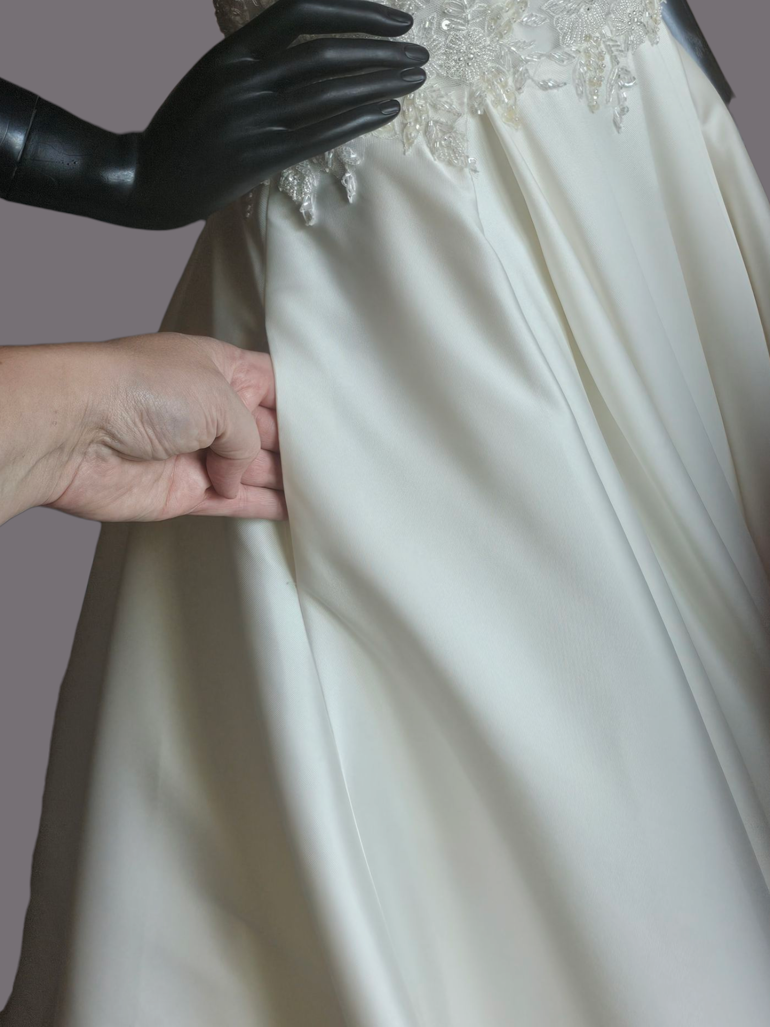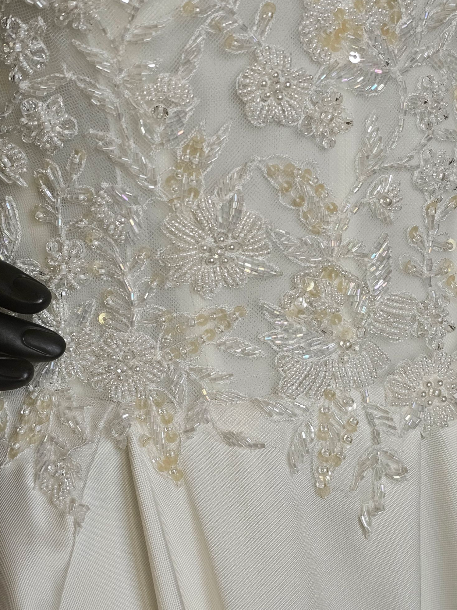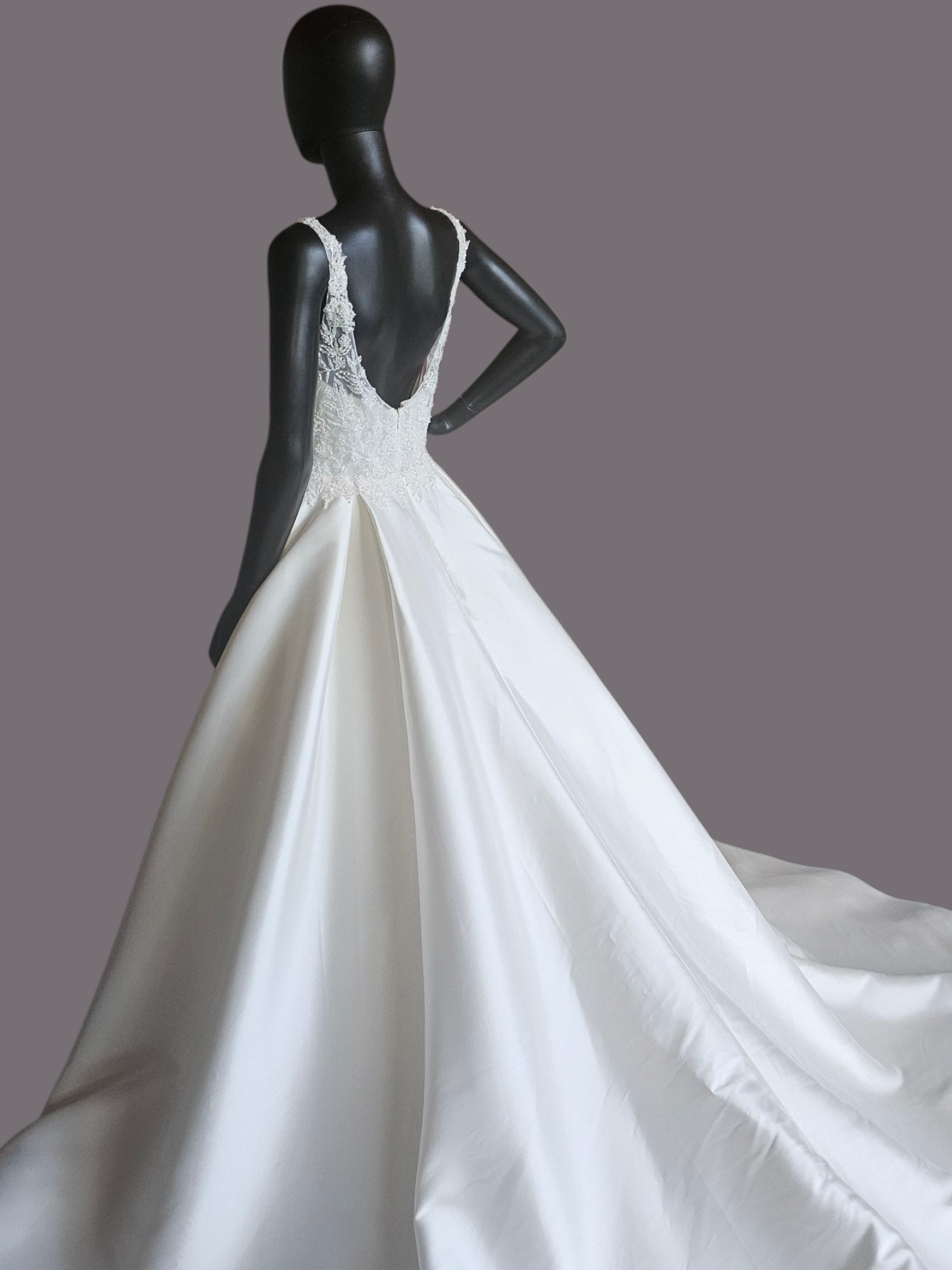 Ivory Ballgown Satin V-Neck Illusion - Da Vinci