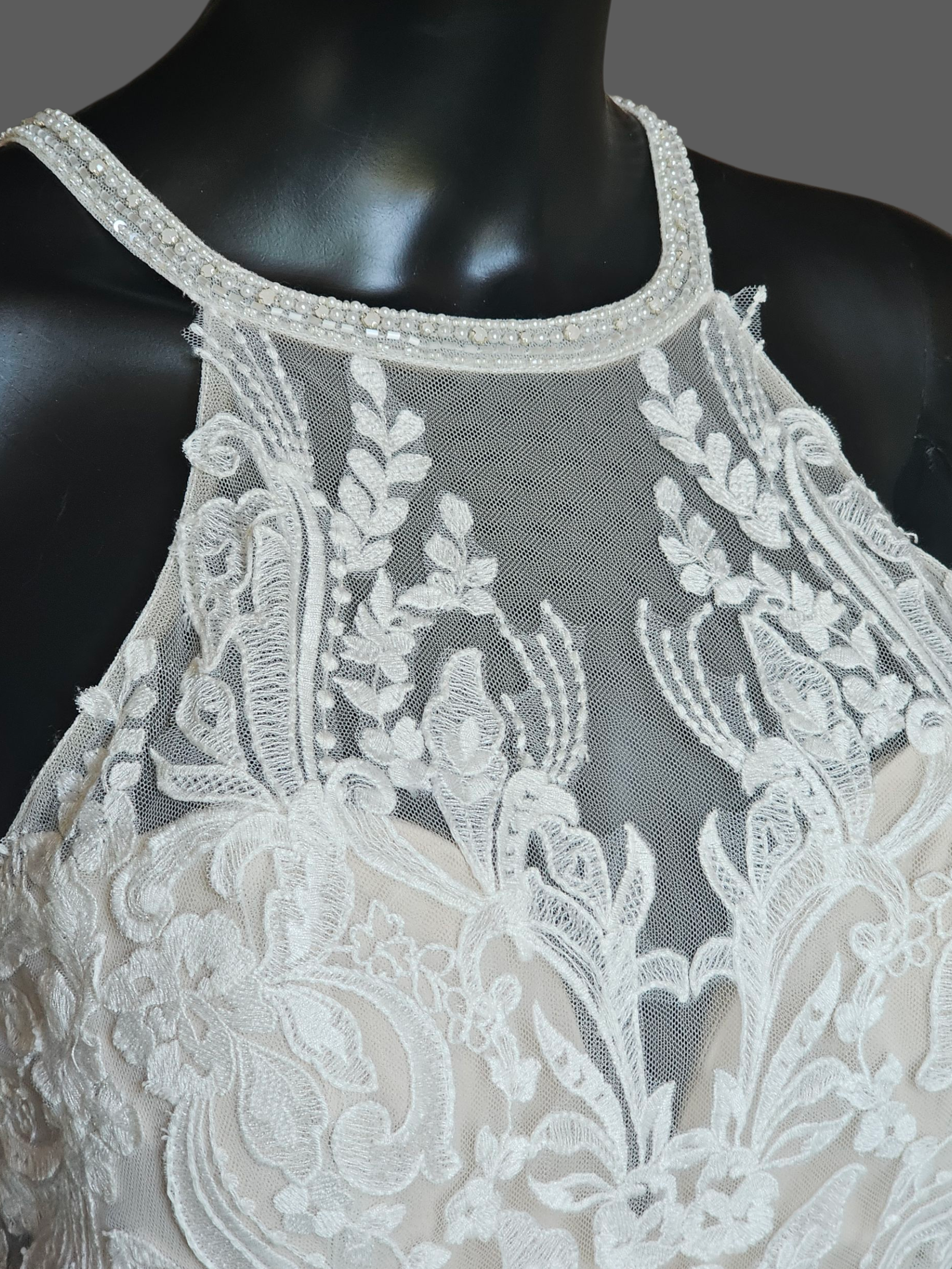 Ivory/Cappuccino Lace Halter Fit/Flare - Mori Lee
