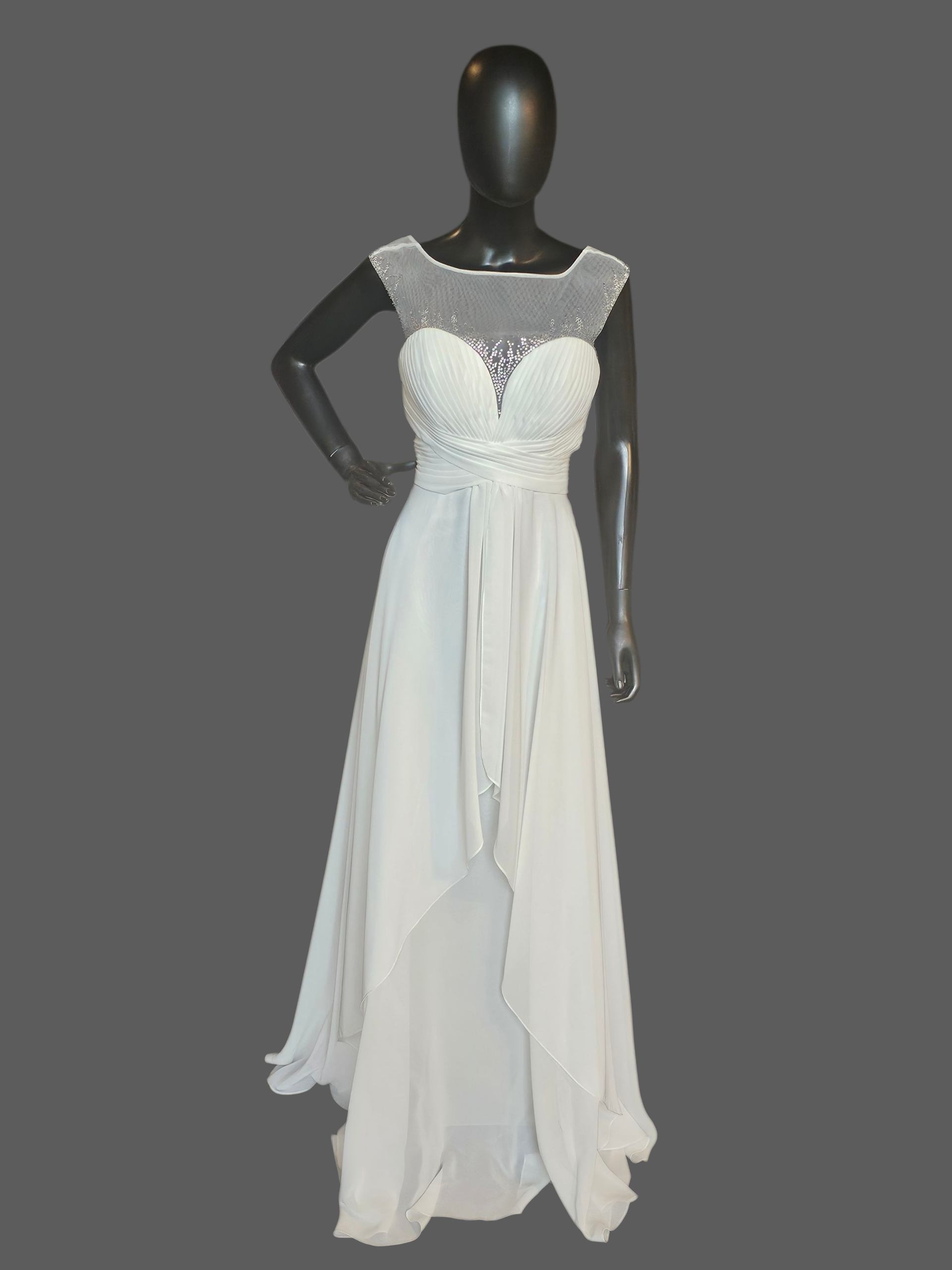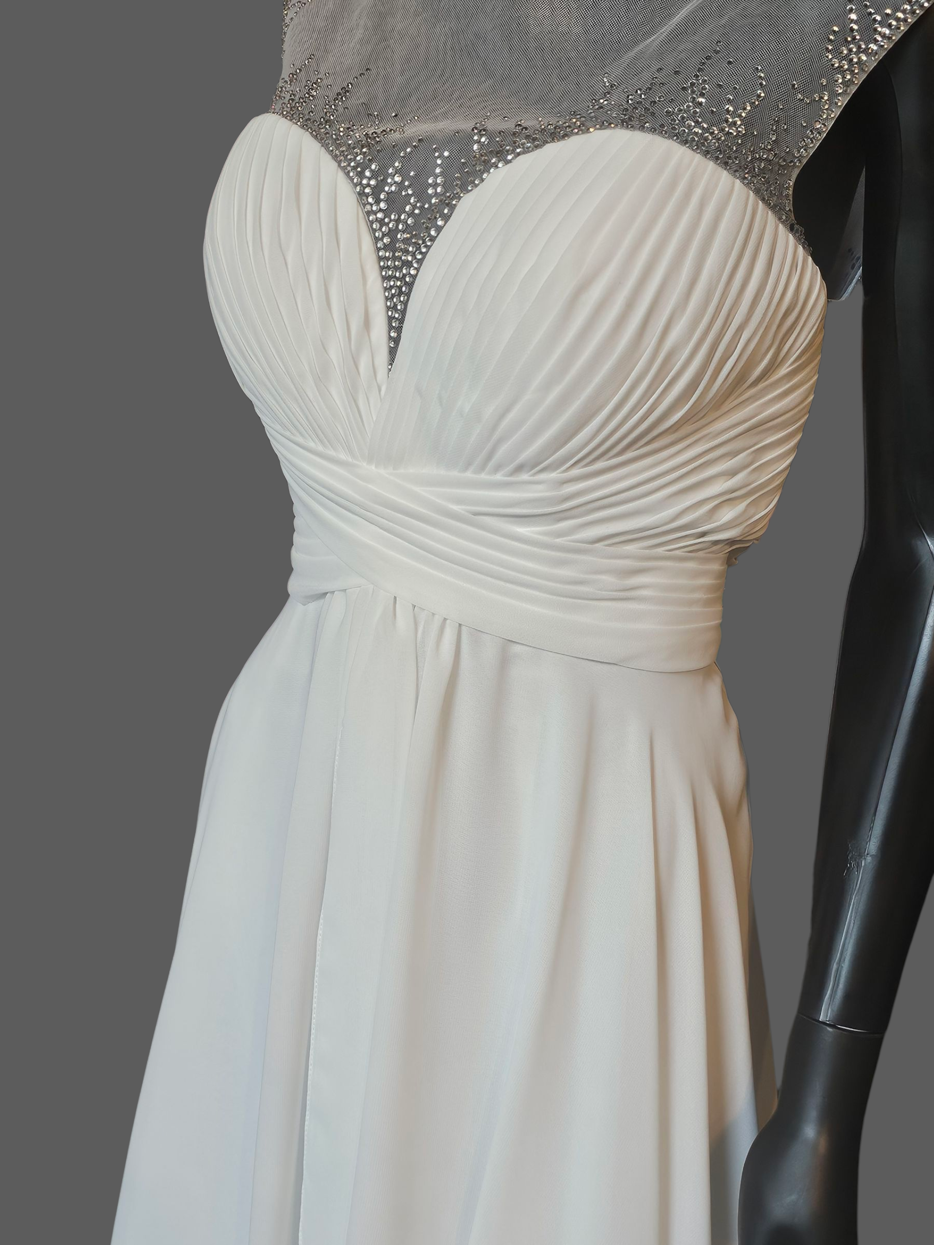 Ivory Chiffon Illusion Sparkle Neckline - PC Marys
