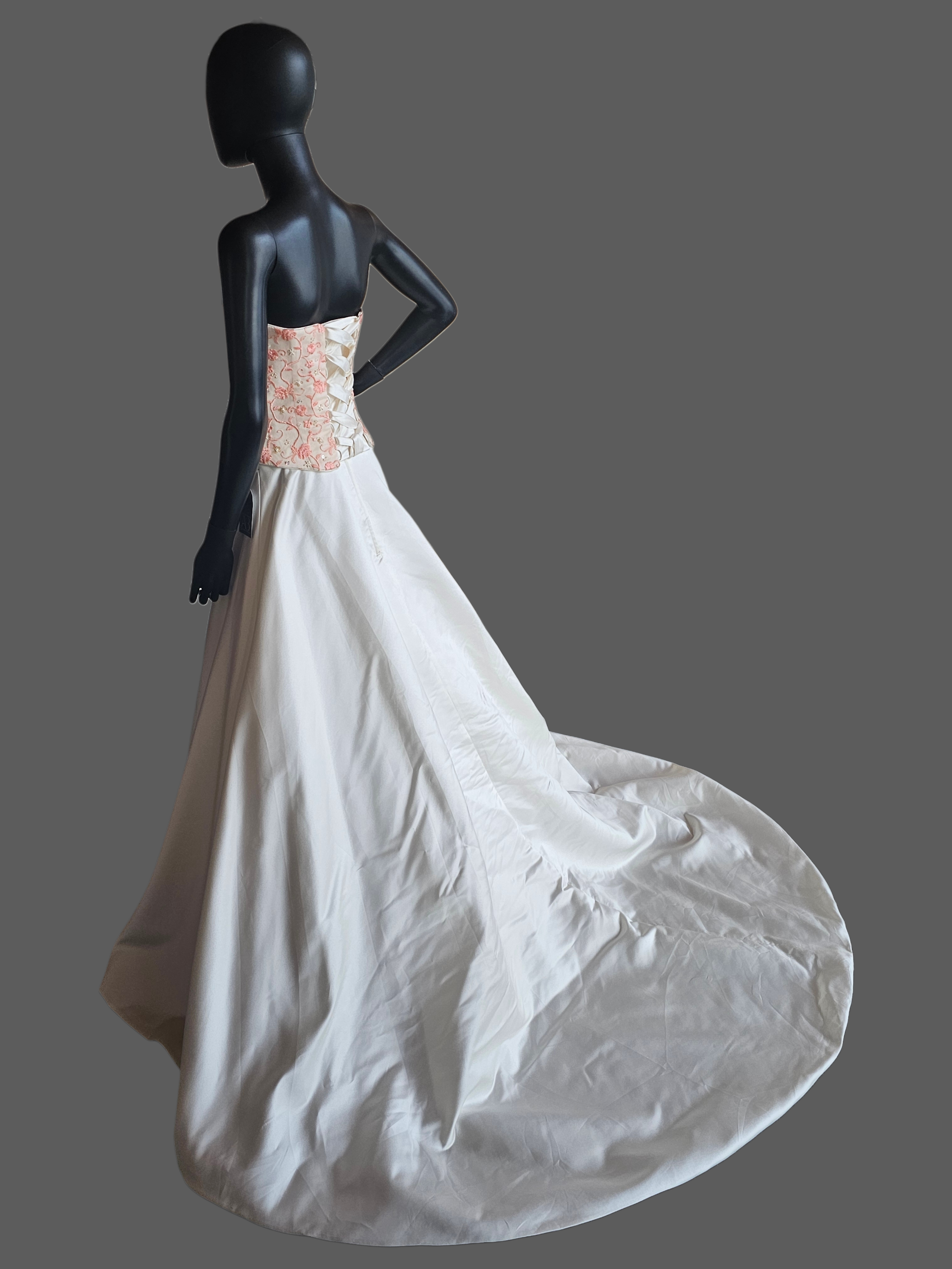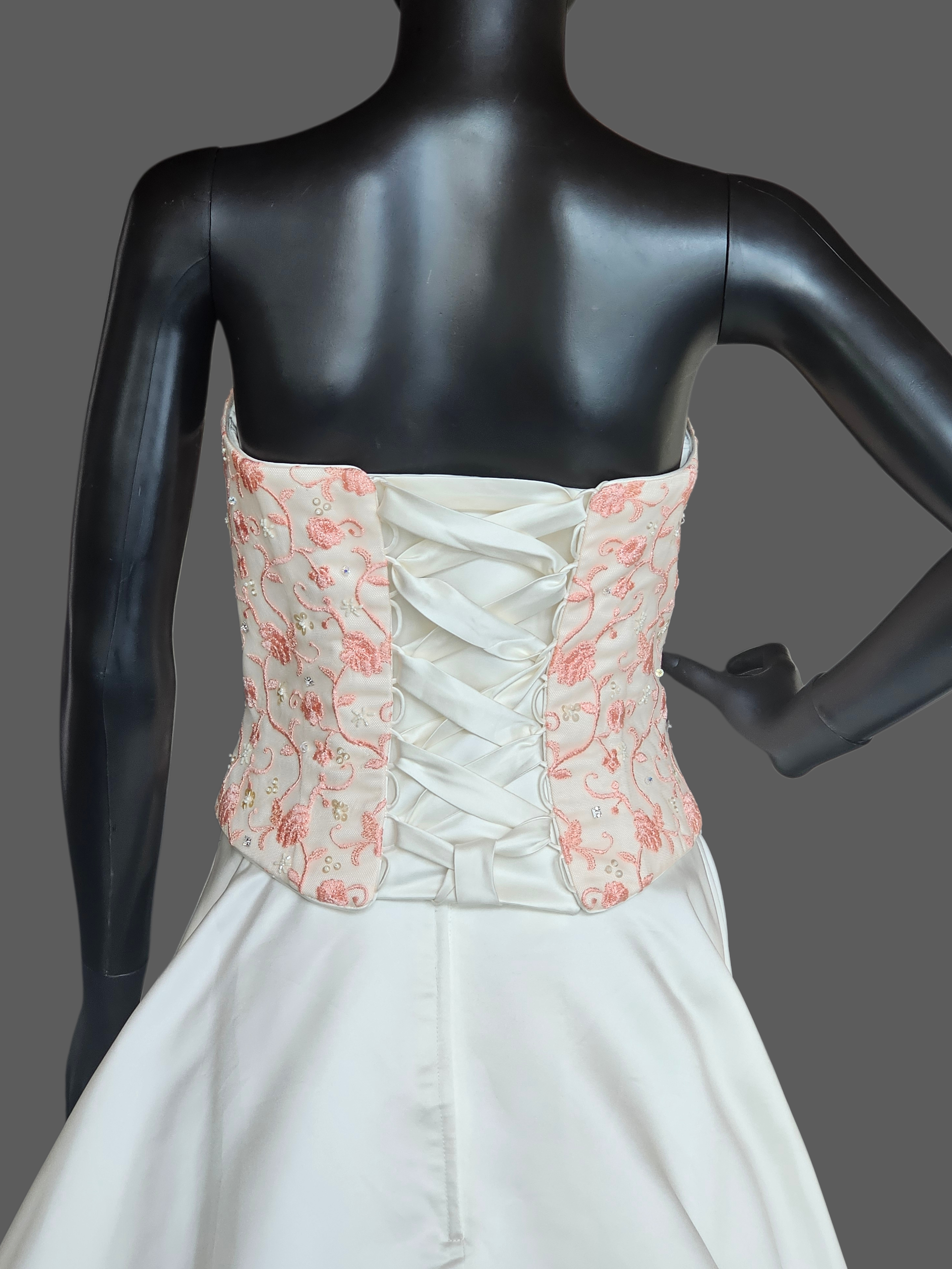 Ivory/Coral Pink Embroidered Strapless 2-Piece Wedding Gown