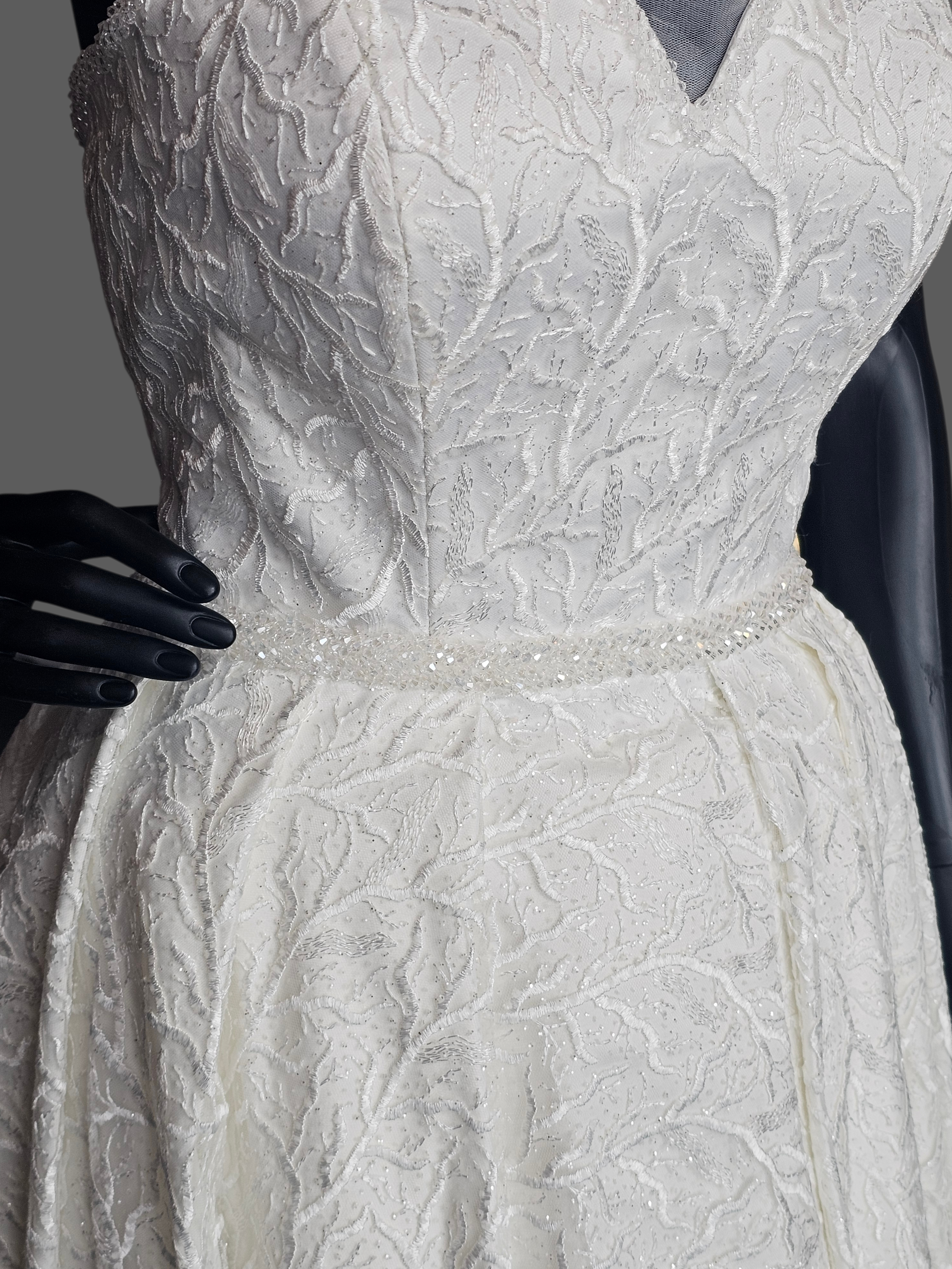 Ivory Sparkle Vine Embroidered Pleated A-Line Wedding Ballgown - Di La Sena - NWT