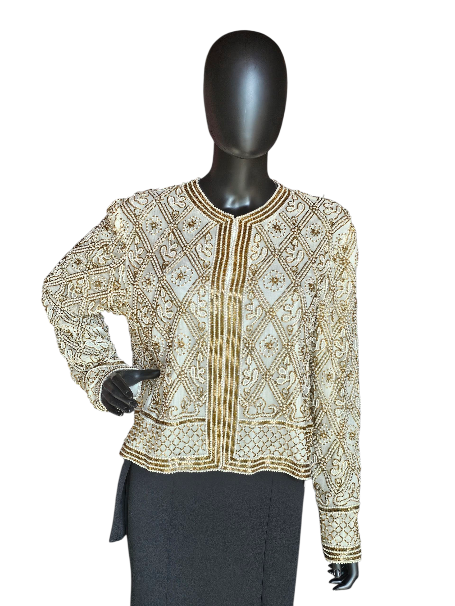 Ivory/Gold/Pearl 100% Silk Jacket