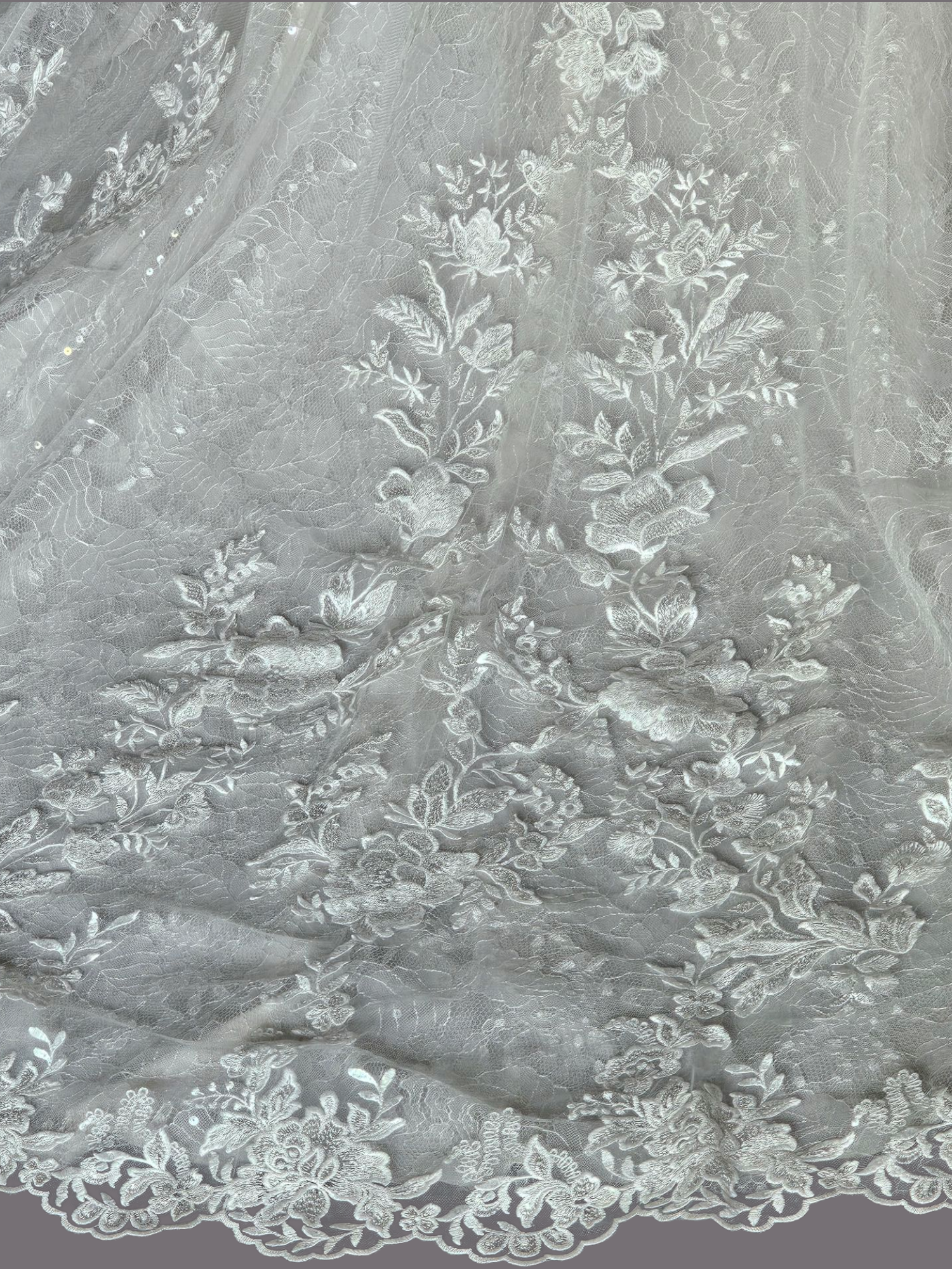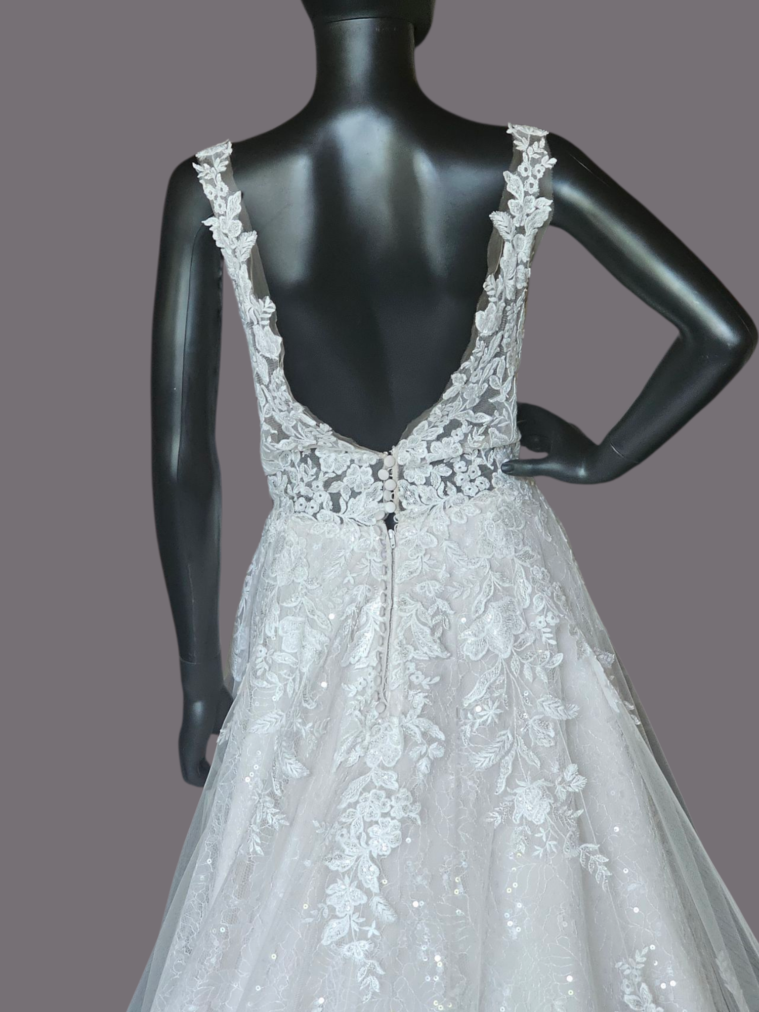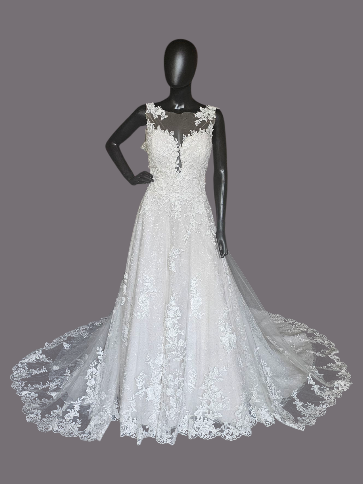 Ivory Illusion Neckline Plunge A-Line Floral Lace Wedding Gown - Morilee