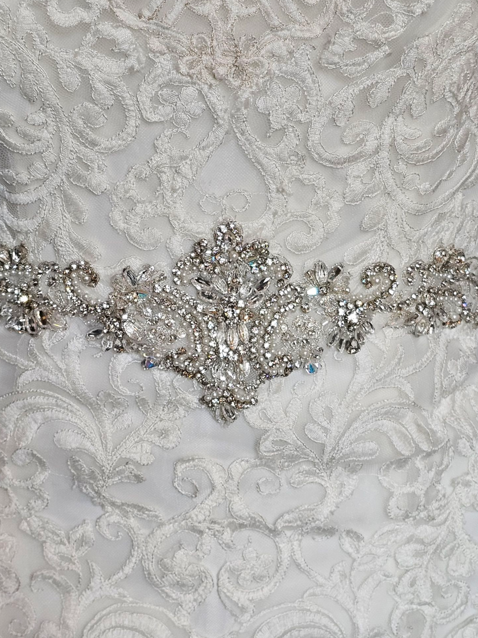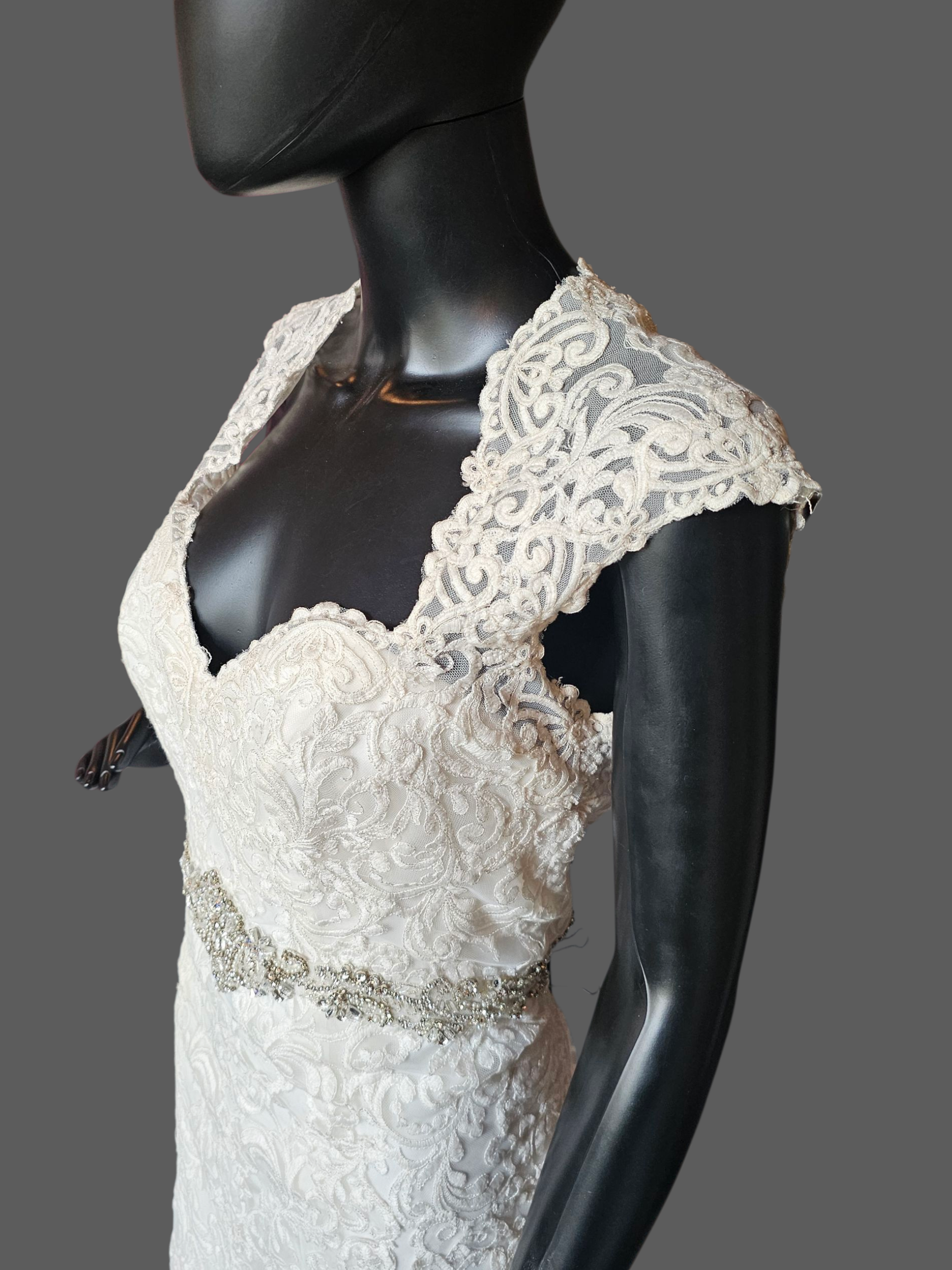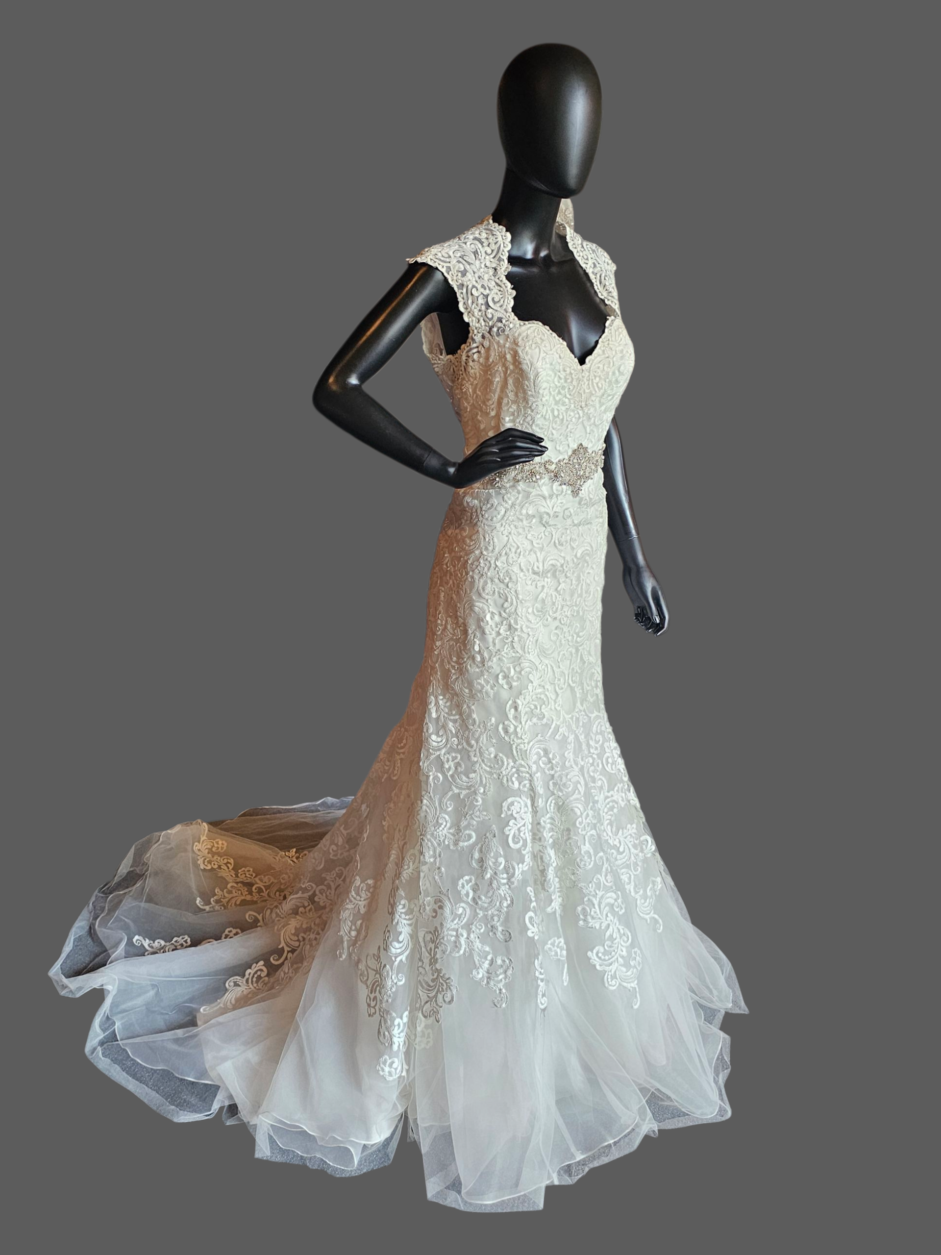 Ivory Lace Queen Anne Cap Sleeve Fit/Flare Wedding Gown - Mori Lee