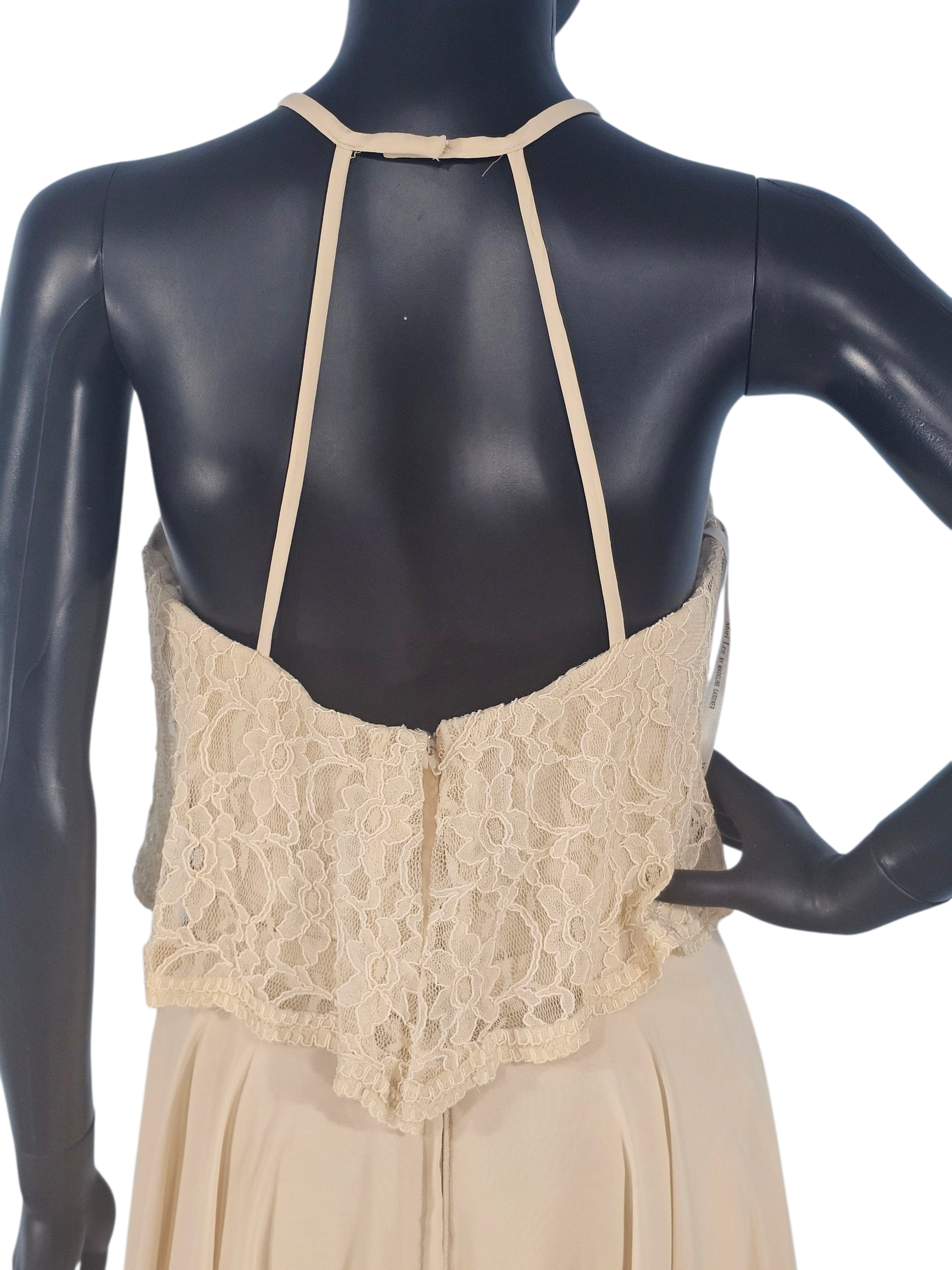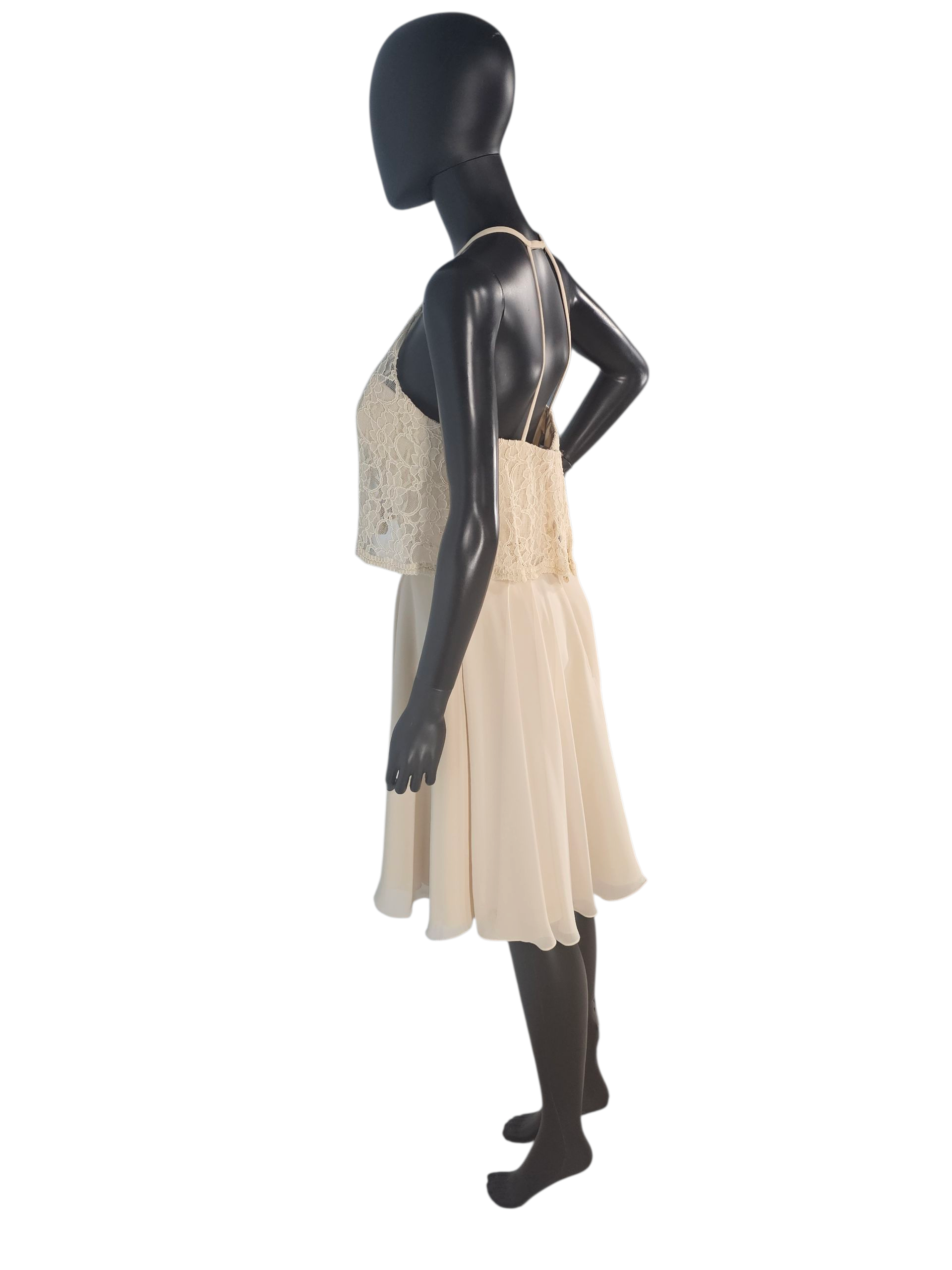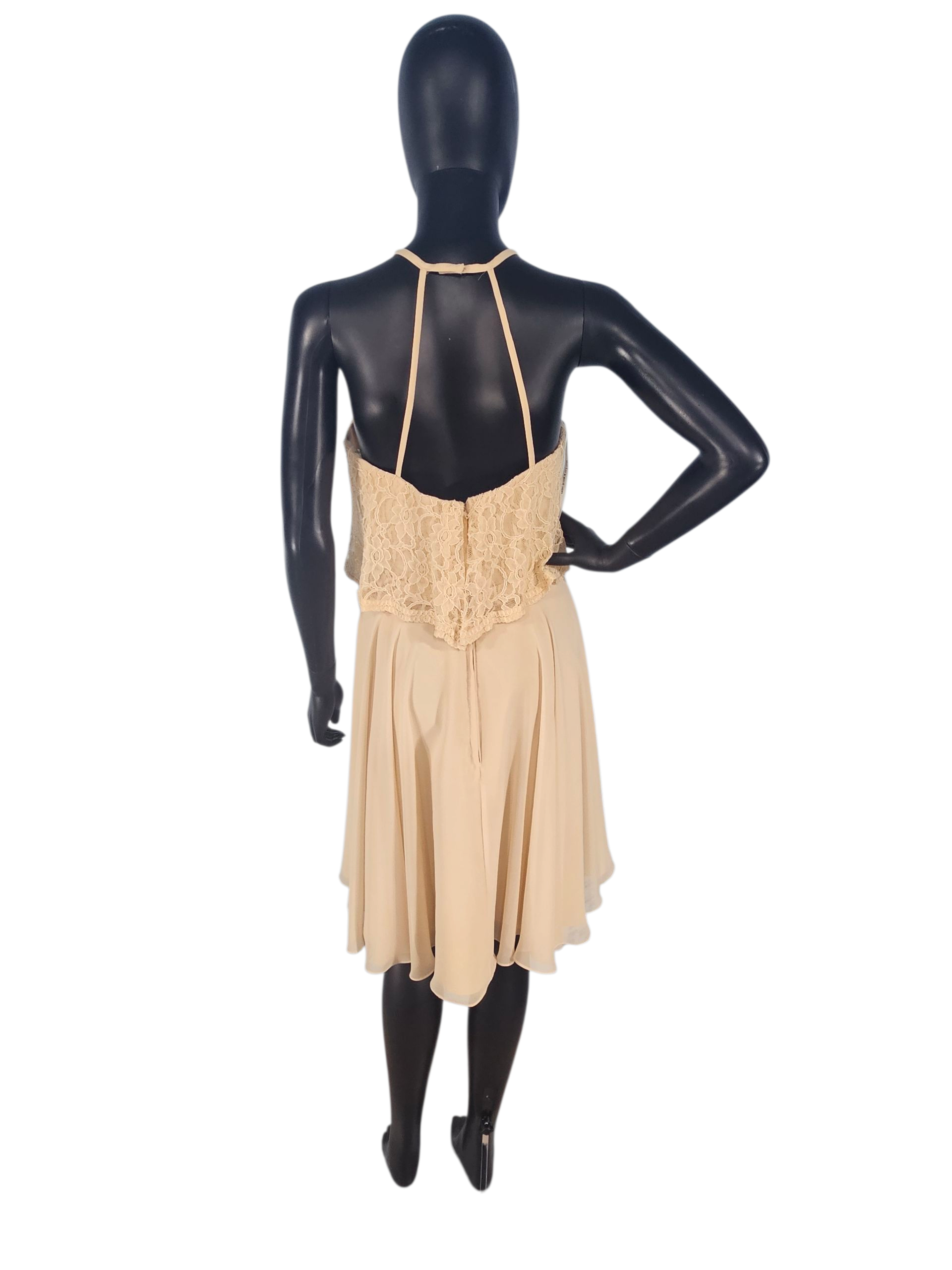 Champagne Lace/Chiffon Halter Flutter Cocktail/Party Dress - Mori Lee