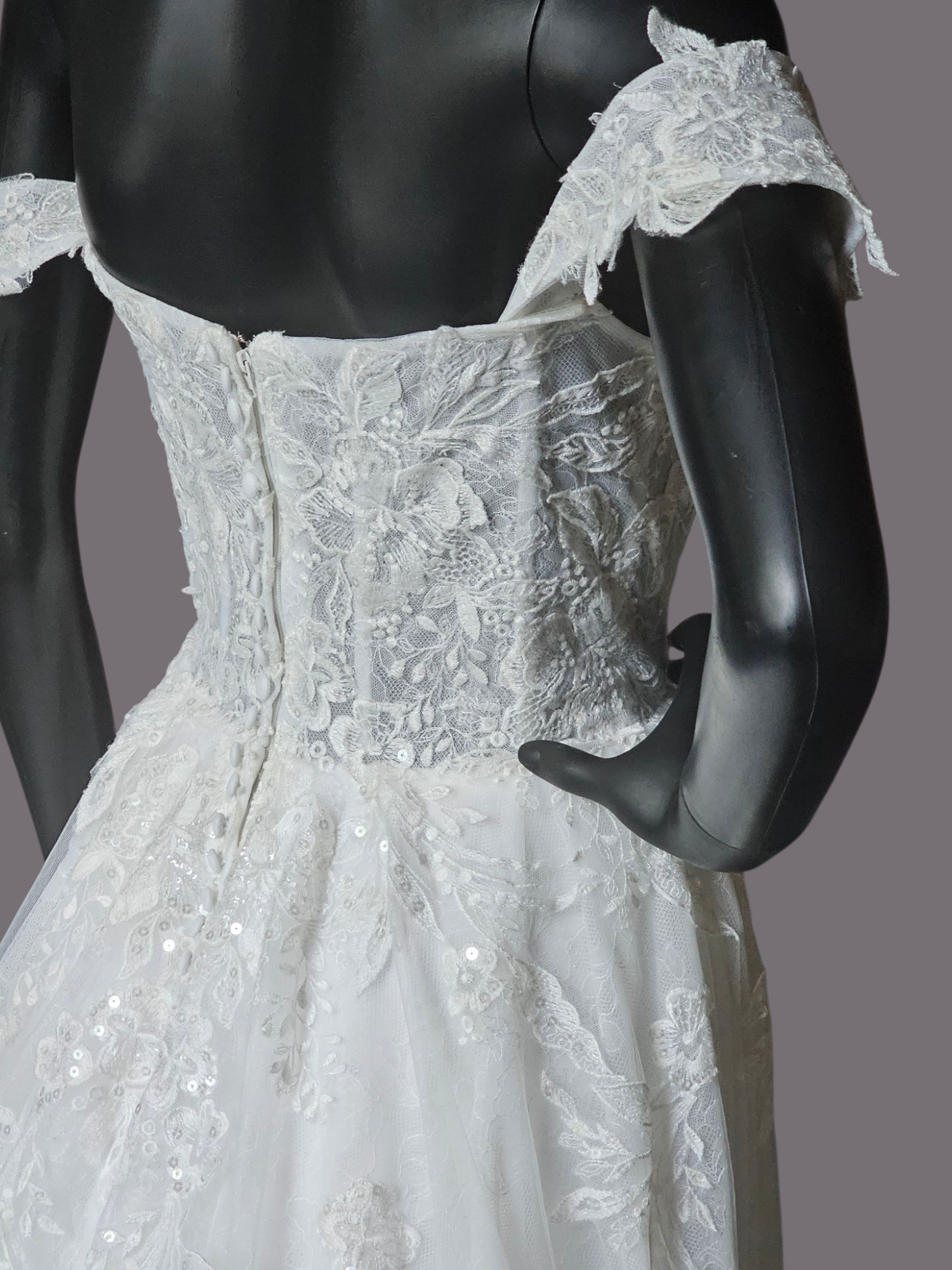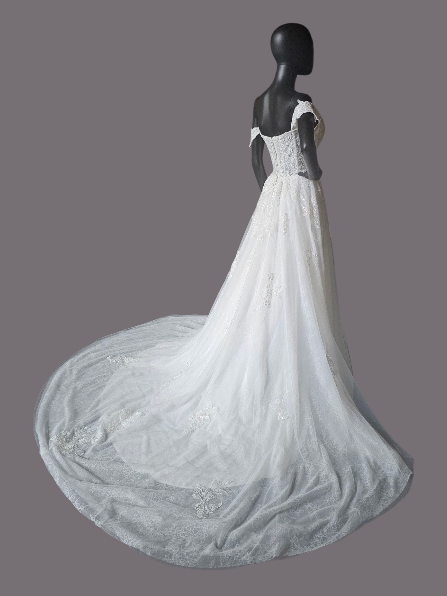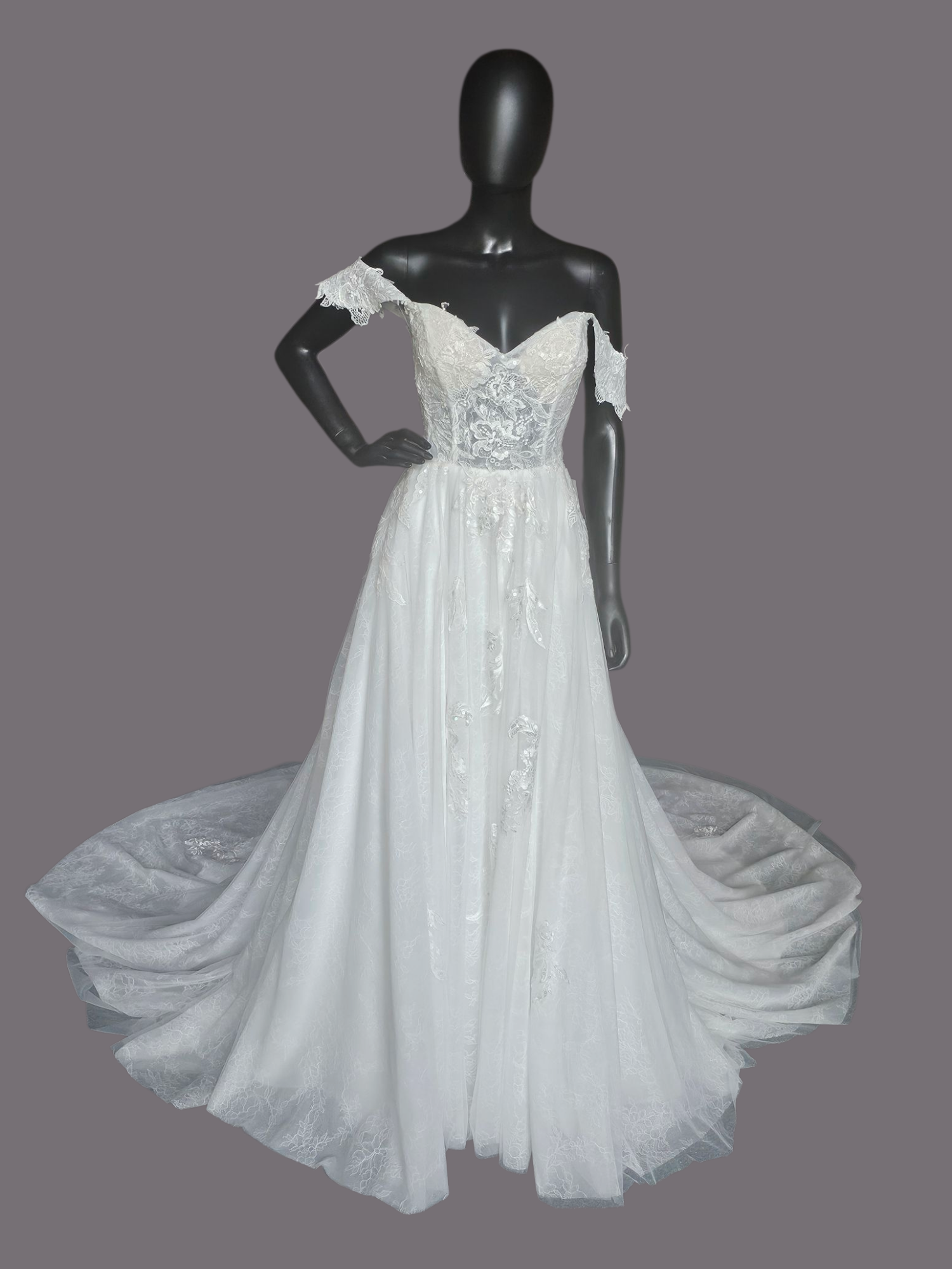 Ivory Lace Embroidered A-Line Shrug Sleeve Wedding Gown - Da Vinci