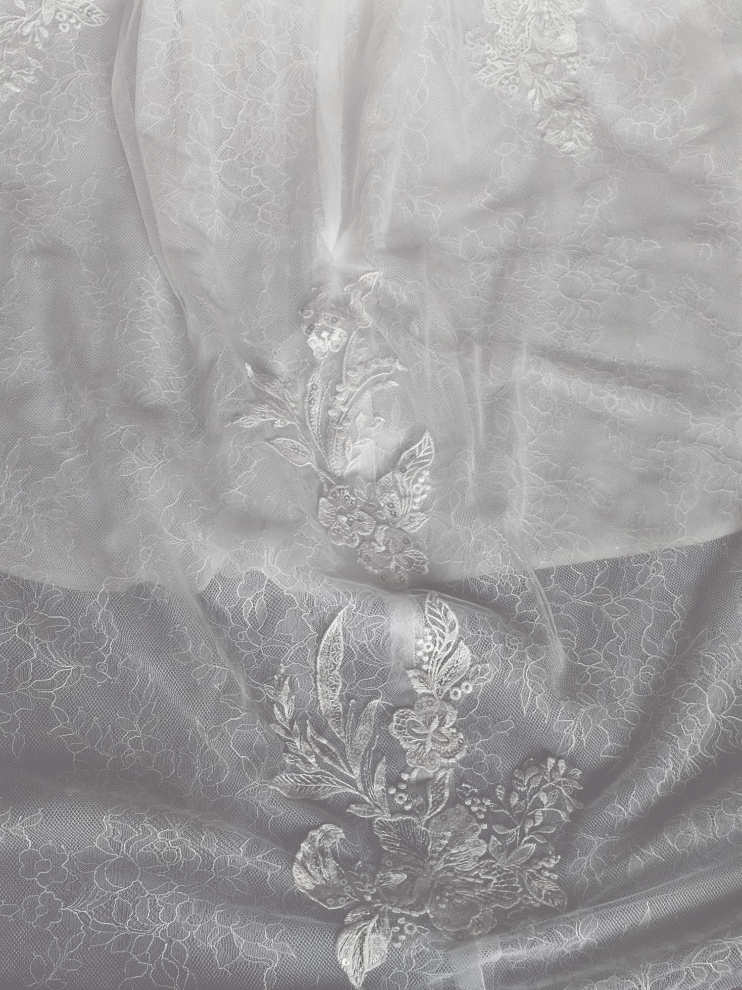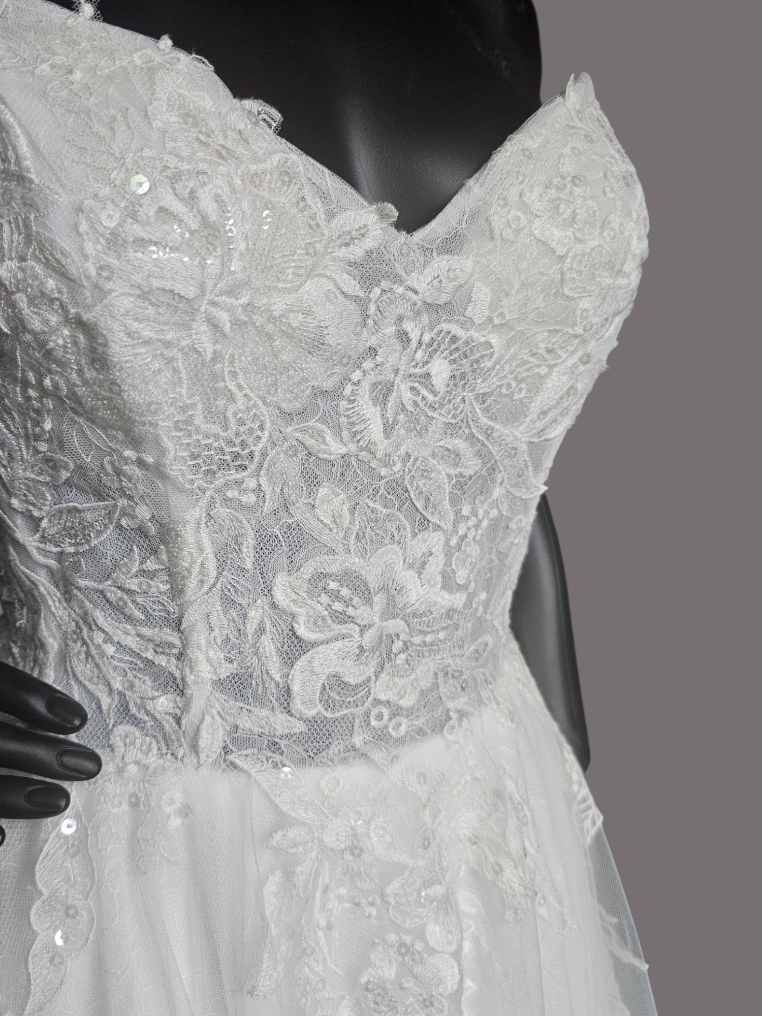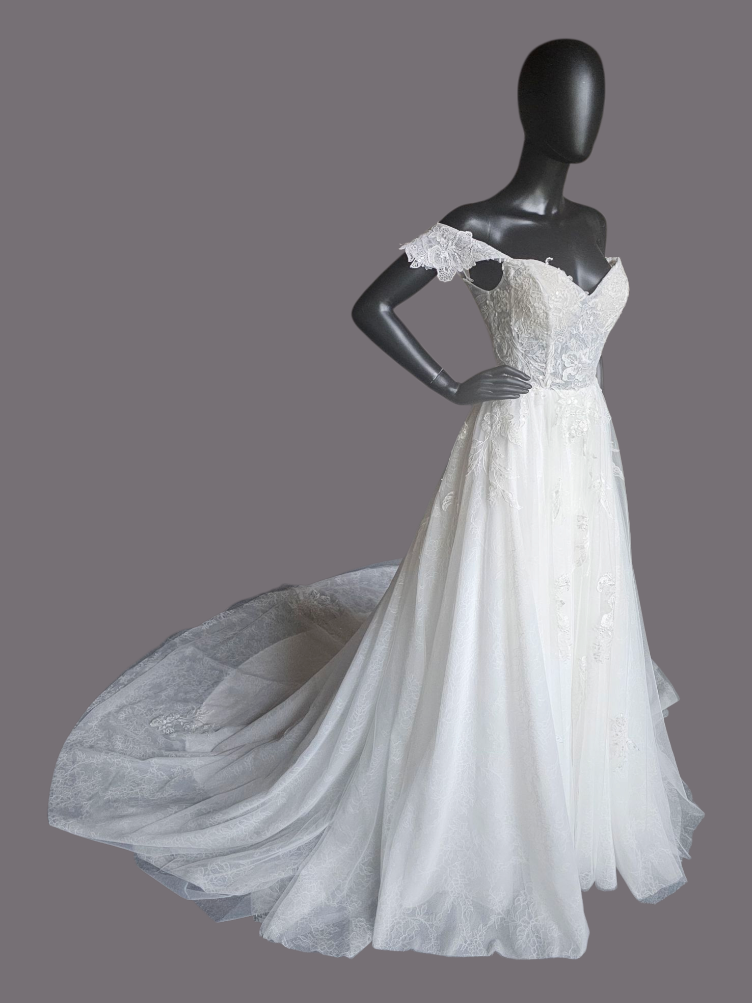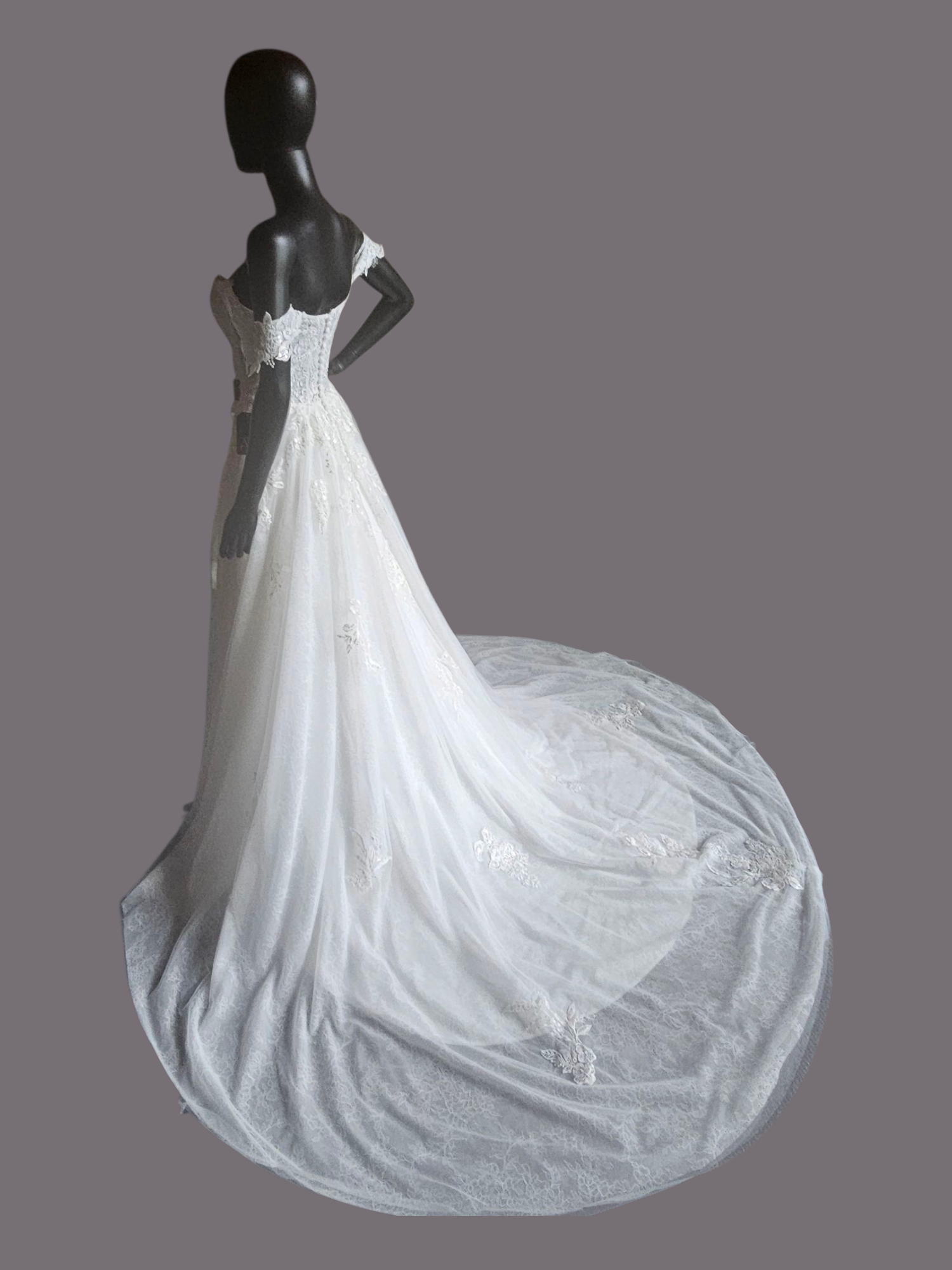 Ivory Lace Embroidered A-Line Shrug Sleeve Wedding Gown - Da Vinci