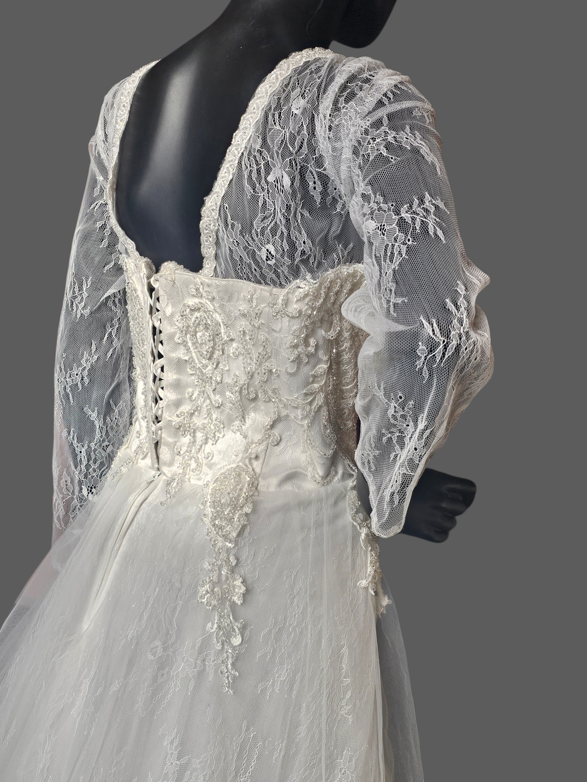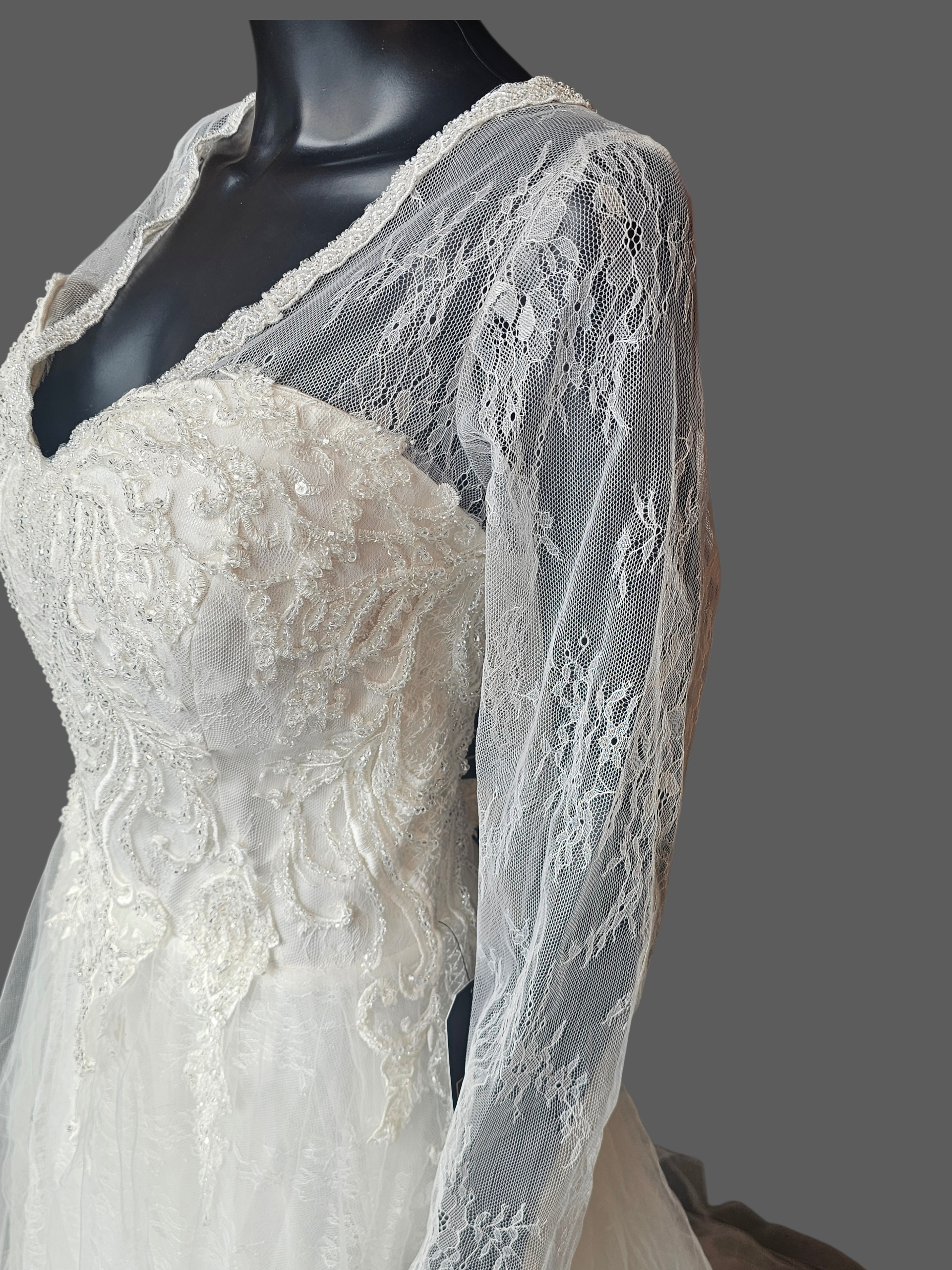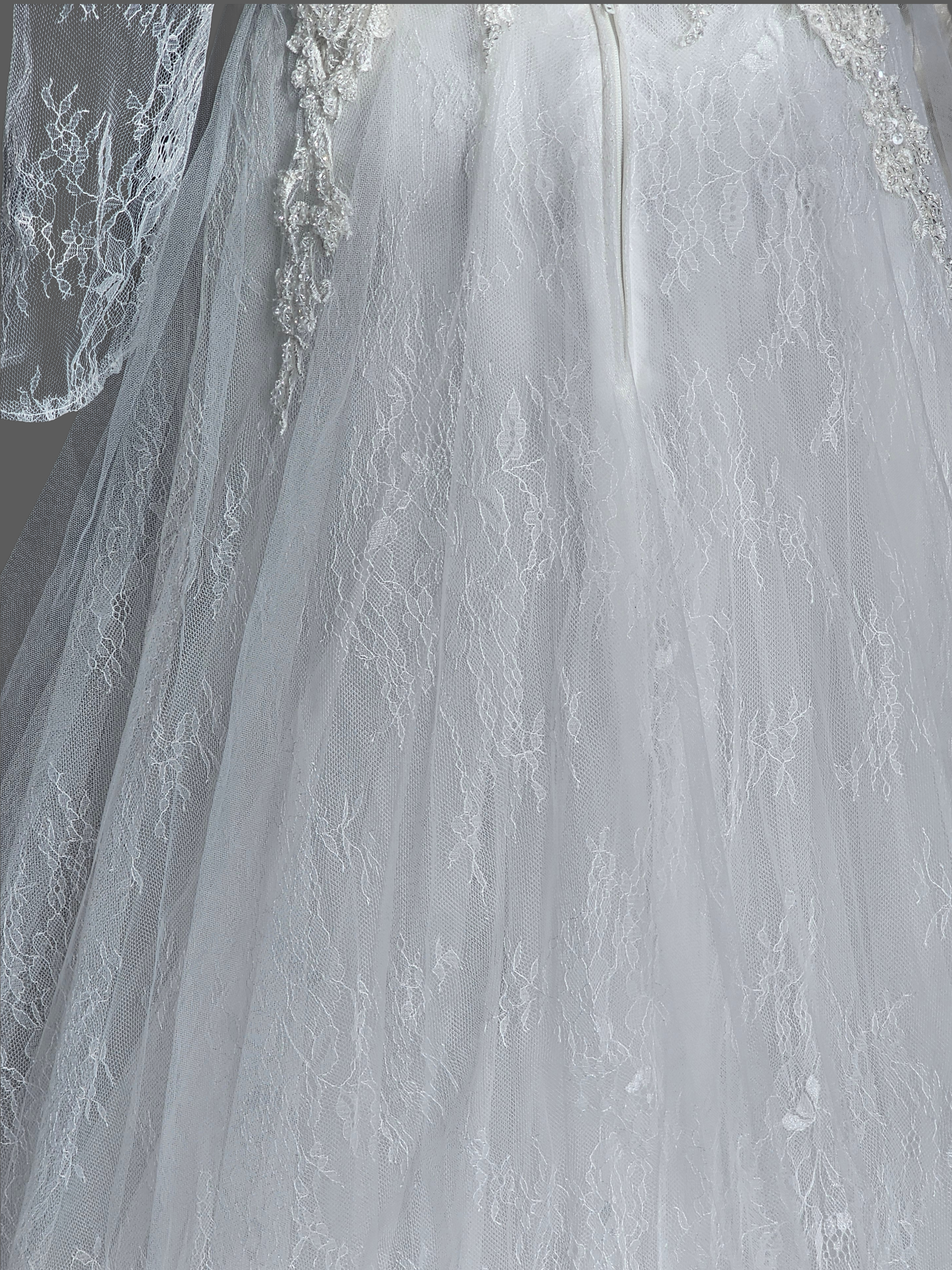 Ivory Lace Long Sleeve V-Neck Wedding Gown - Di La Sena