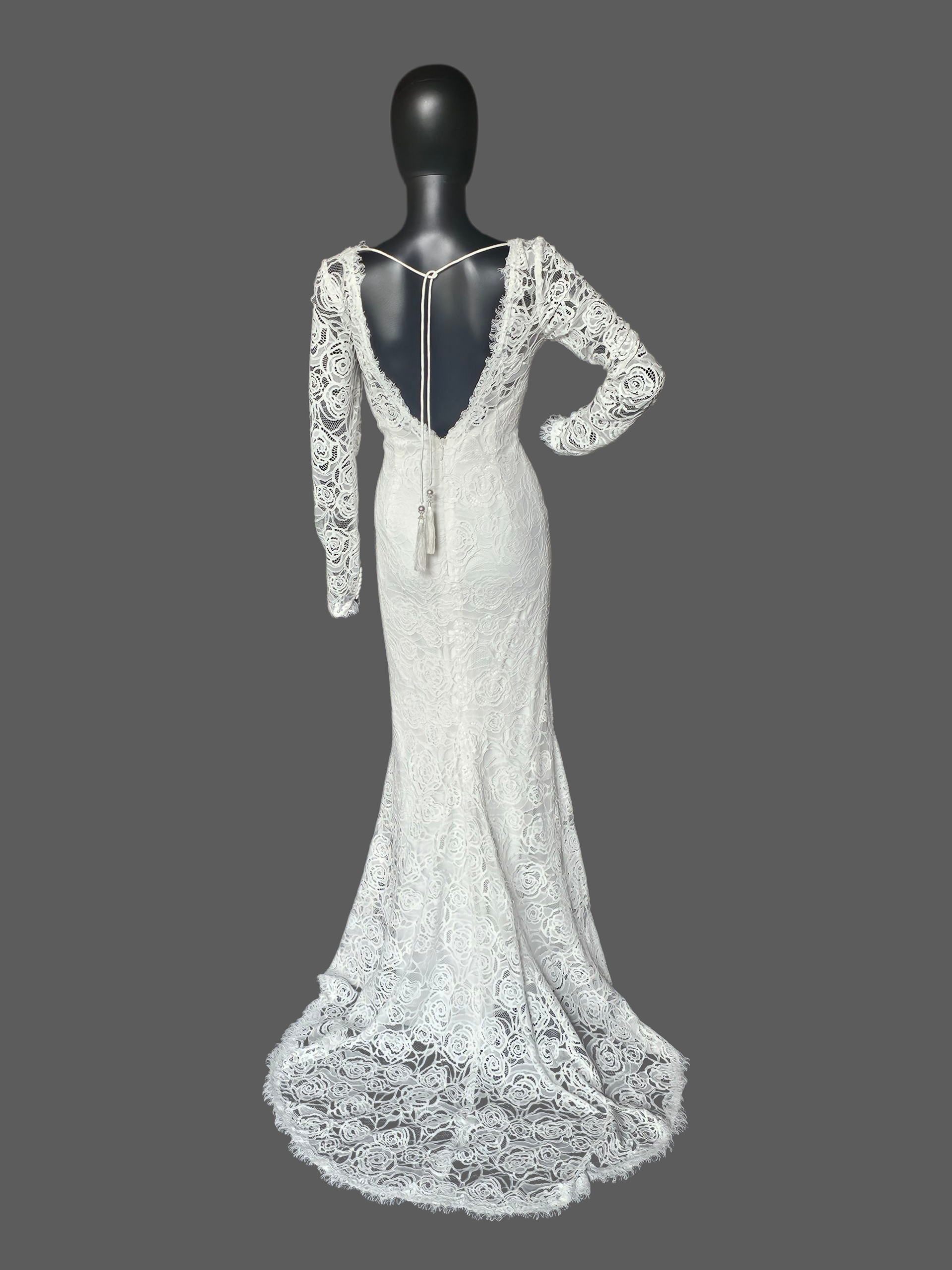 Ivory Long Sleeve Lace Fit/Flare Wedding Gown - DB Bridal
