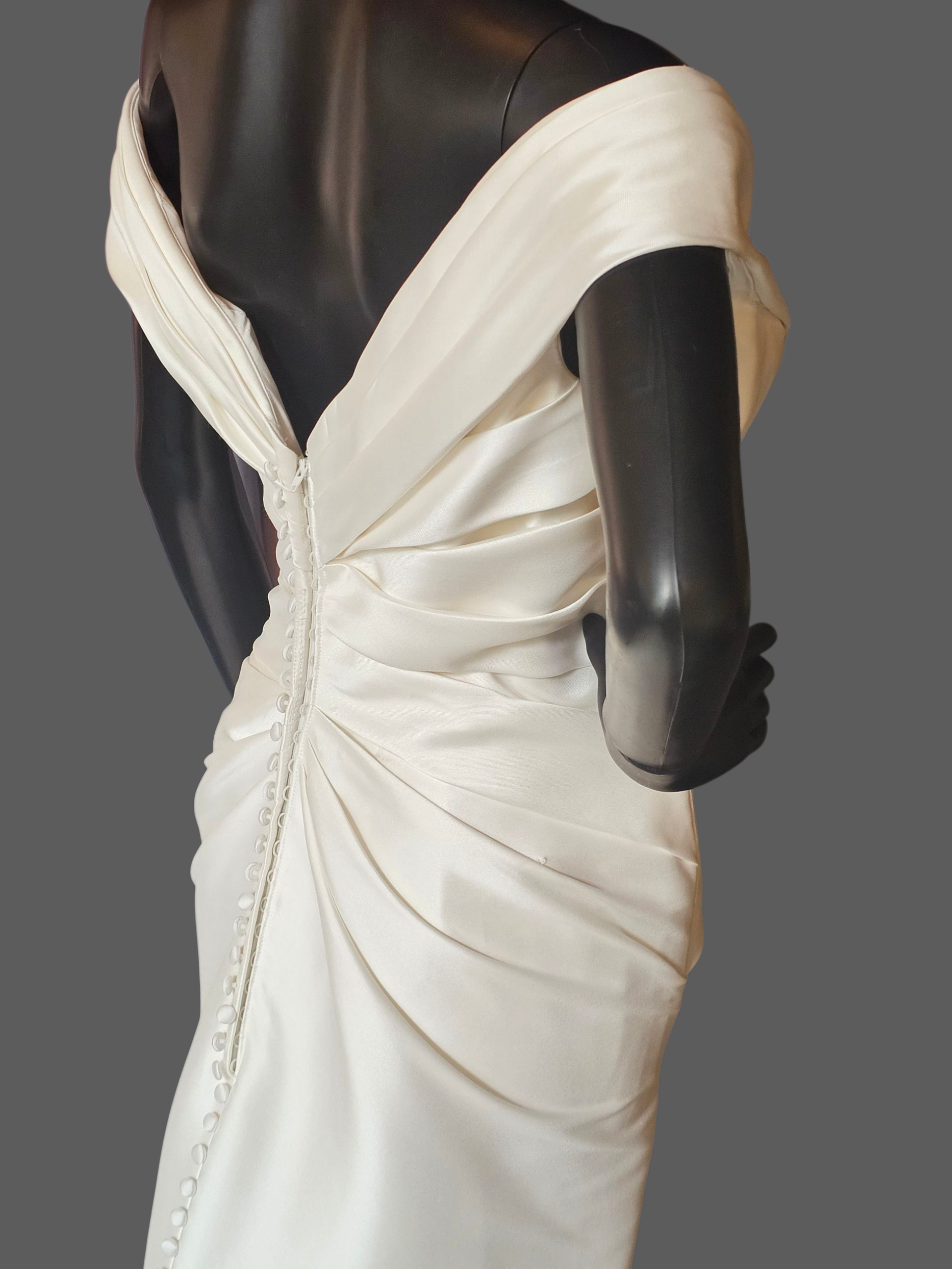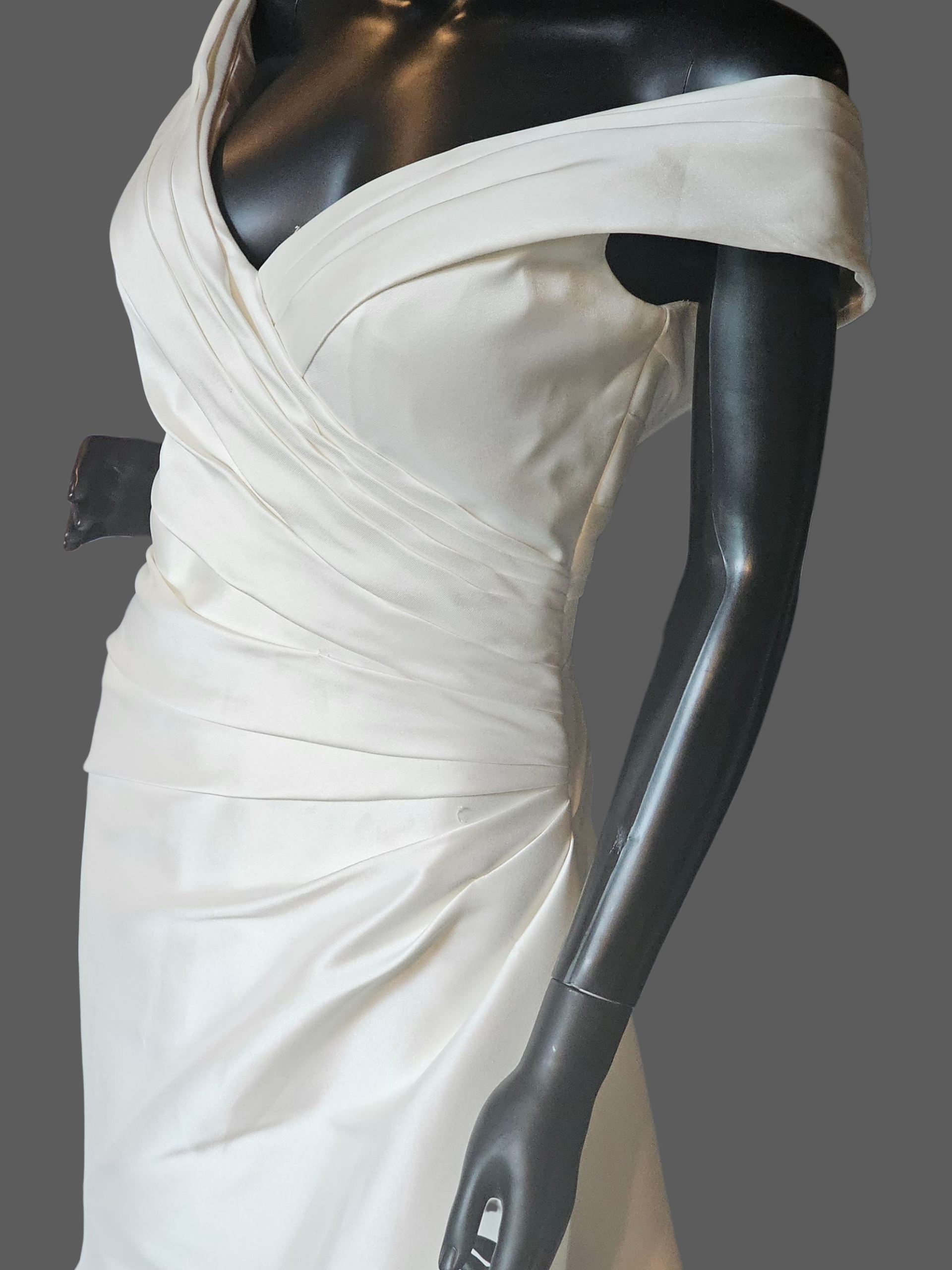 Ivory Mikado Off-Shoulder Fit/Flare Wedding Gown NWOT - Mori Lee