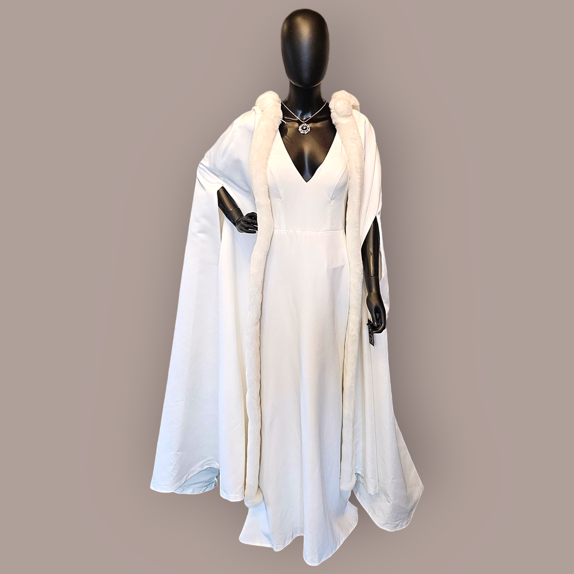 Michelangelo Ivory Satin/Fur Wedding Cape