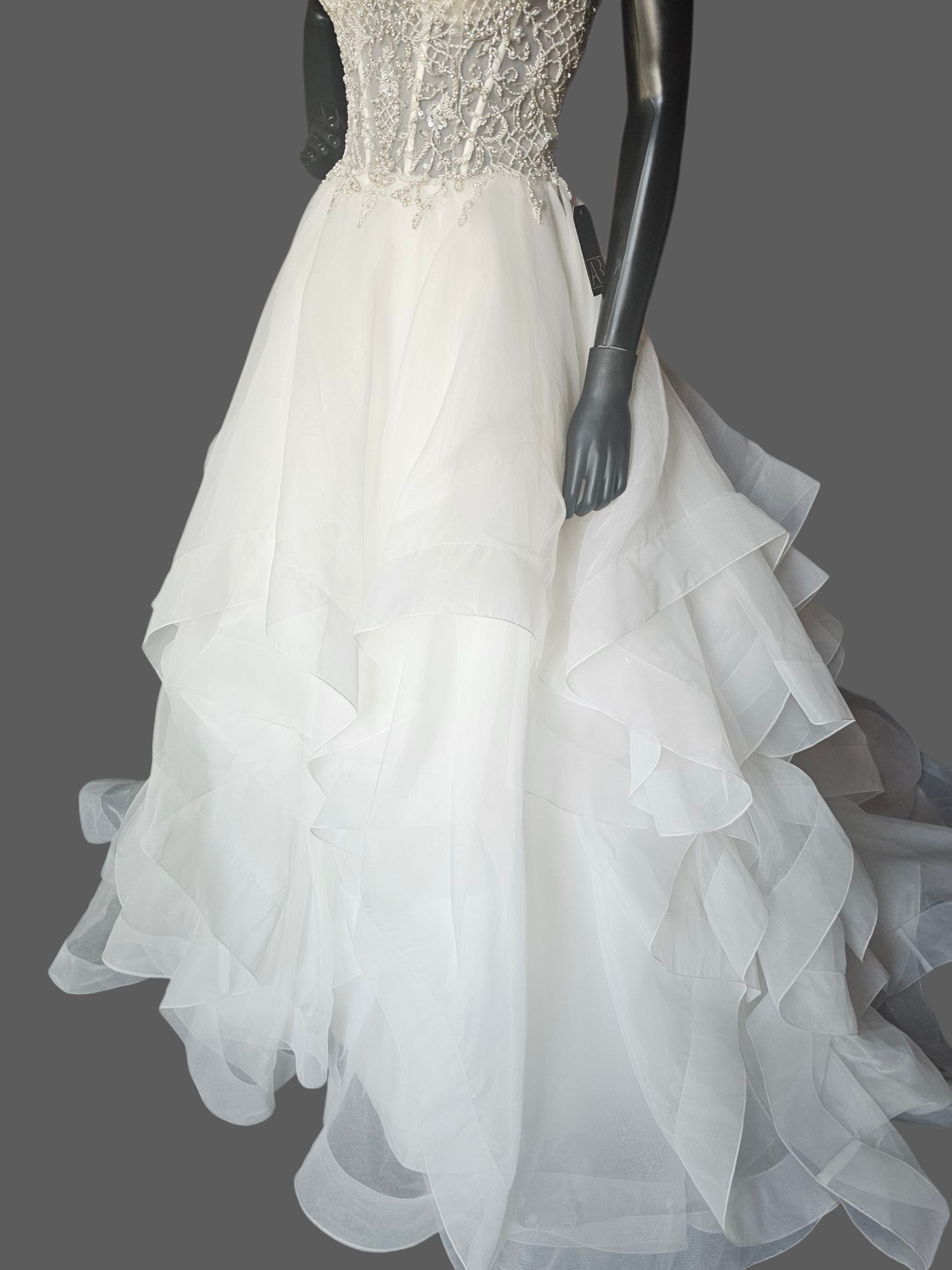 Ivory Horsehair Tiered Illusion Halter A-line NWOT Wedding Gown - Mori Lee