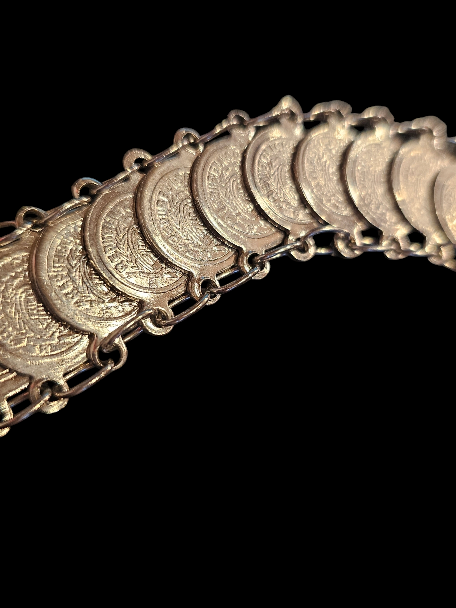 Vintage 1970s Silver Coin Bracelet Hamsa Hand Vintage Republica Di S Marino Bracelet