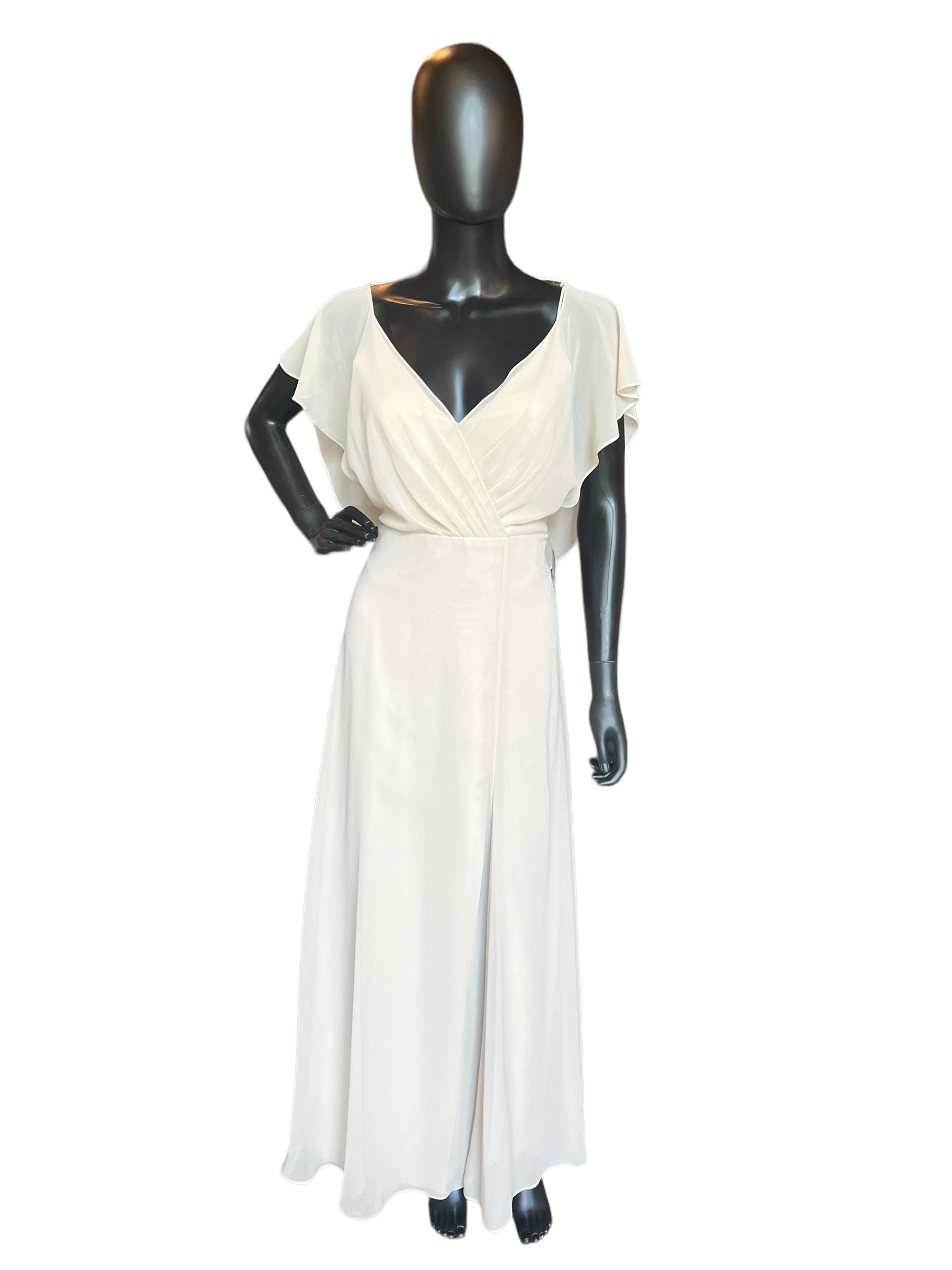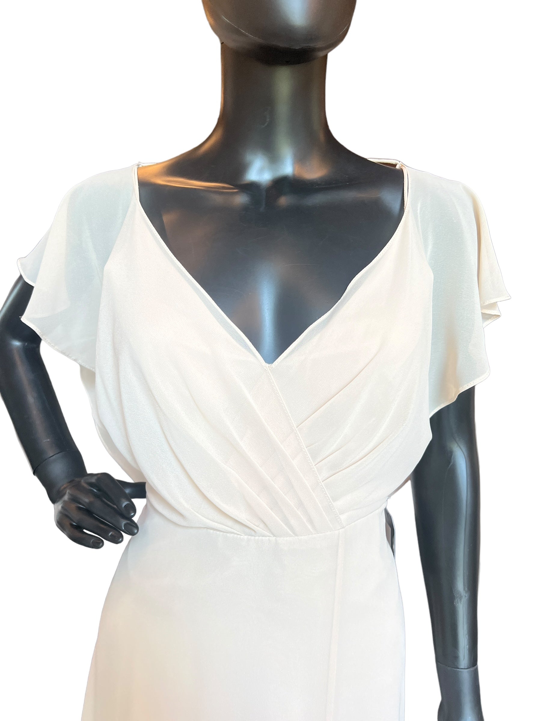 Jenny Yoo Cream Chiffon Flutter Sleeve