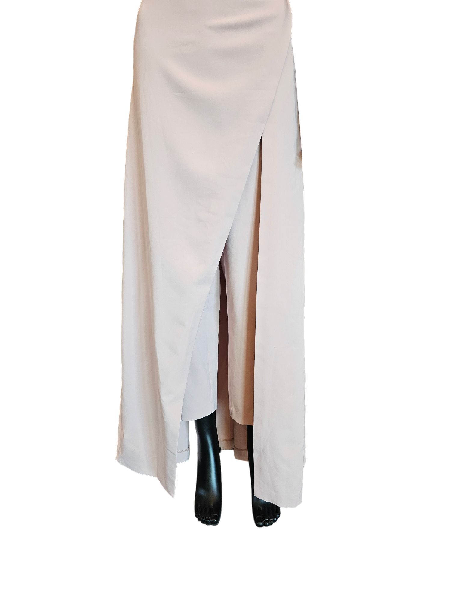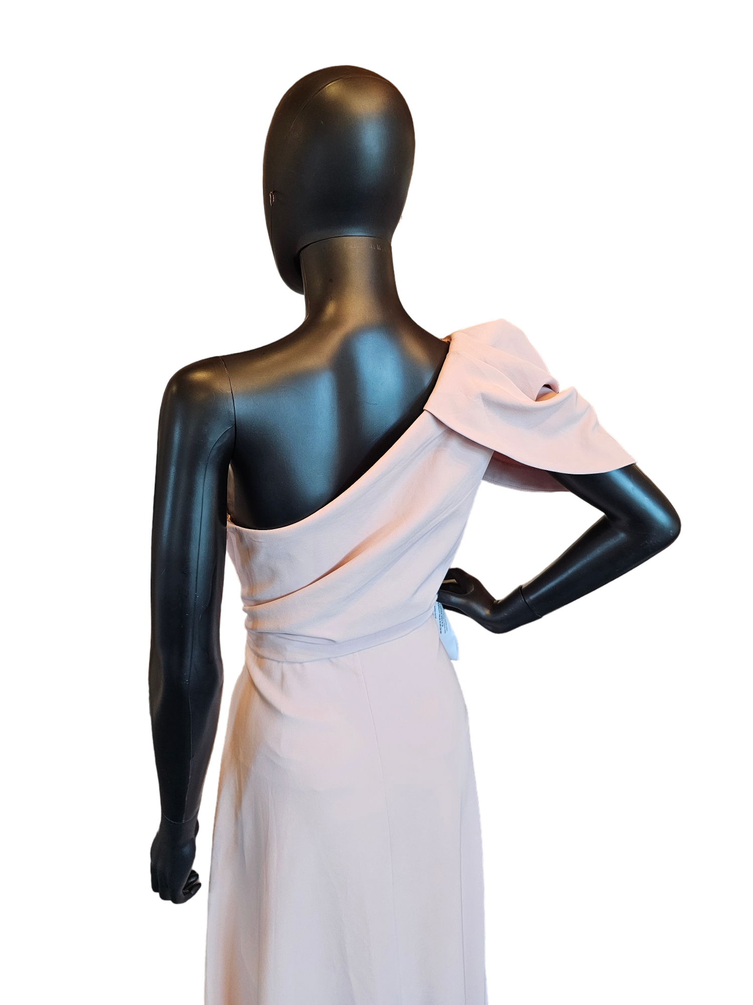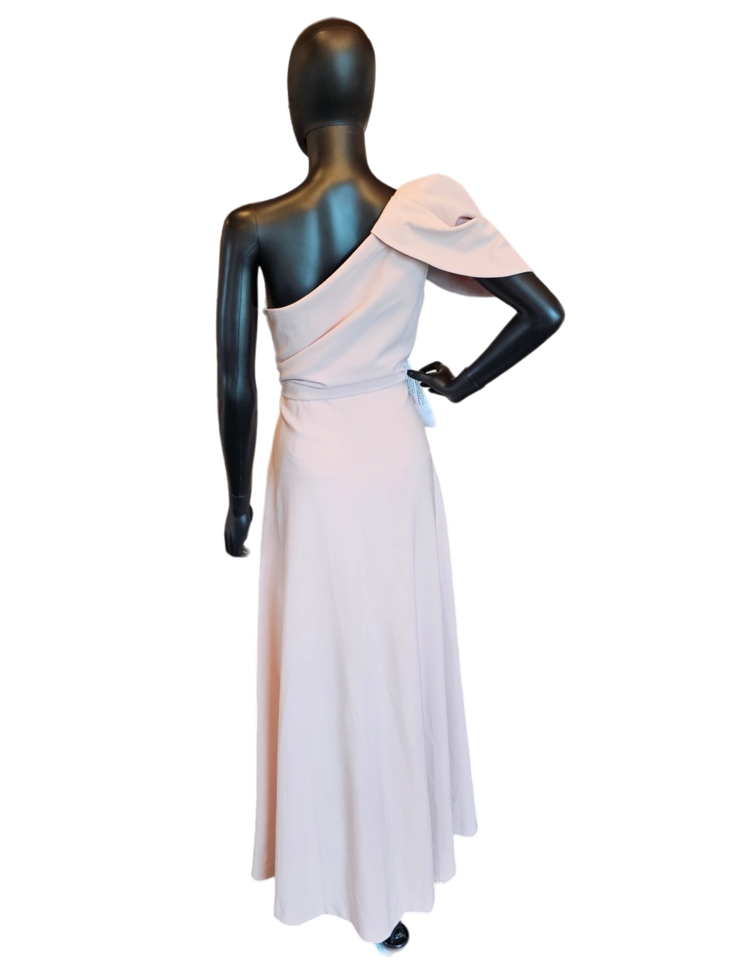 Experience effortless elegance with the Kay Unger Blush Walkthrough Jumpsuit. The modern one shoulder neckline and sleek design create a fashionable silhouette, while the beautifully soft blush fabric adds luxurious comfort and color. The slim cut pant and a-line overskirt with a walkthrough side slit add a touch of sophistication to this stunning jumpsuit.