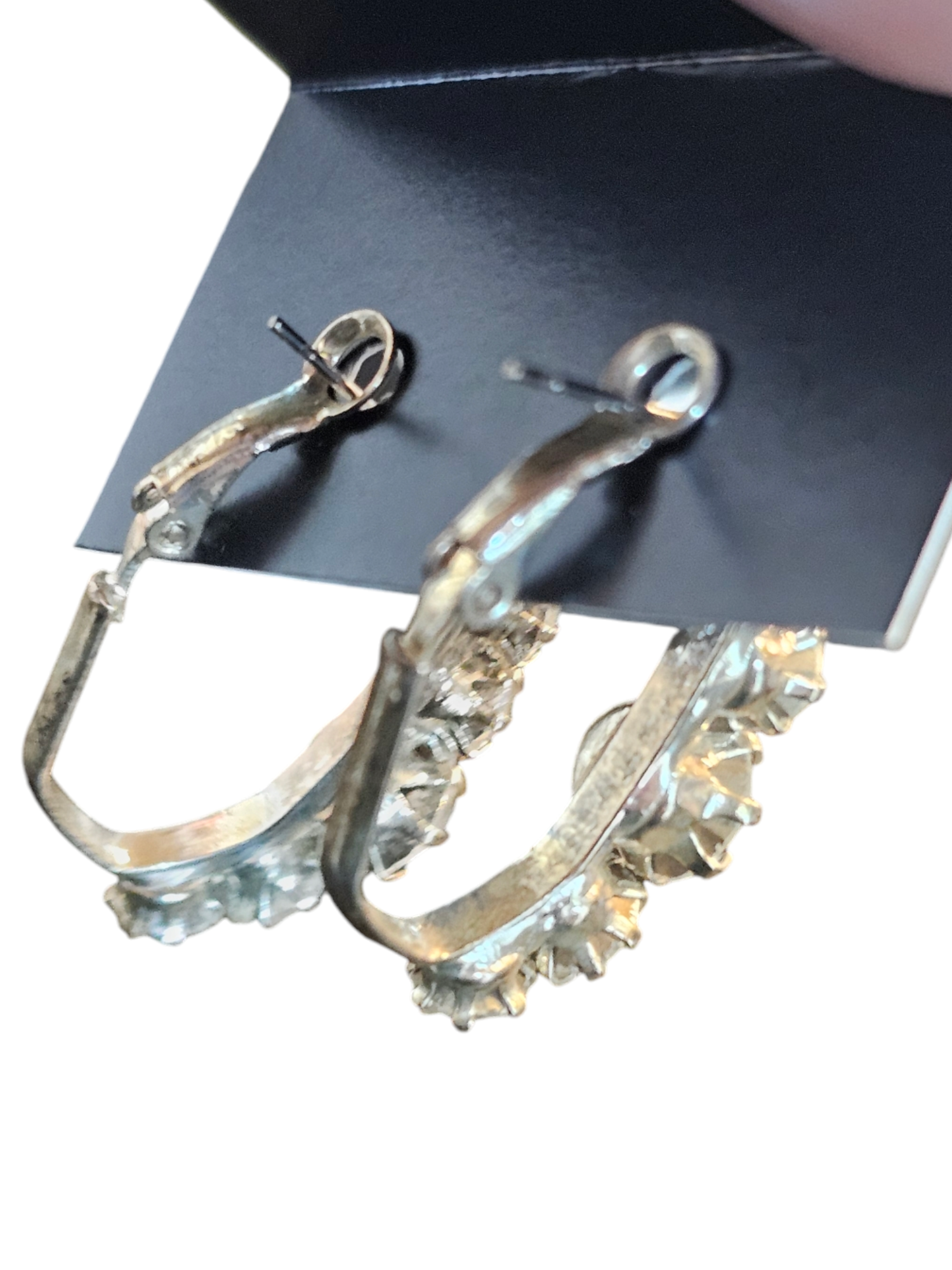 Enhance your look with these elegant Large Crystal Hoop Earrings. Made with a silver collapsed hoop and a clasp closure, these earrings feature a large graduated clear crystal rhinestone for a touch of glamour. Elevate any outfit with these stunning and versatile earrings.