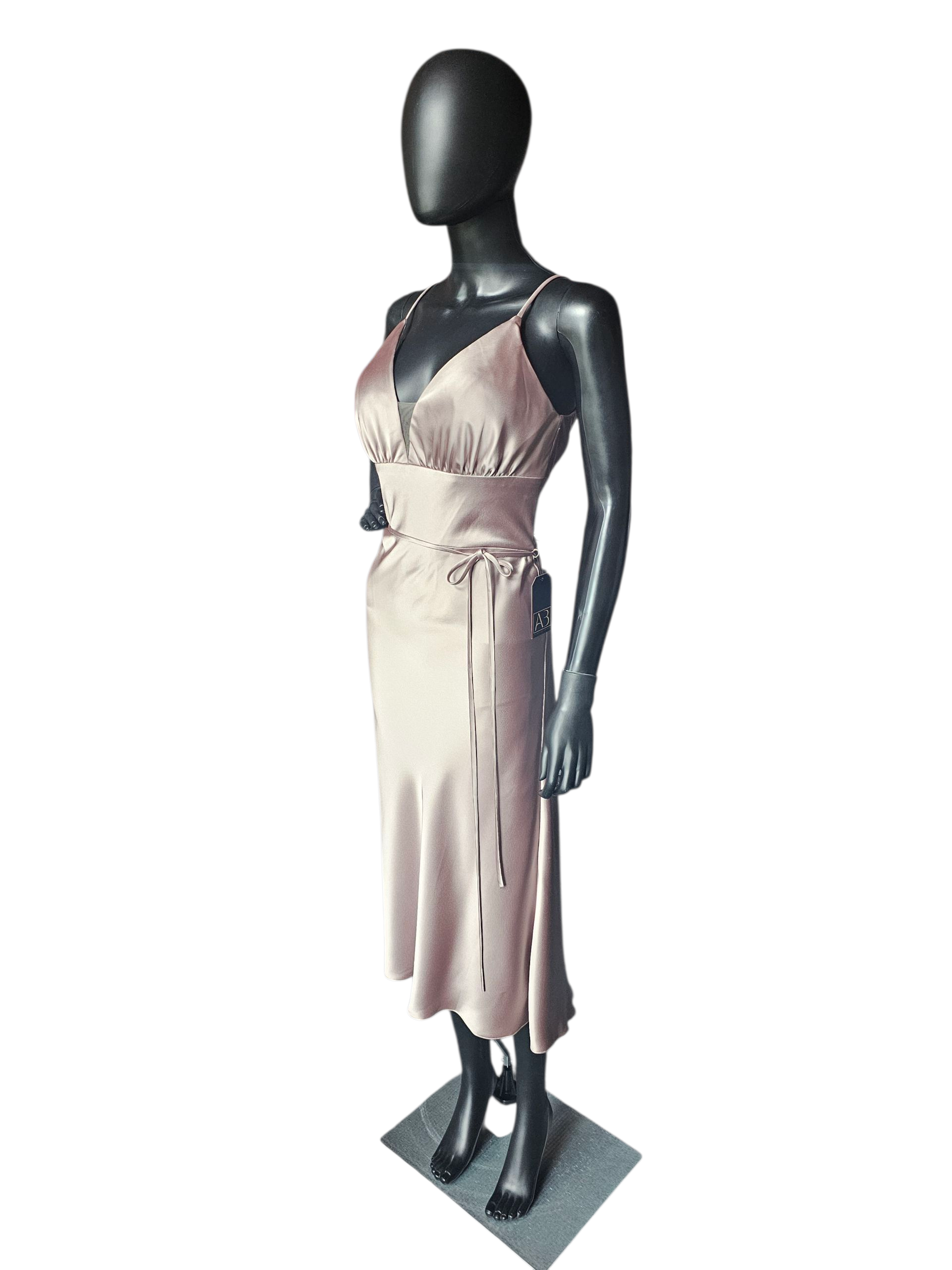 Latte Silky Satin V-Neck Plunge Fitted Party/Cocktail Dress NWOT - Mori Lee