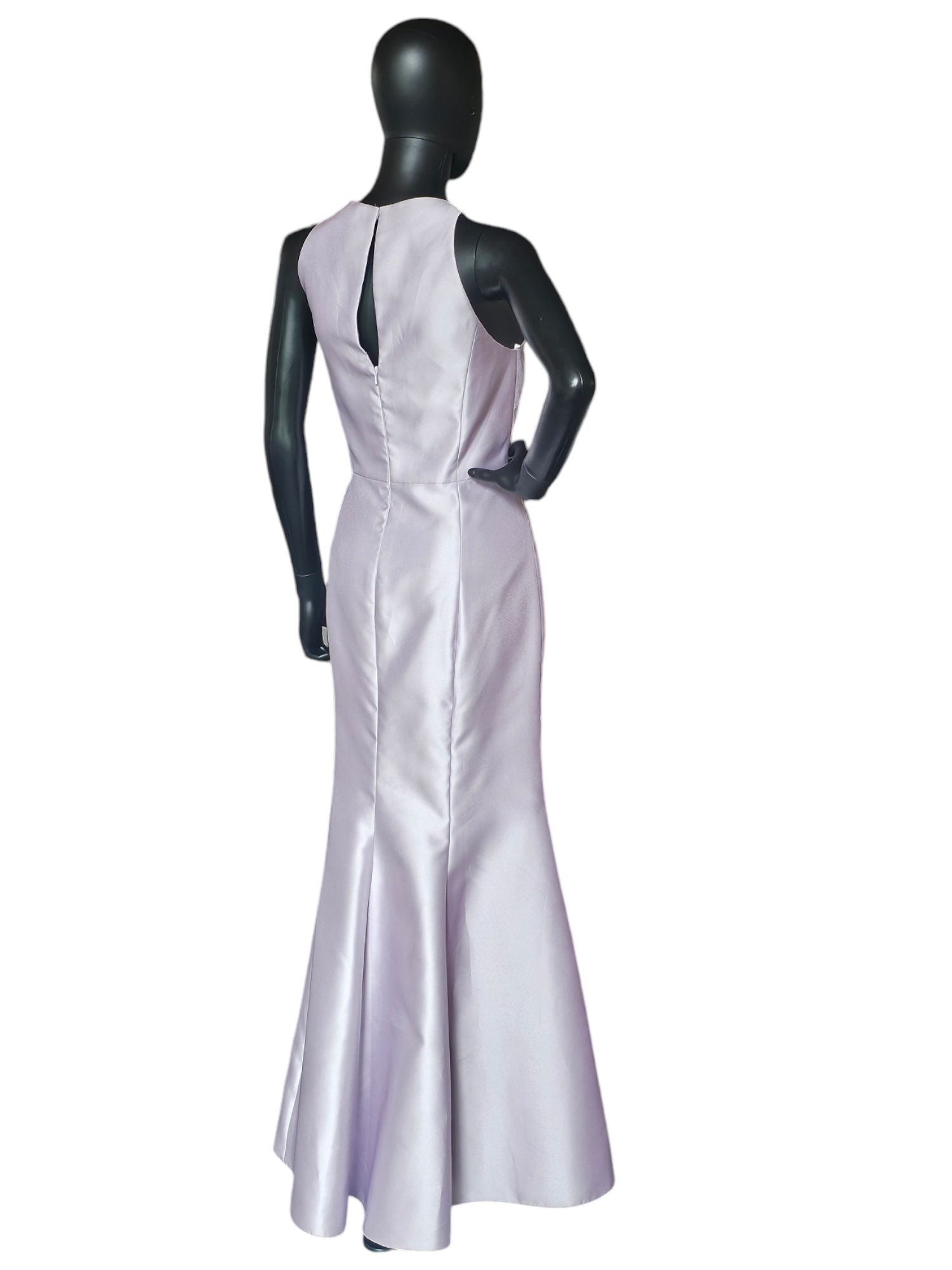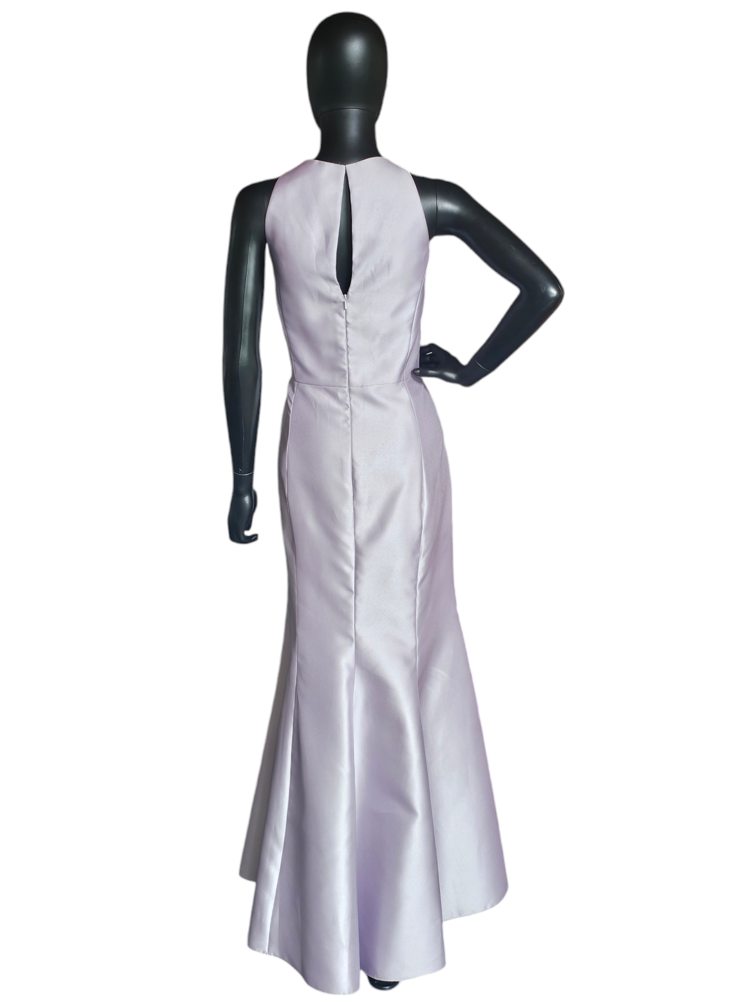 Jewel Collar Lavender Satin Twill Formal Gown - Bella Bridesmaids