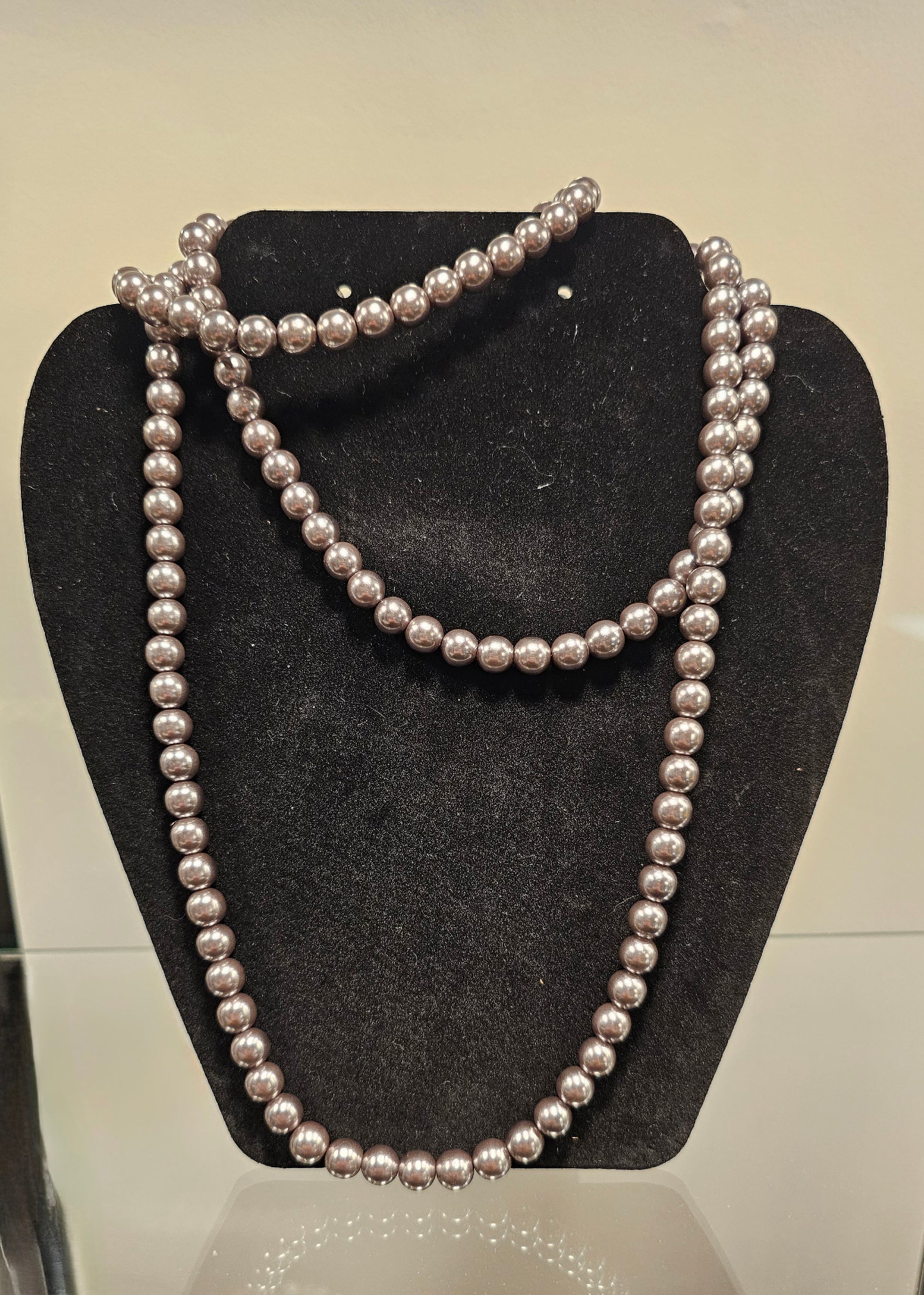 This long strand necklace brings the 20s into the present! The long design allows you to wrap or style the necklace to suit your outfit and the unique black pearls accentuates a mysterious aspect of your look.