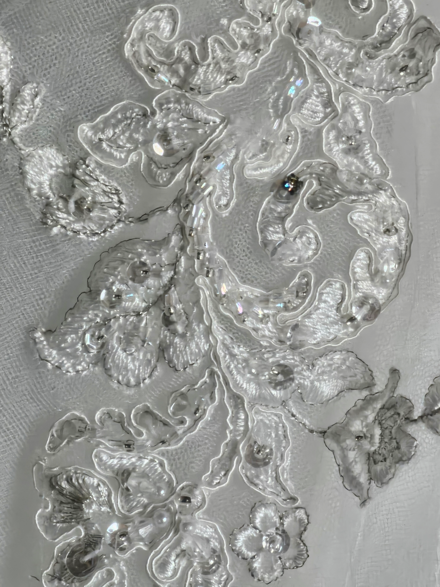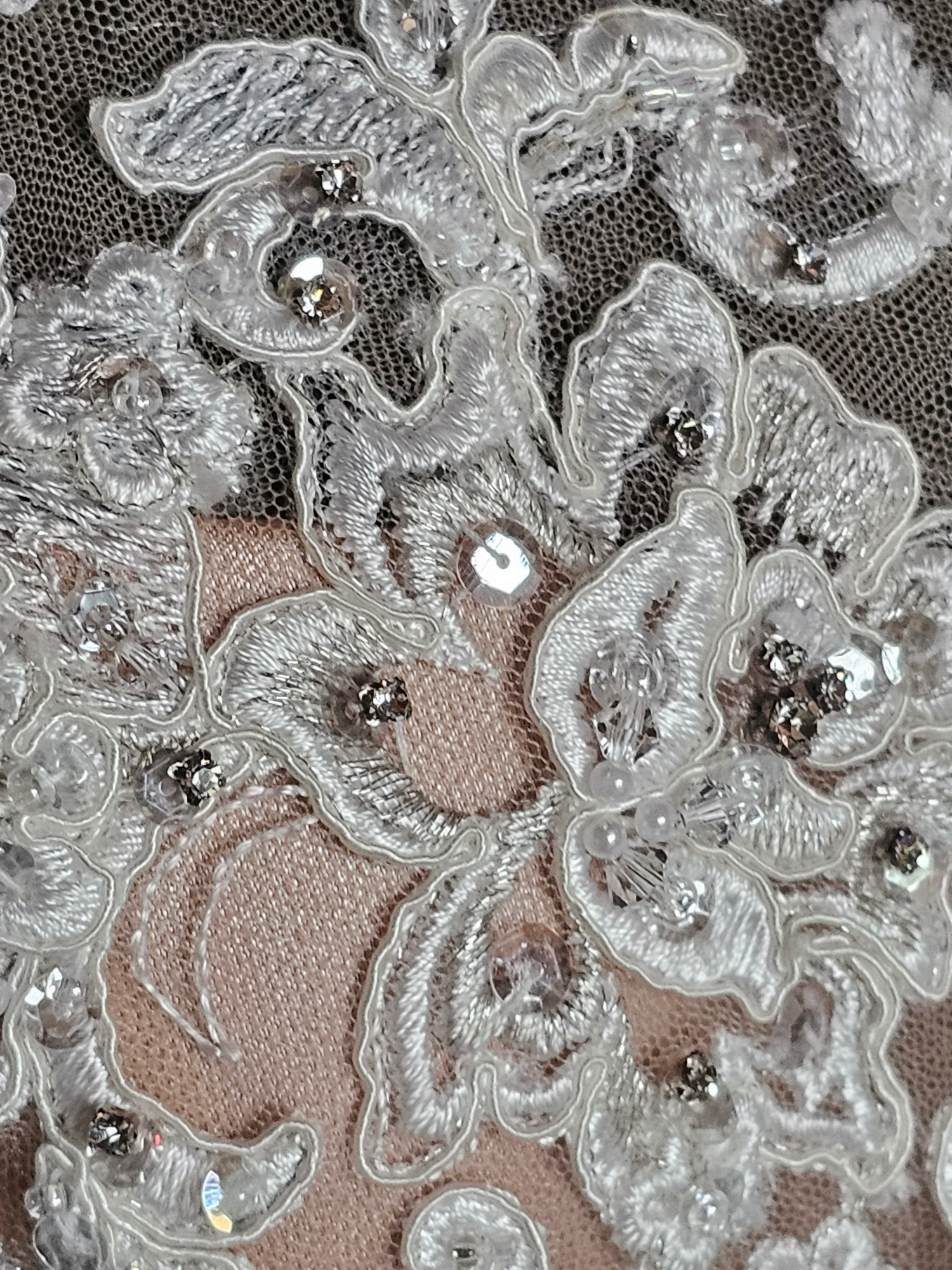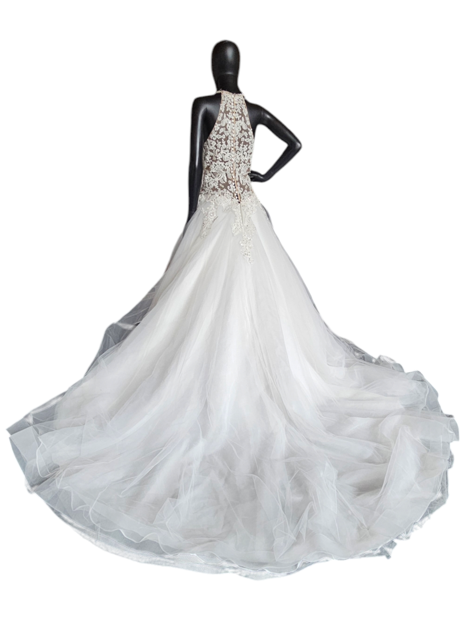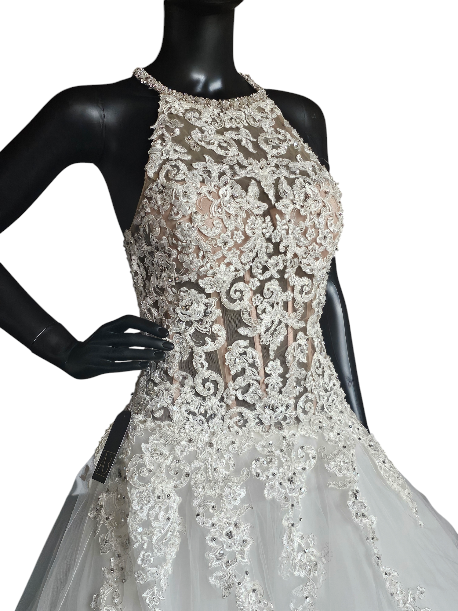 This gown has original sell tags on it but it does have damage to the outer layer of tulle. There are rips in a few different spots - they are difficult to photograph due to gauzy nature of the tulle. On the plus side, there is so much tulle they are actually difficult to see in person too! The price of this gown reflects the damage. There are lots of options to repair but this gown is being sold in AS-IS condition.