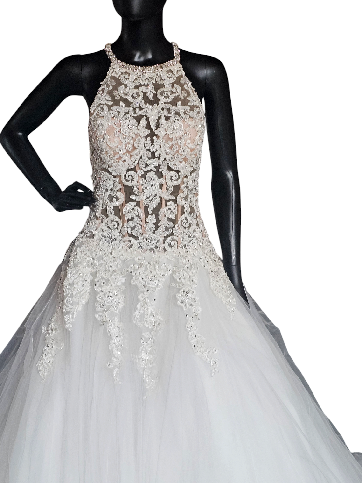 Mori Lee A-Line Beaded Racerback Halter Illusion Bodice Wedding Gown