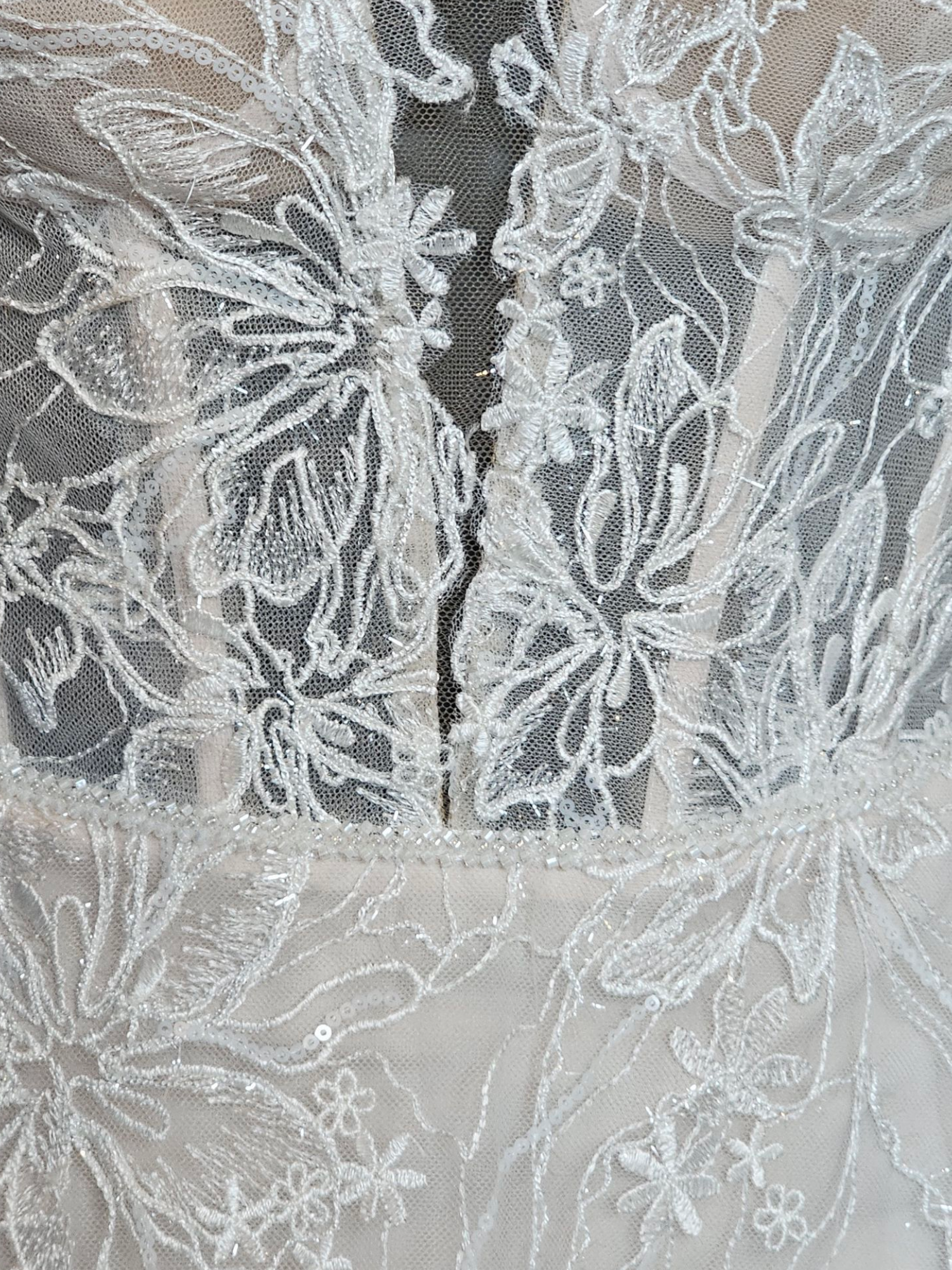 This gown is part of our store sample collection. It has never been worn for a wedding or altered in any way. Many will still have the original store tags on them. They may show some slight signs of wear from being tried on in the store. All prices reflect the condition of the gown. Please contact me to schedule a virtual consultation where we can go through the gown together and verify the condition so you feel confident in your purchase.