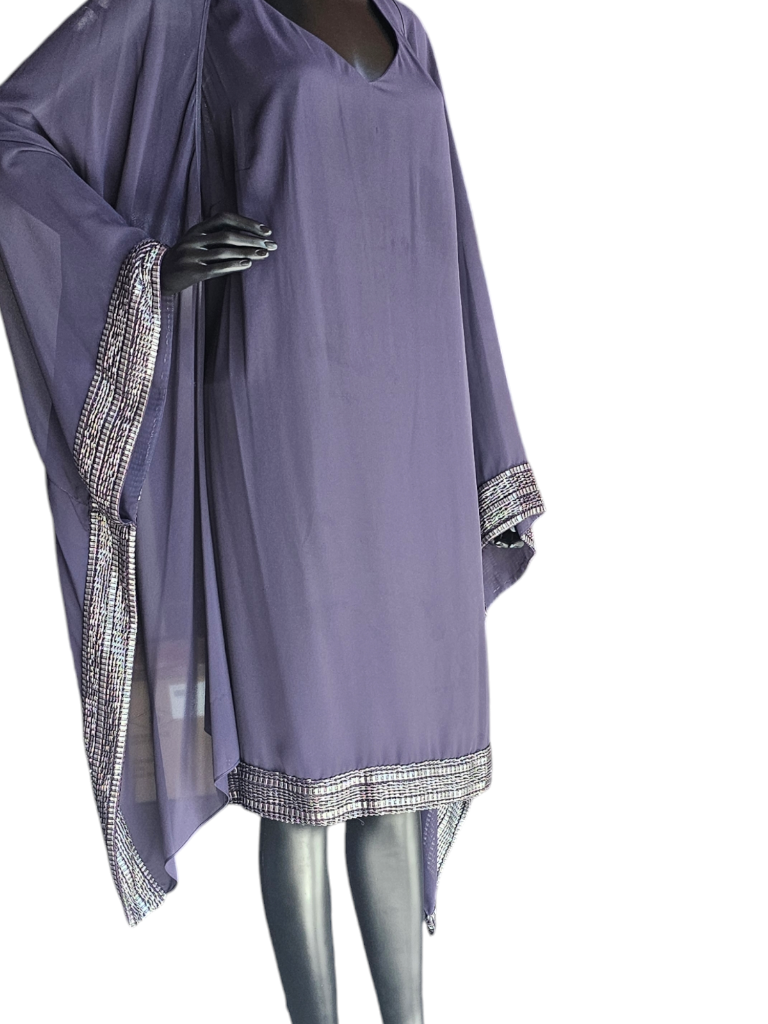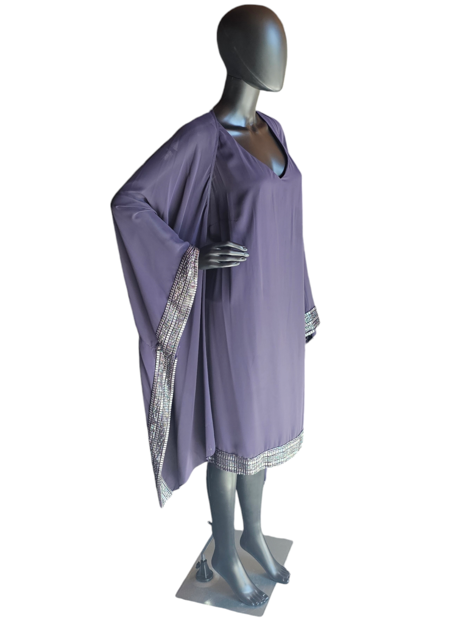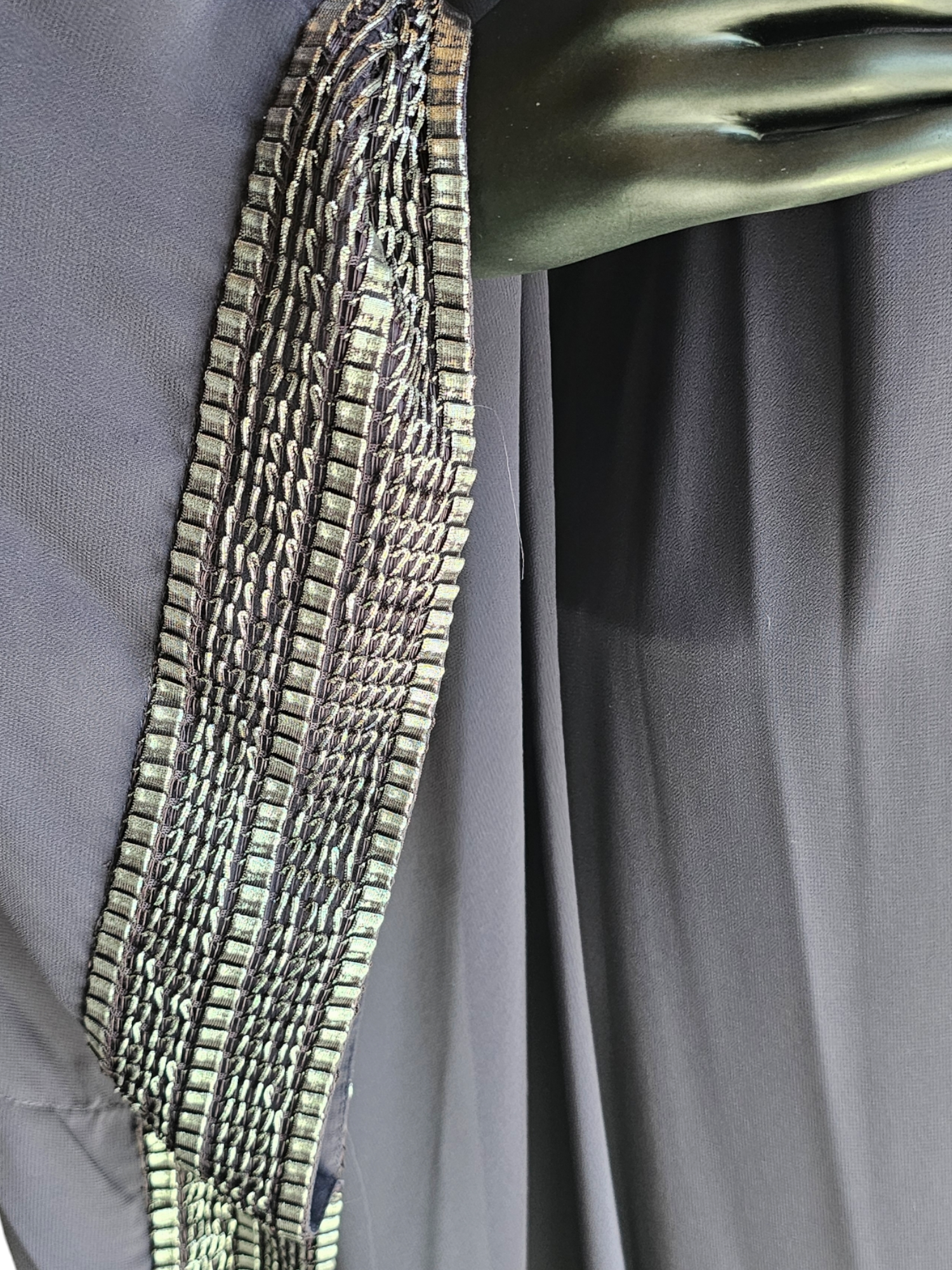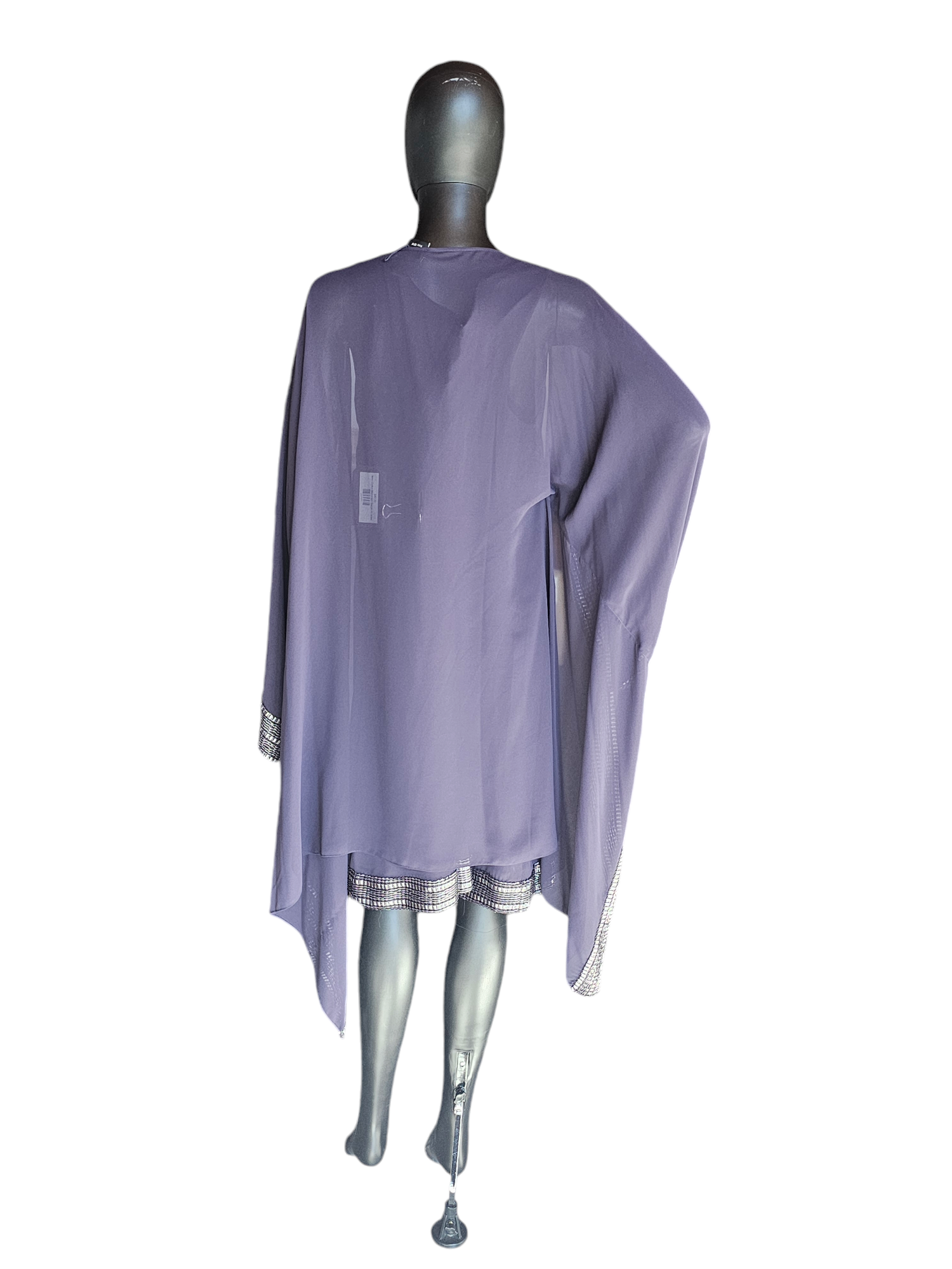 Navy Chiffon Mid-Length Sheath Dress W/Regal Sleeve Jacket