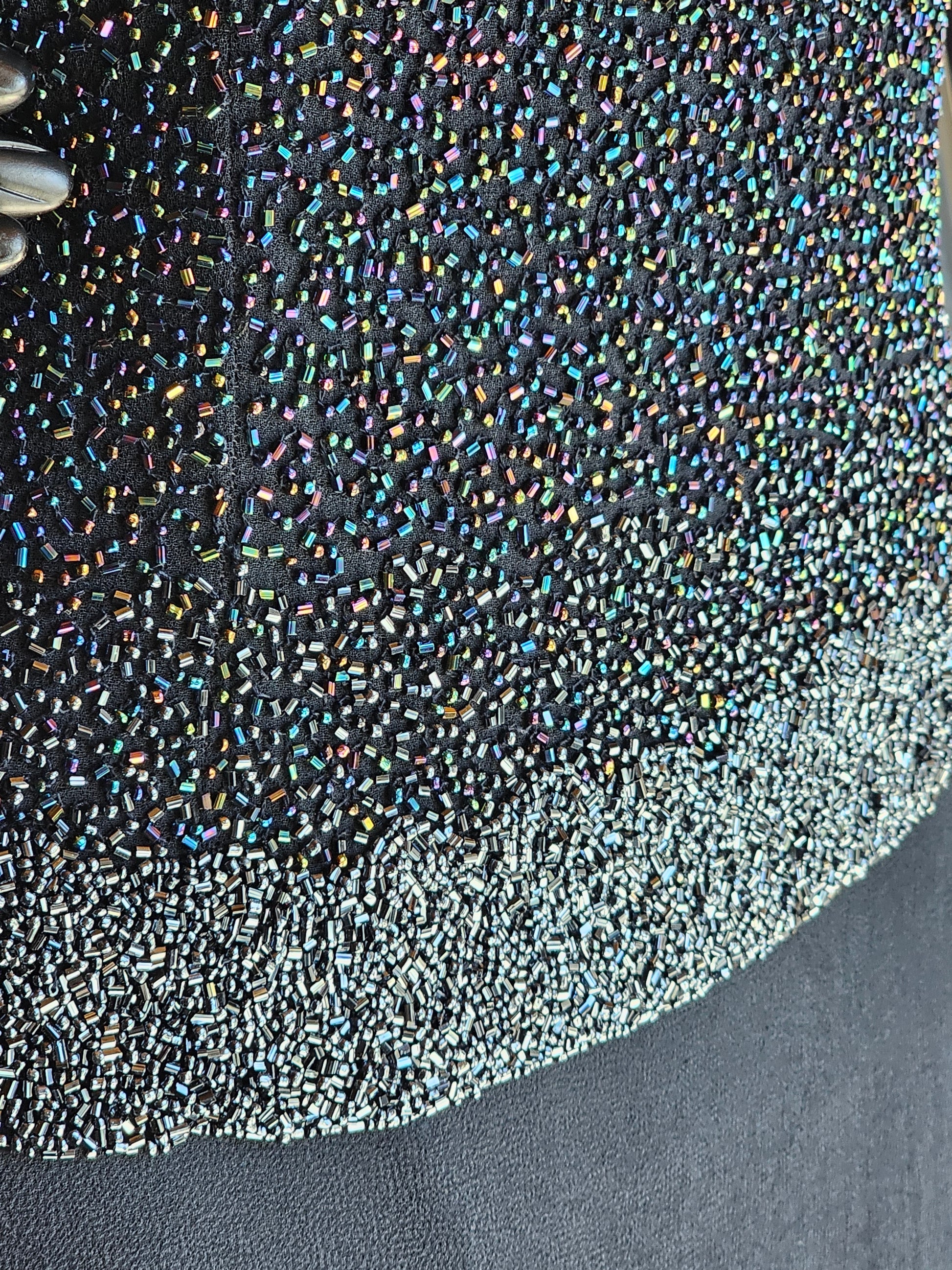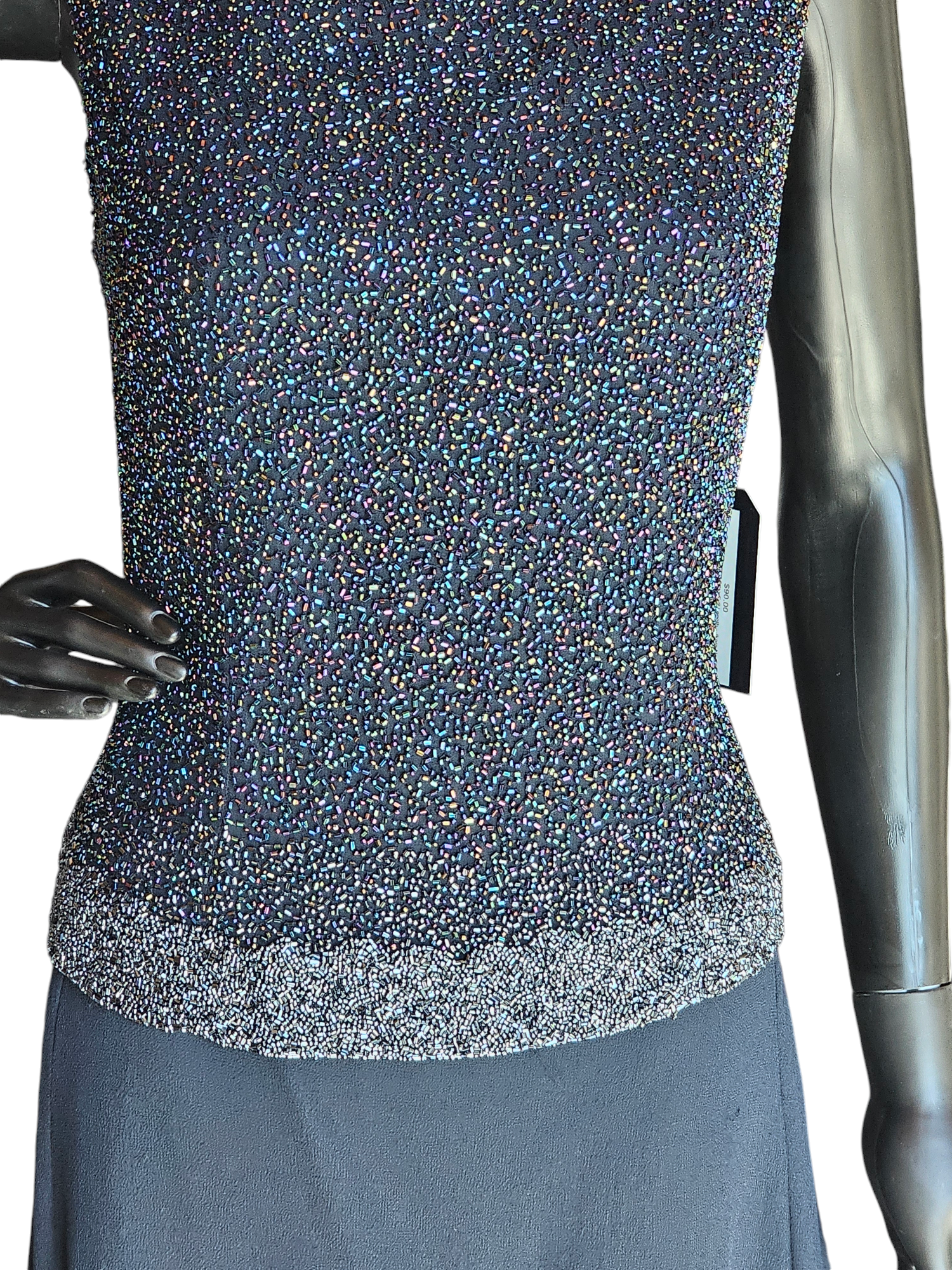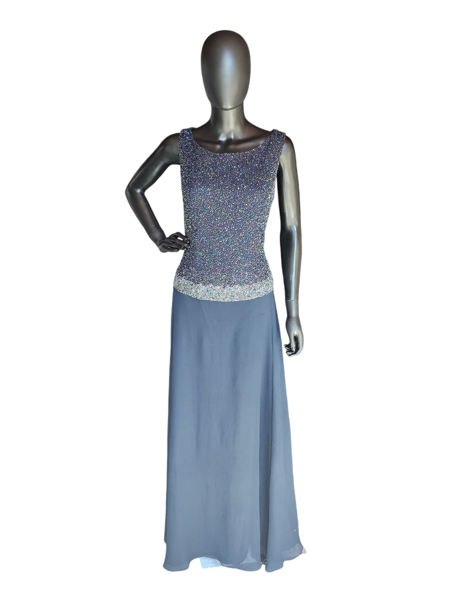 Navy Crepe Beaded Bodice Full Length - Jkara New York