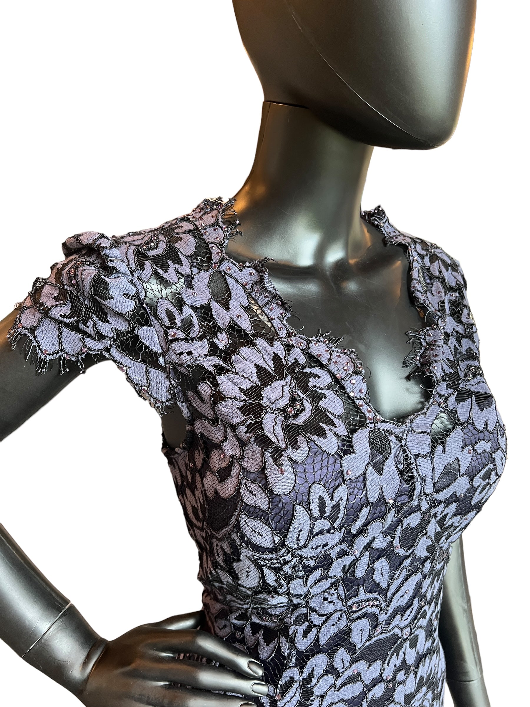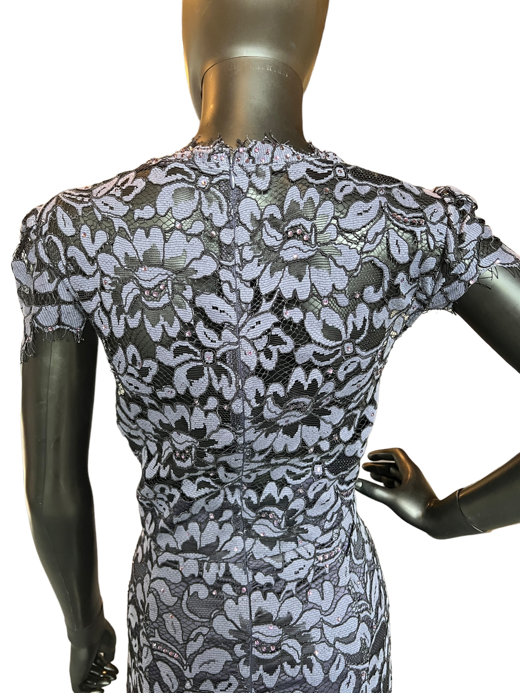 Navy Lace Overlay Crystal Accent Dress