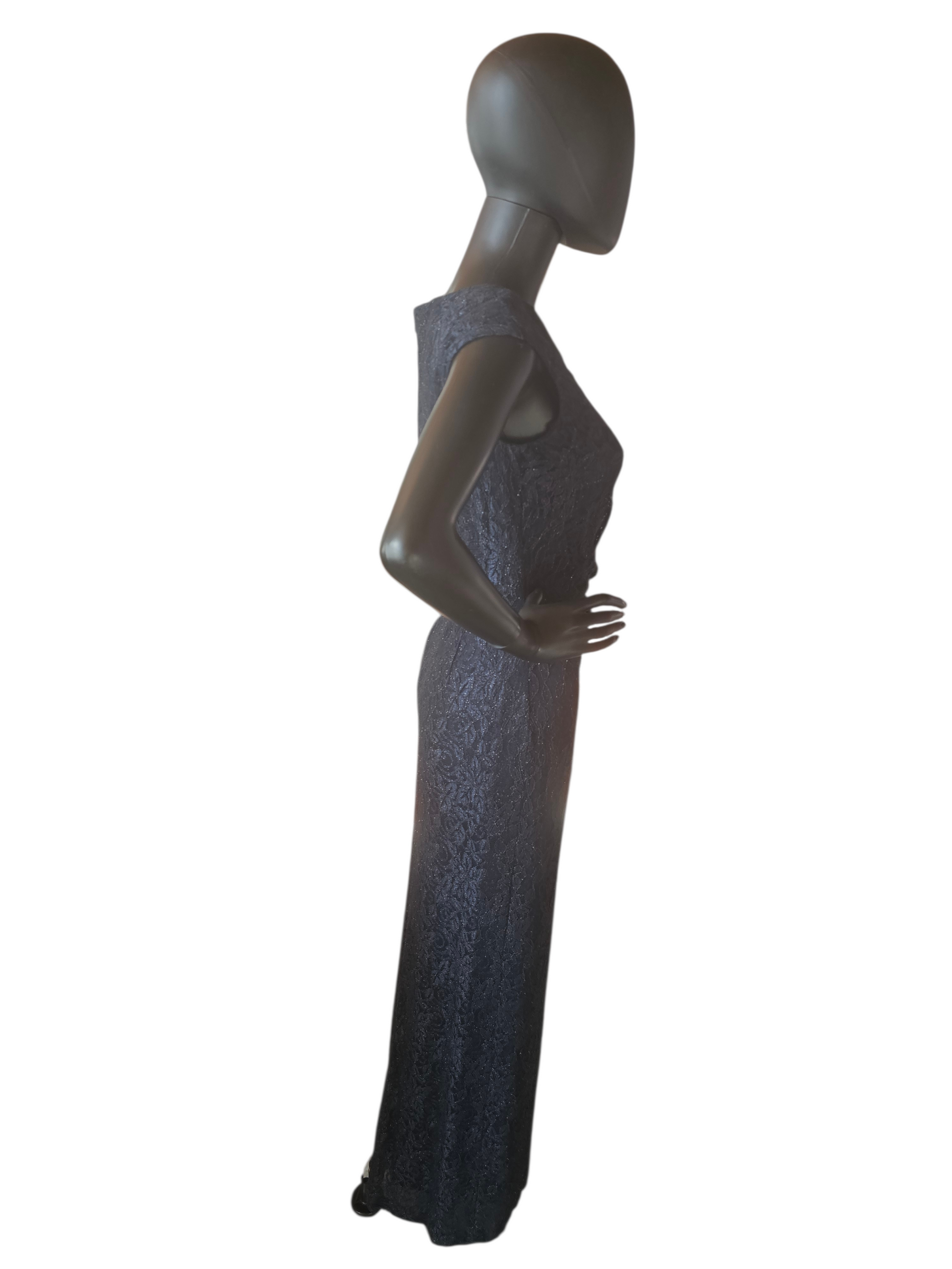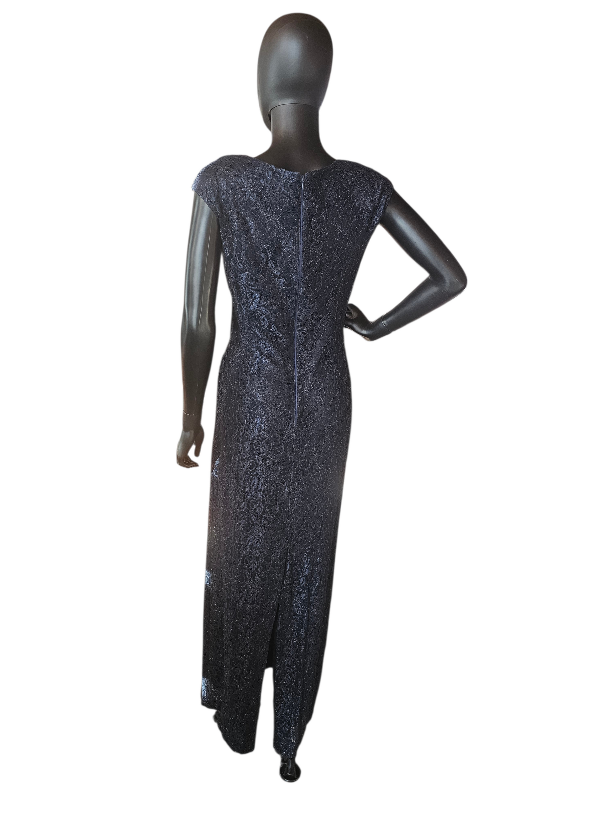Navy Lace Side Ruched Cap Sleeve Maxi Formal Dress - Tahari