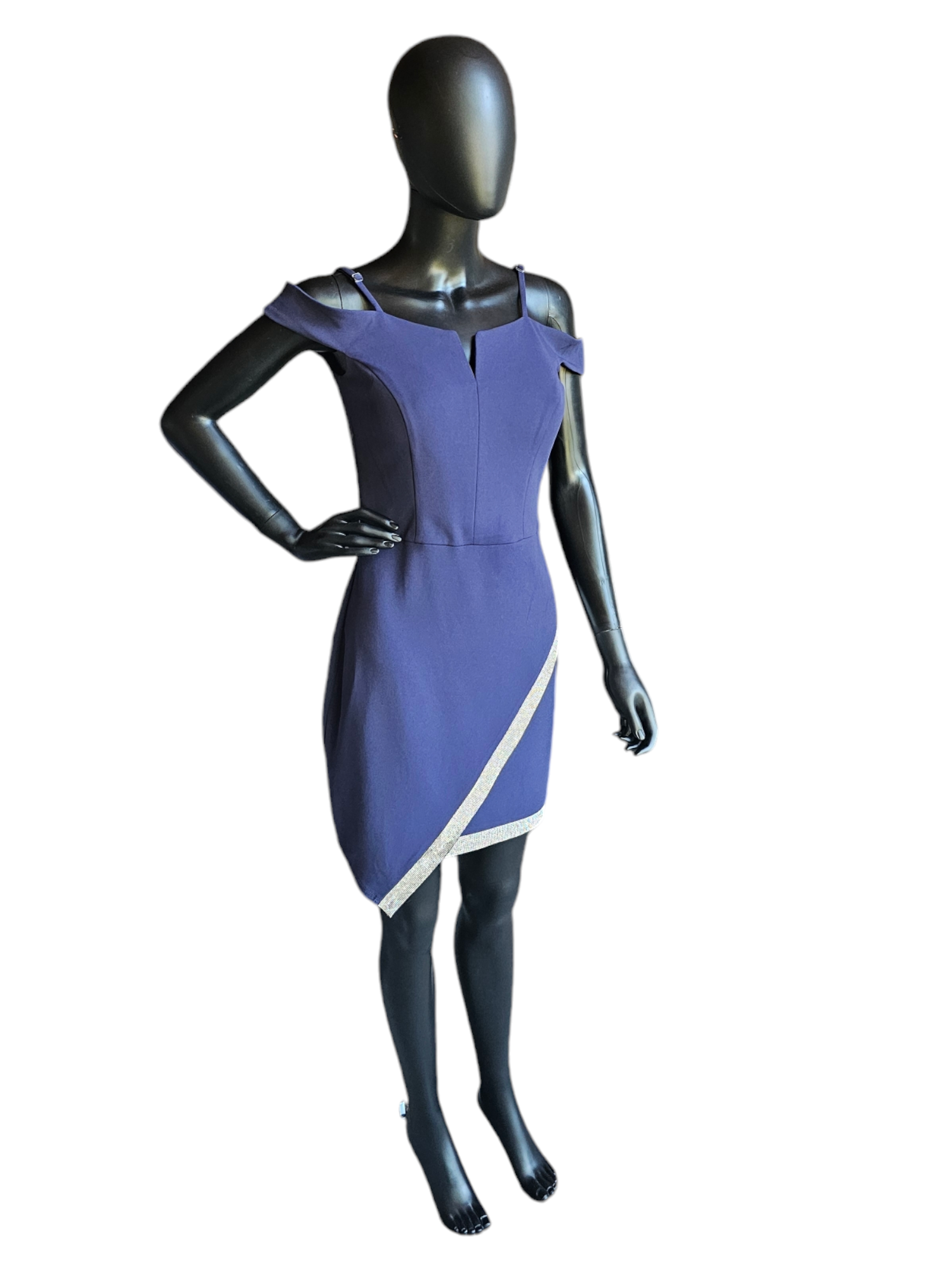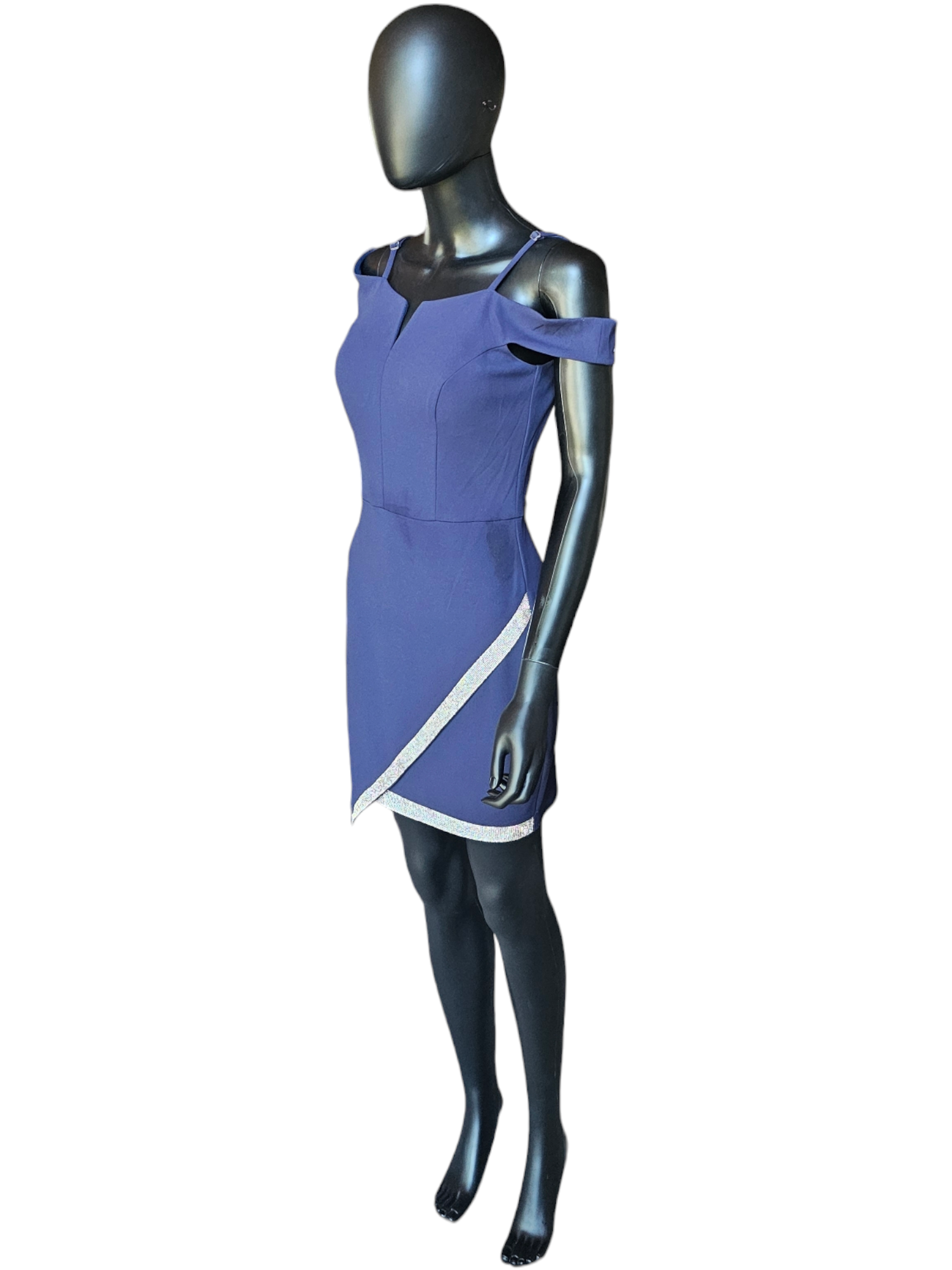 Navy/Rhinestone Off Shoulder Cocktail Dress