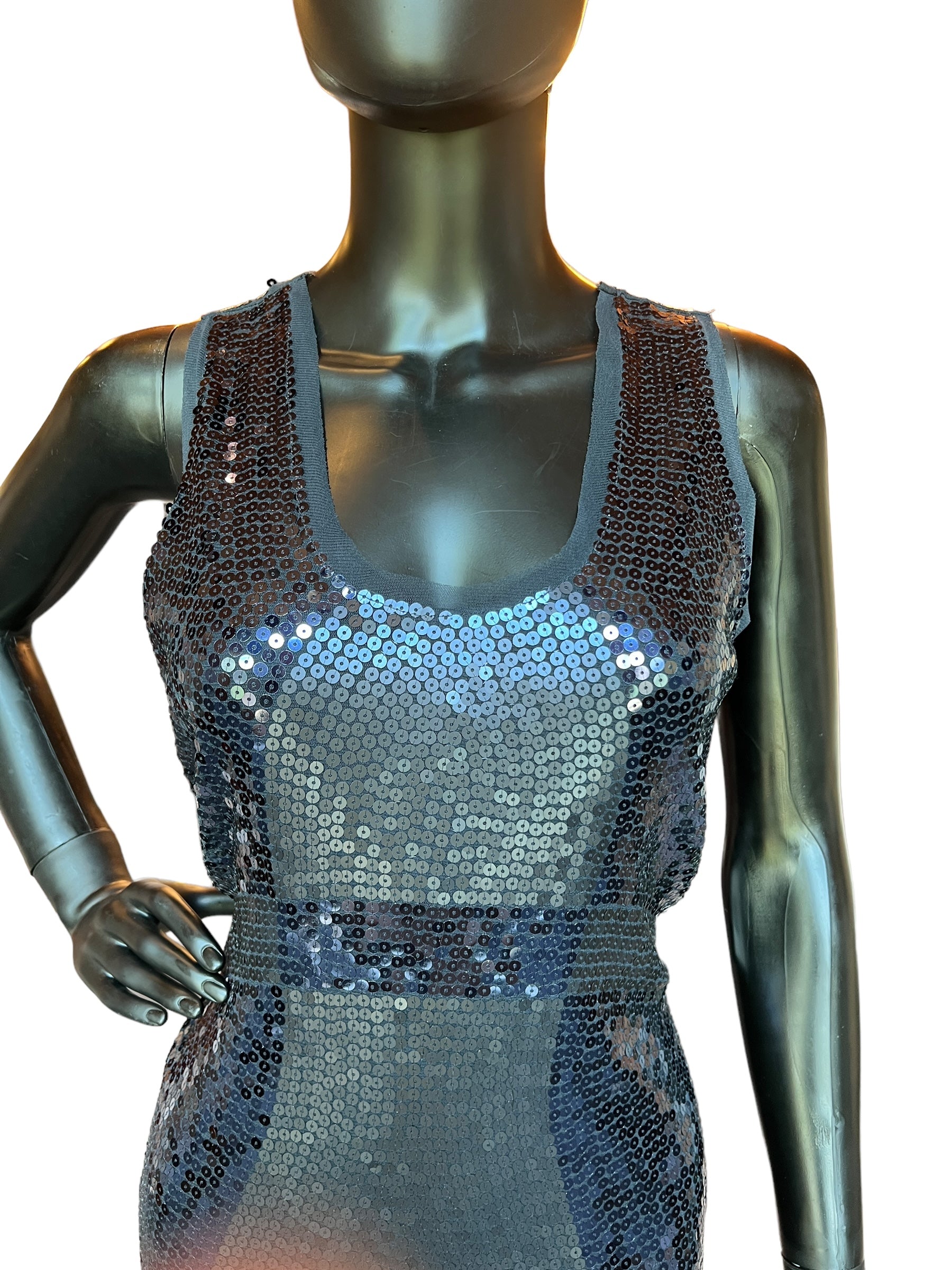 This shimmery sequined gown is a lovely addition to your "going-out" wardrobe. The sheath design makes this dress shimmer with any movement while the slim fit is sexy and comfortable.