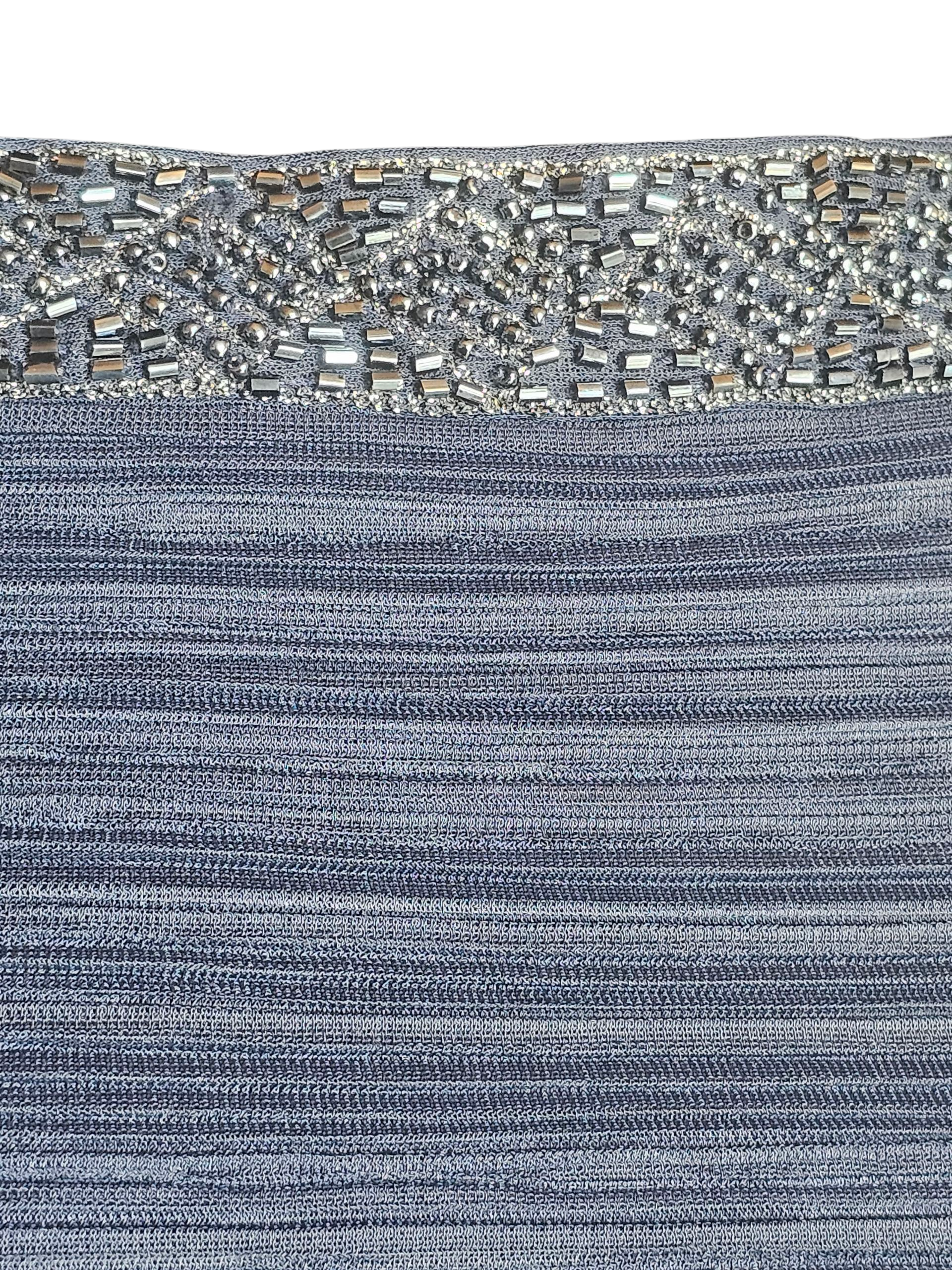 Navy Shirred Cap Sleeve Formal Dress