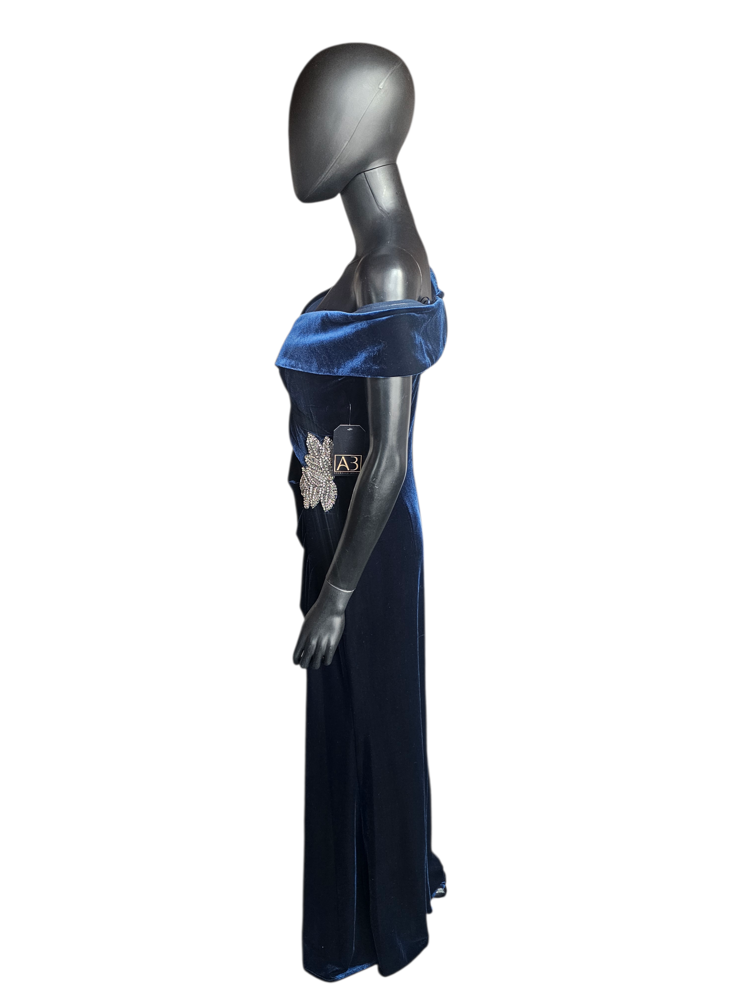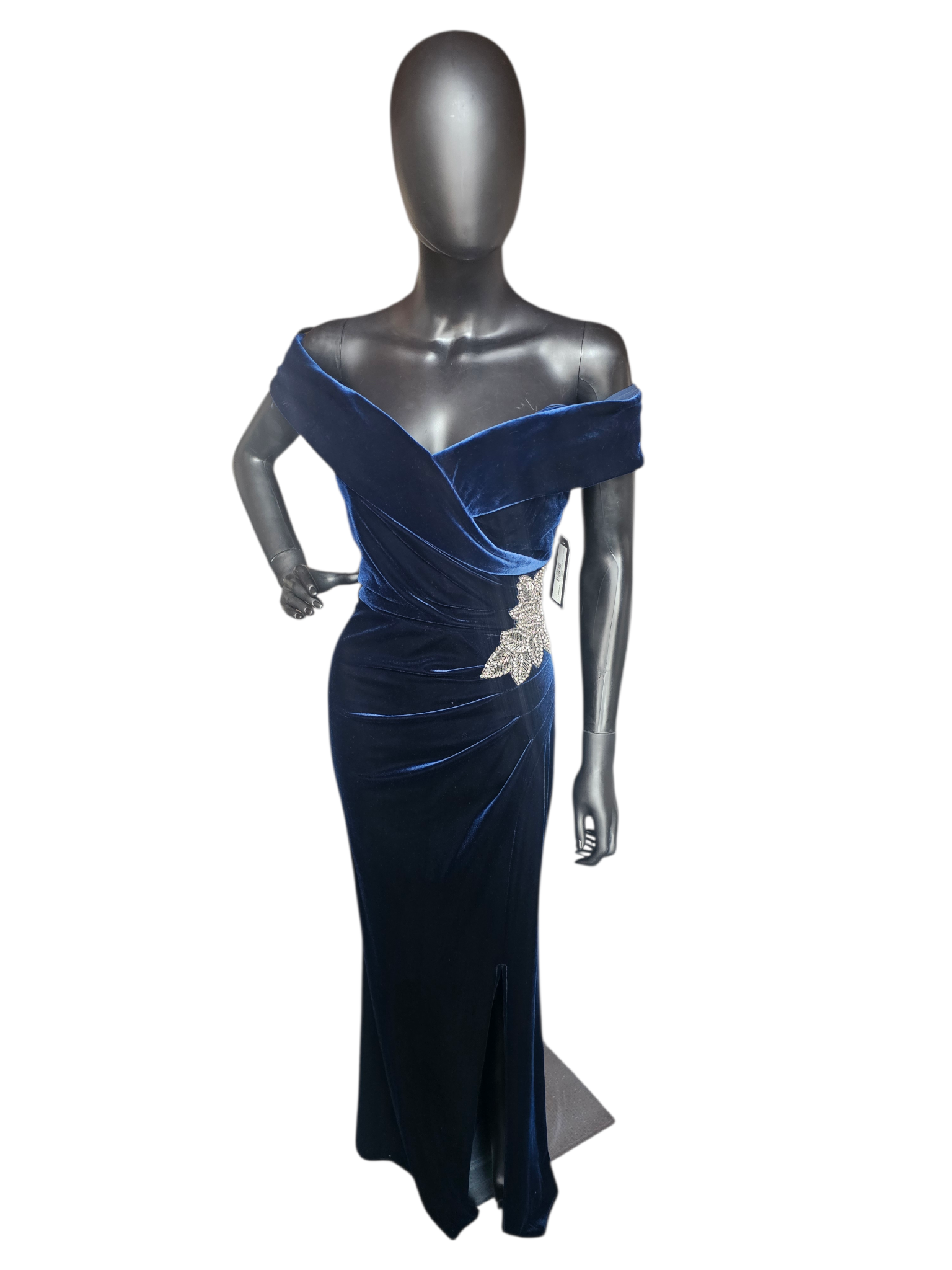Navy Velvet Off Shoulder Formal Dress - Alex Evenings