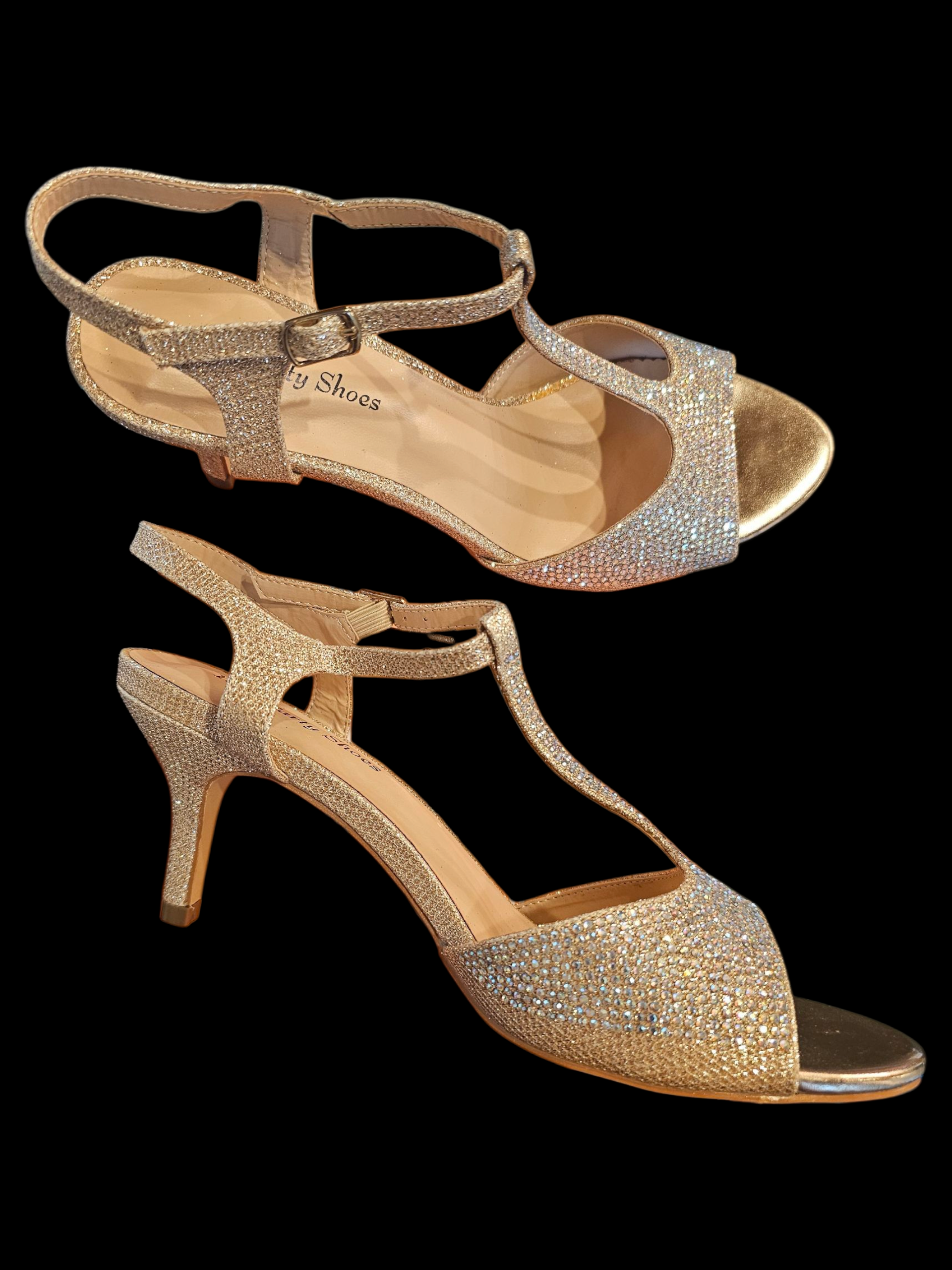 Step into luxury with the Nude/Iridescent Sparkle Peep-Toe T-Strap Sandal. Its iridescent crystals and shimmery fabric will add a touch of elegance to any outfit. Enjoy the perfect combination of glamour and comfort with these stunning sandals.