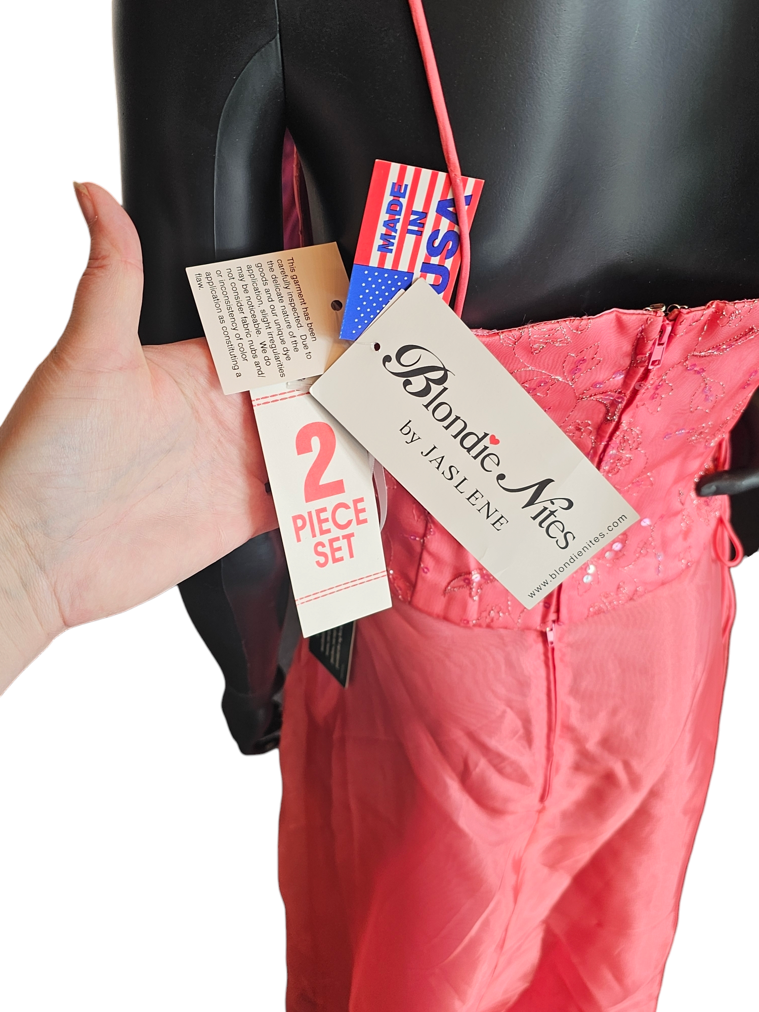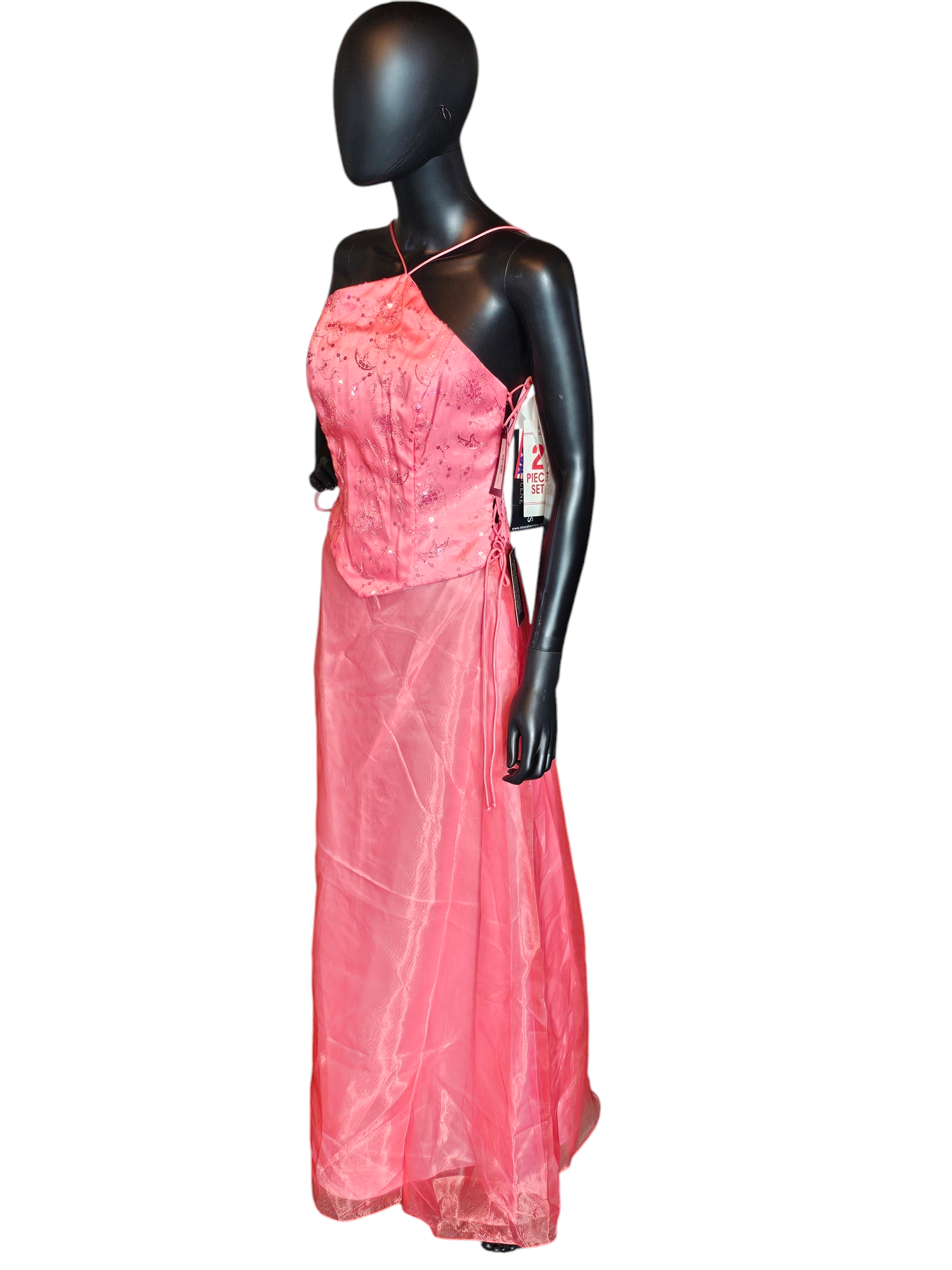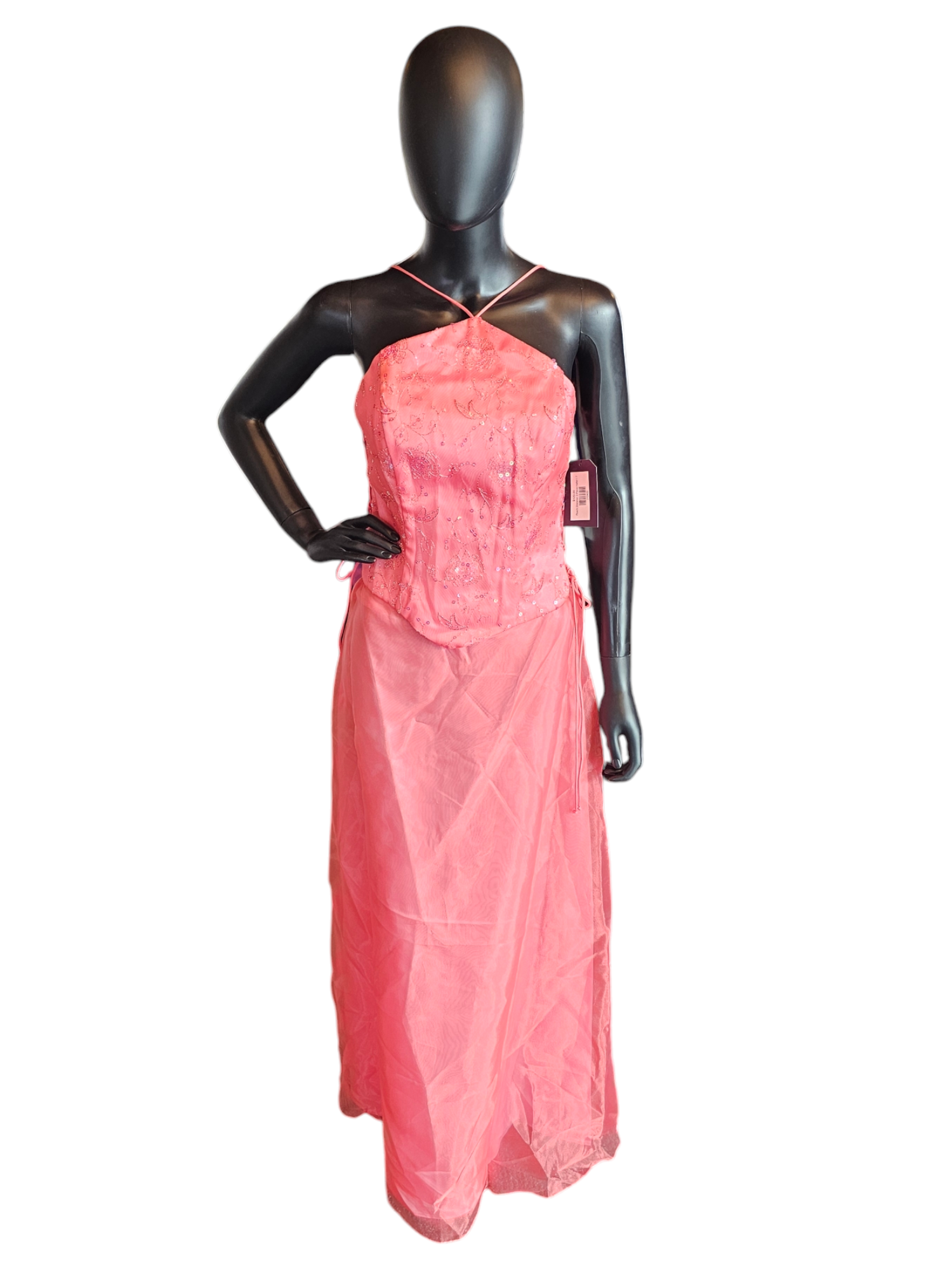 Peach Shimmer 2-Piece Halter Formal Dress - Vintage Blondie Nites NWT